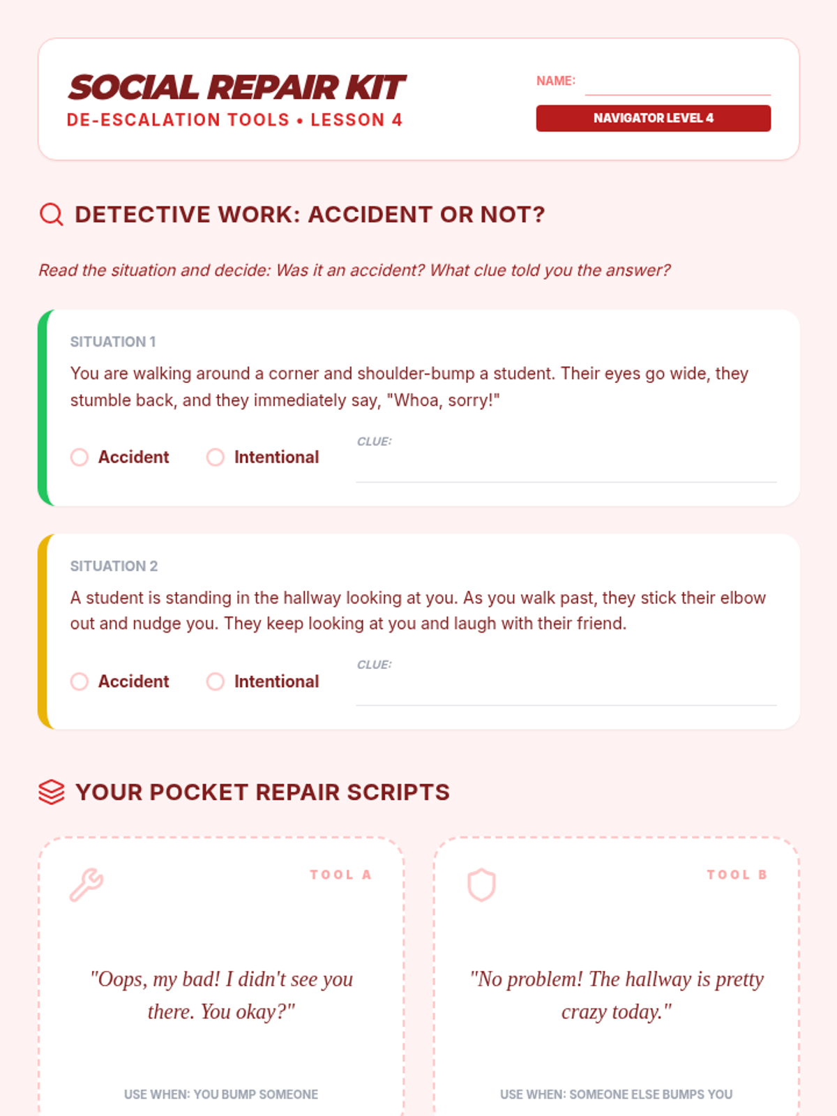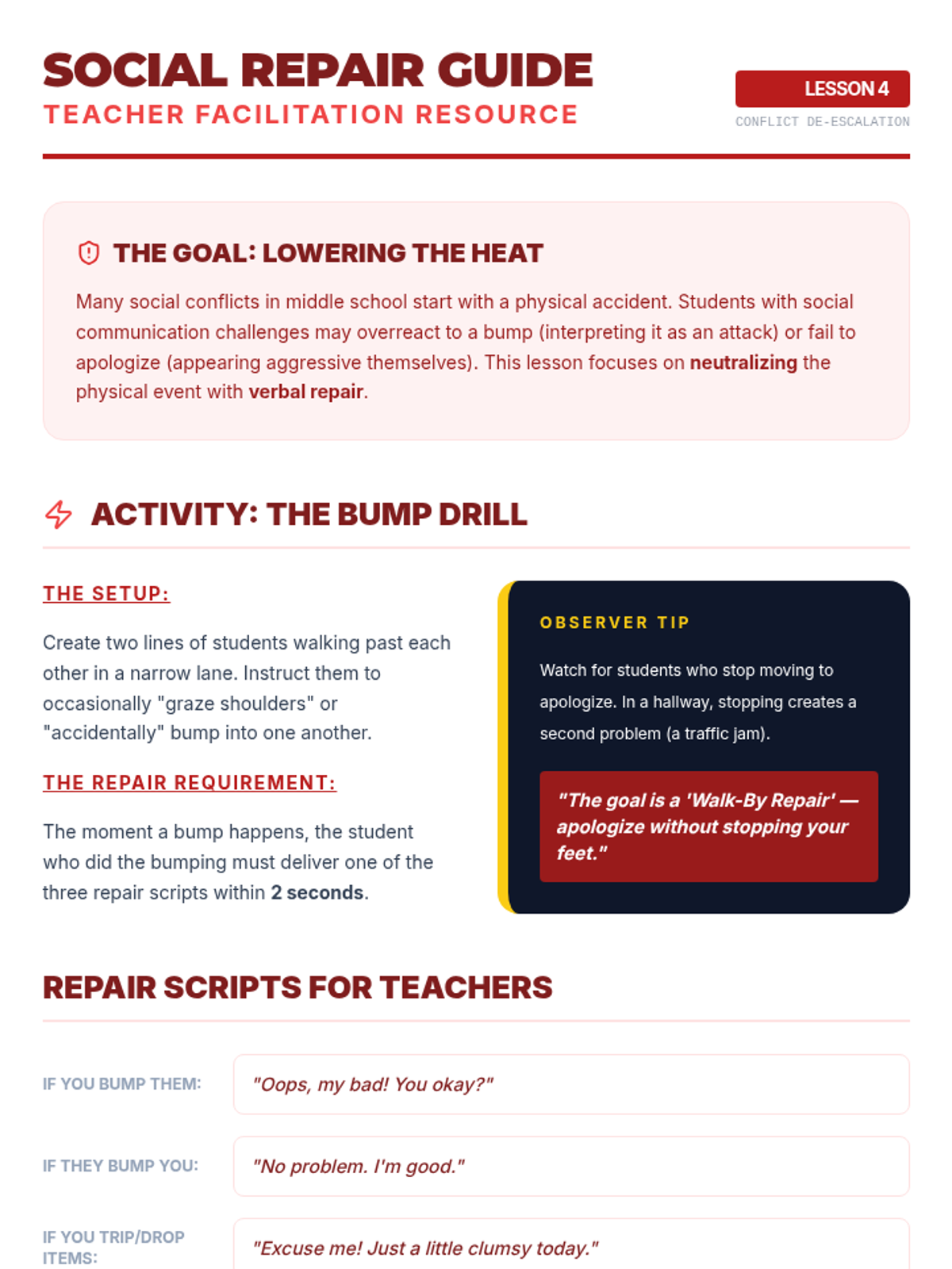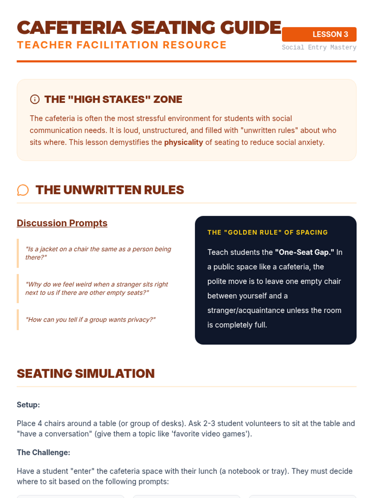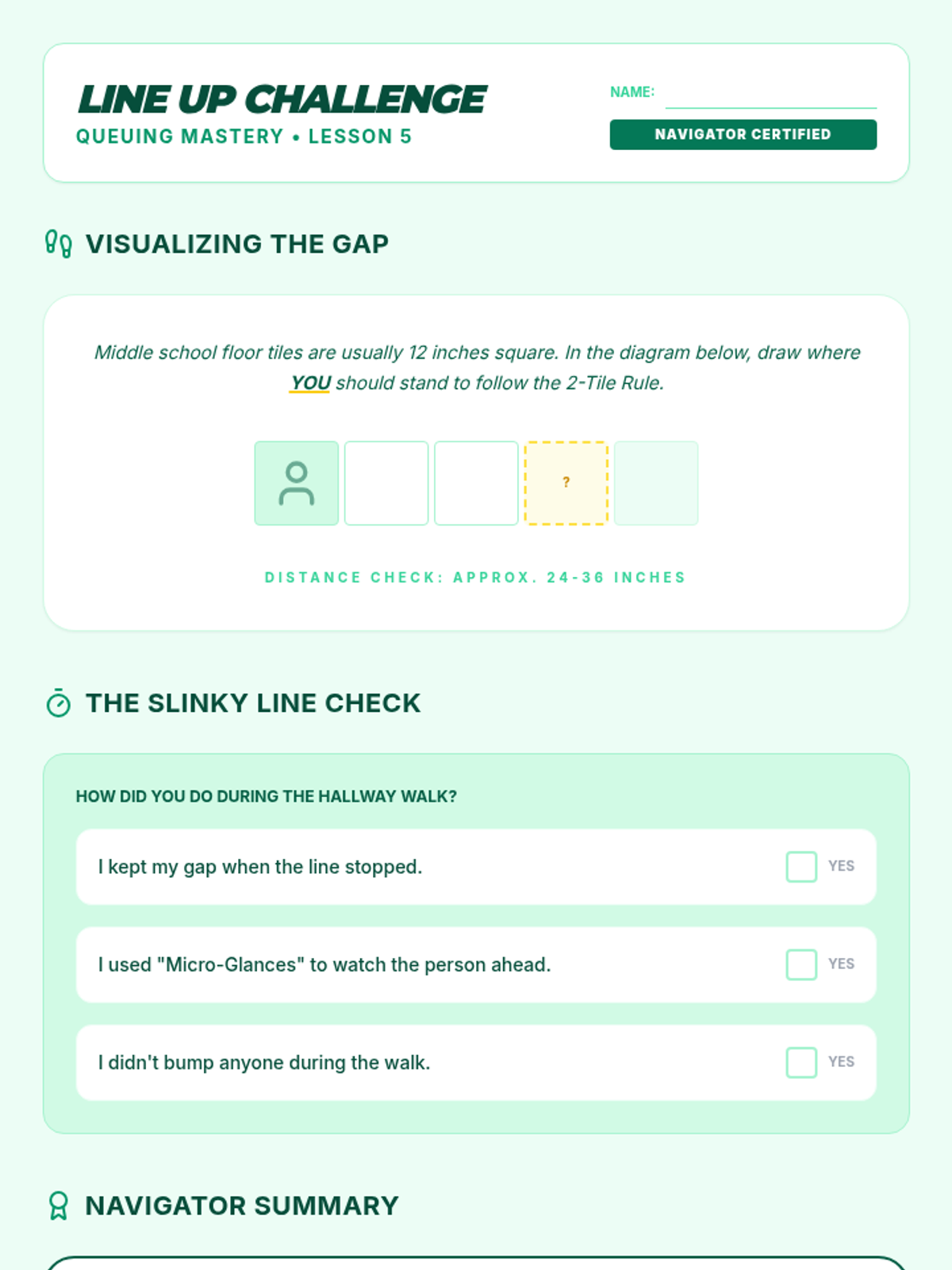 A comprehensive 5-lesson sequence designed for 6th-grade students focusing on navigating the spatial challenges of middle school environments, from crowded hallways to cafeteria seating.