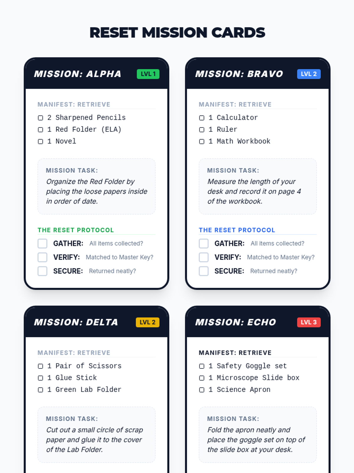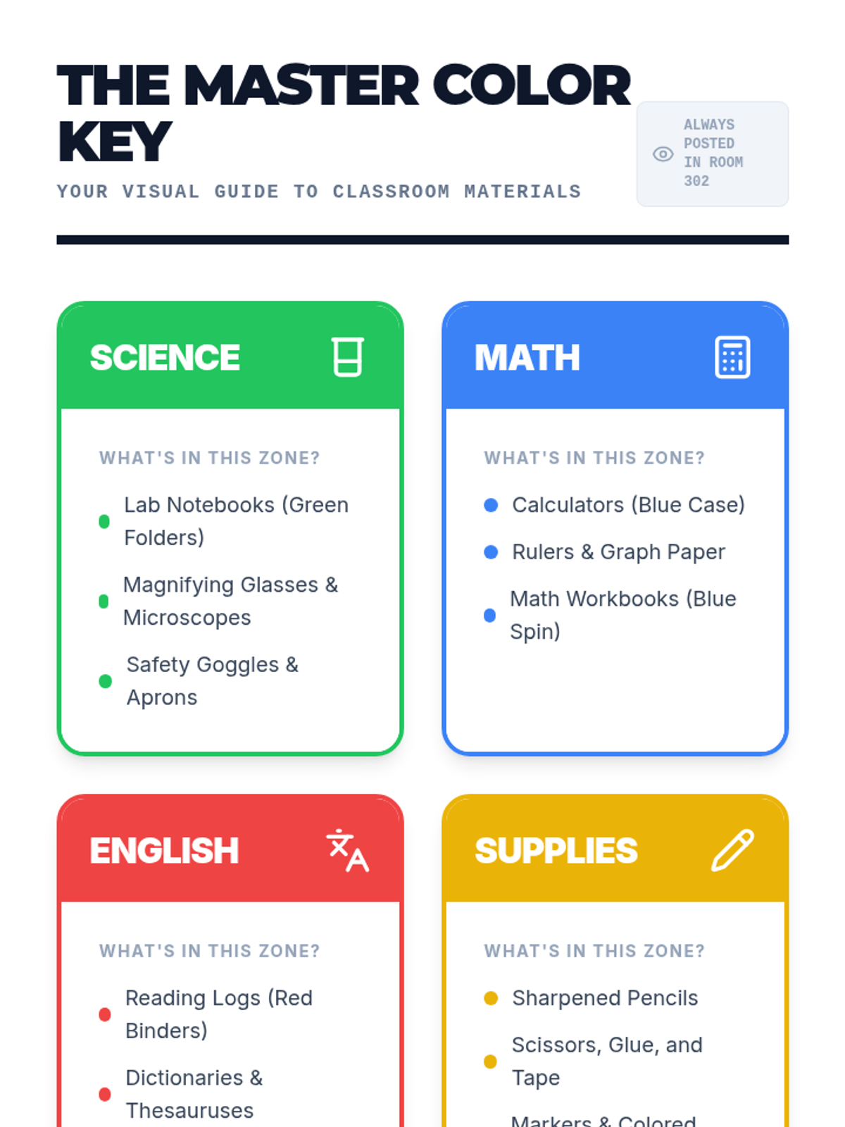 A 5-lesson sequence for 6th-grade students focusing on physical organization through visual supports and color-coding. Students move from identifying classroom systems to designing and auditing them to build independence and shared responsibility.