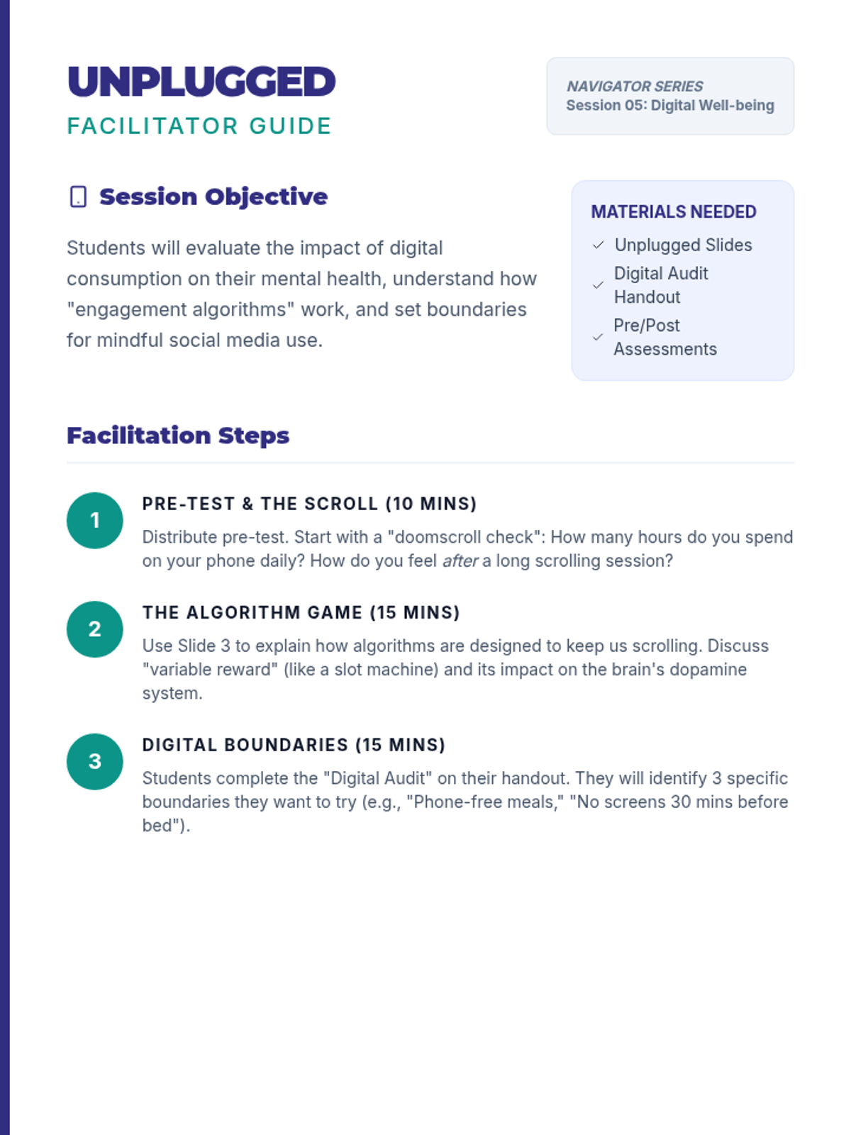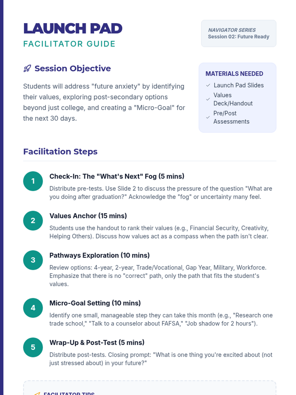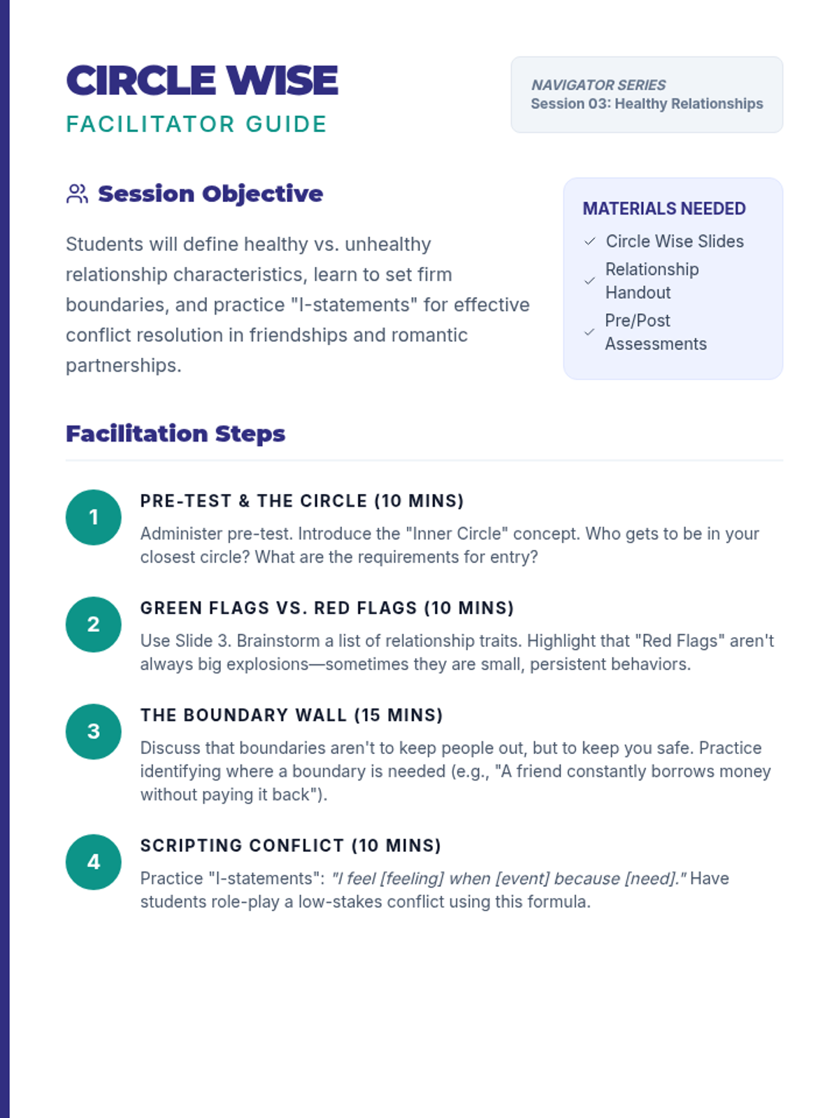 A comprehensive small group counseling series for high school students focusing on essential socio-emotional and life skills including stress management, future planning, healthy relationships, self-advocacy, and digital well-being.