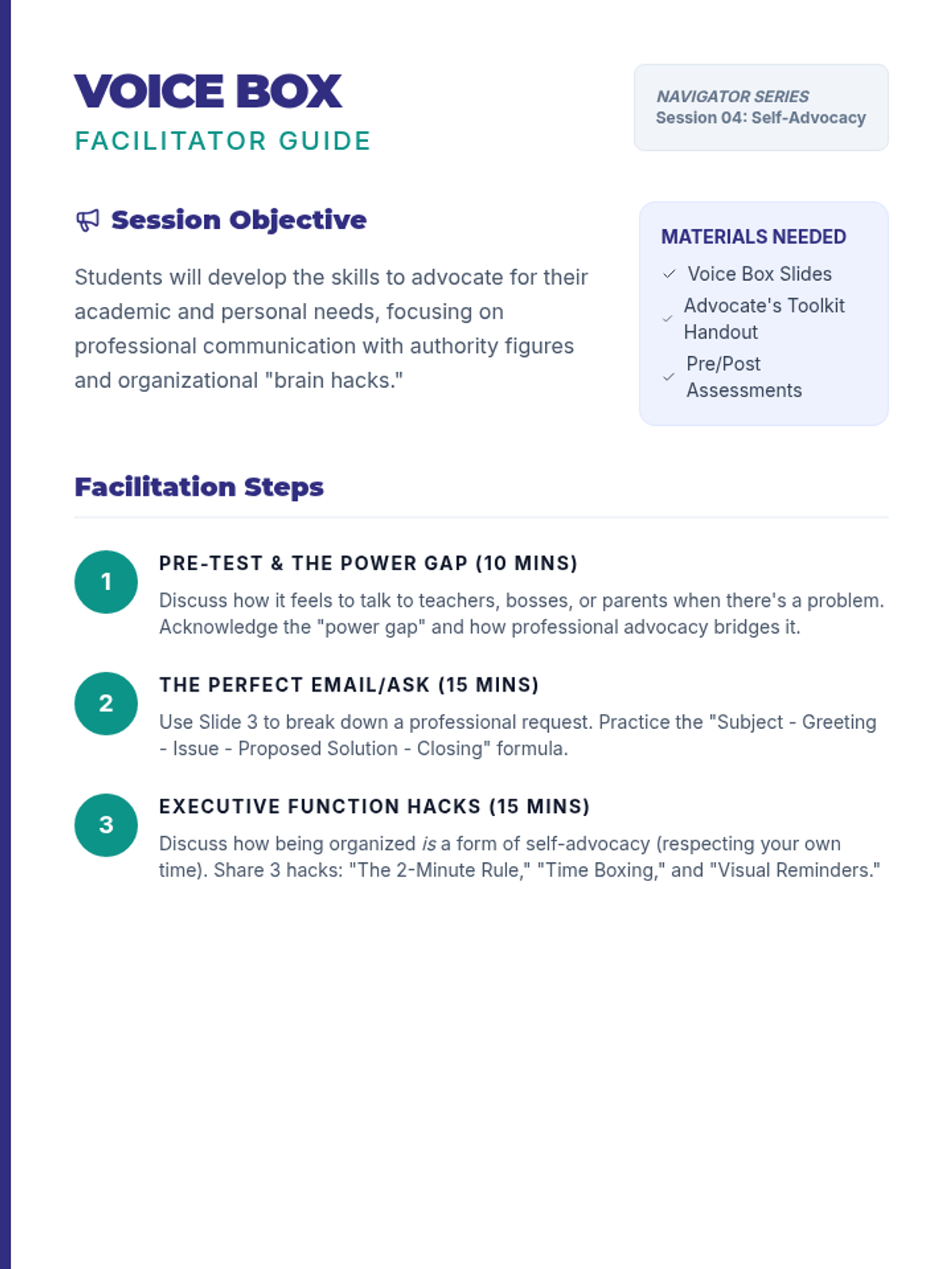 A 12-week comprehensive program designed to prepare 8th-grade students for the rigors of high school by mastering essential academic success skills. Each week focuses on a specific, actionable skill through bite-sized instruction and practical application.