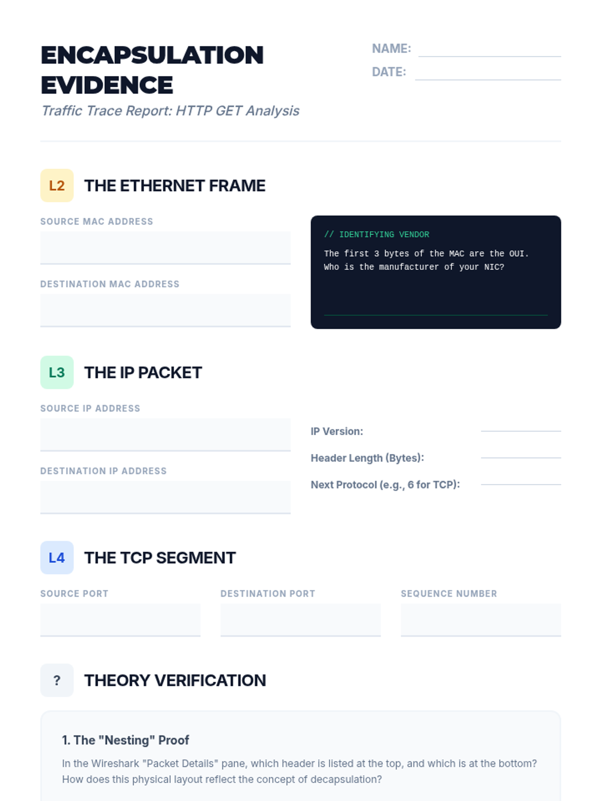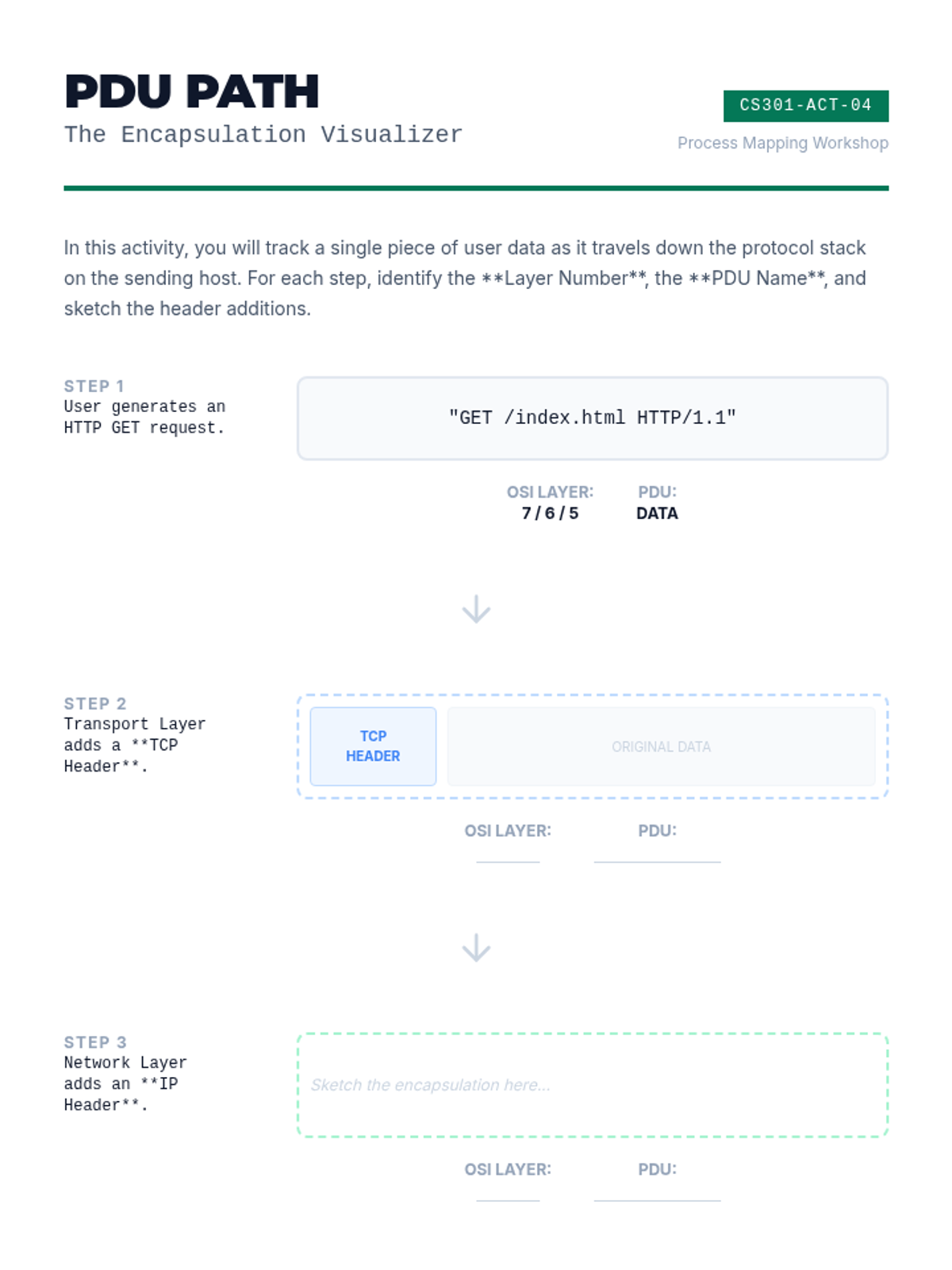 This sequence introduces undergraduate students to the fundamental frameworks of computer networking, focusing on the OSI and TCP/IP models, physical signaling, data link layer mechanisms, and the critical process of data encapsulation. Students will transition from theoretical models to practical packet analysis using industry-standard tools.