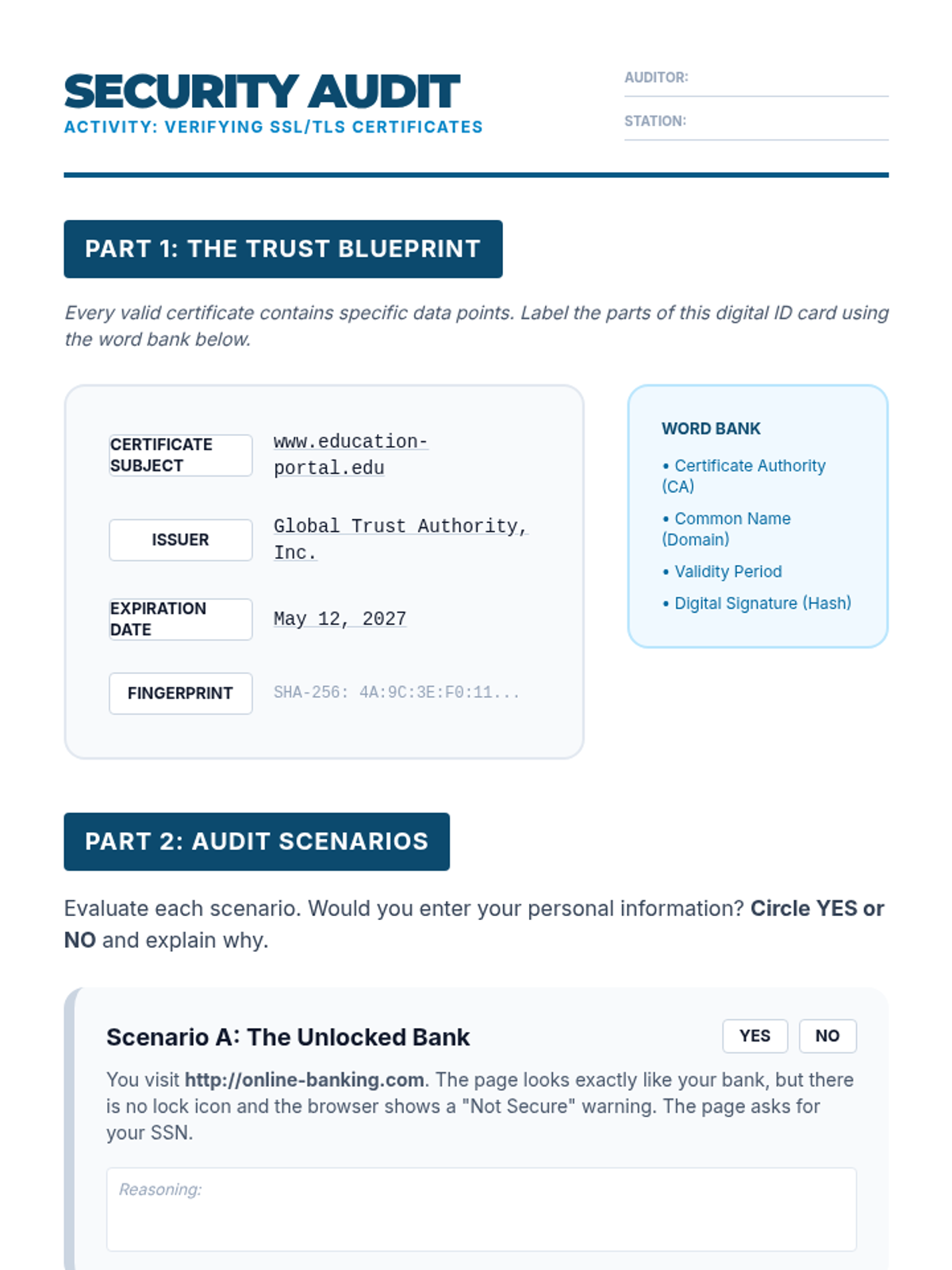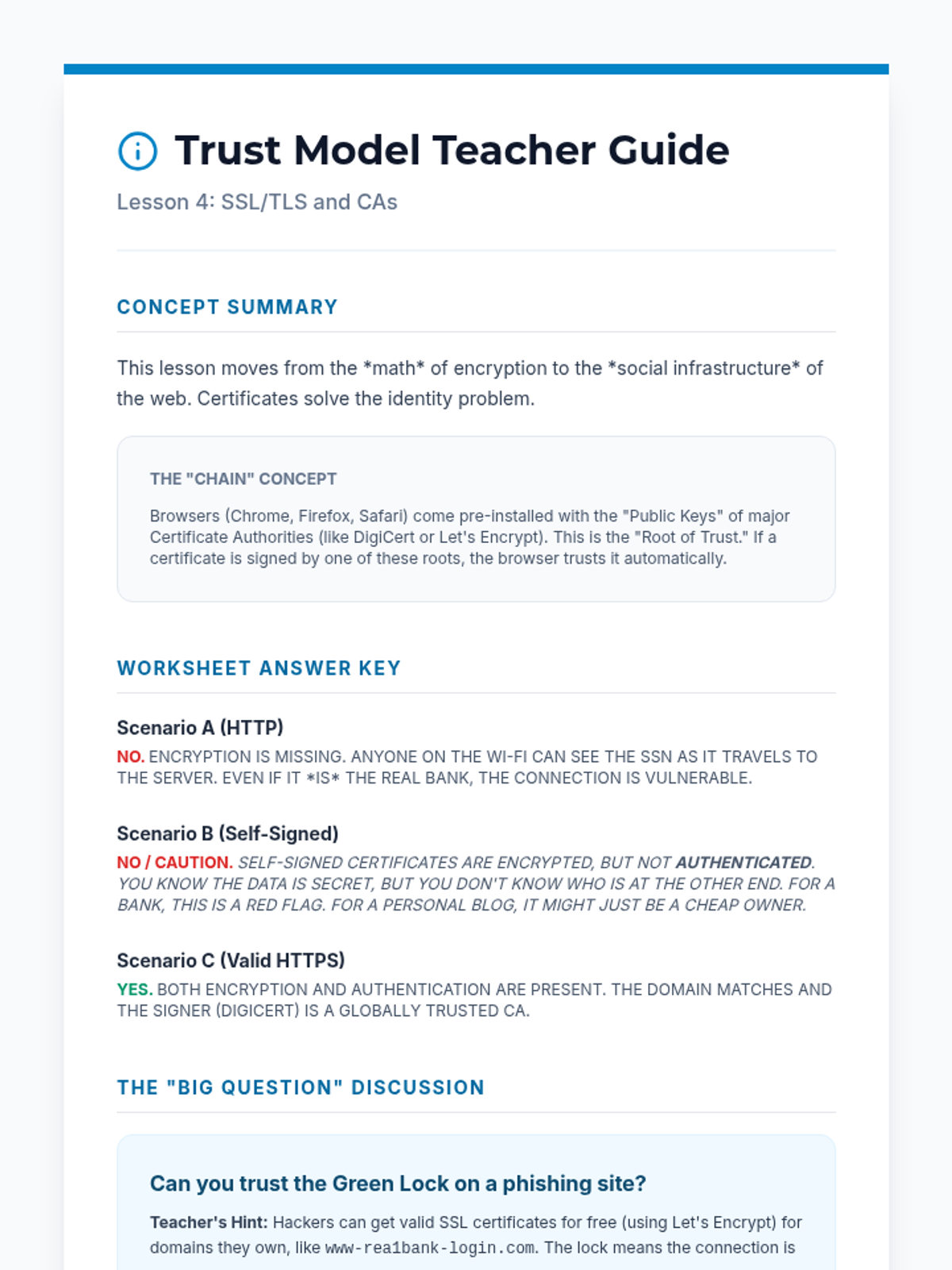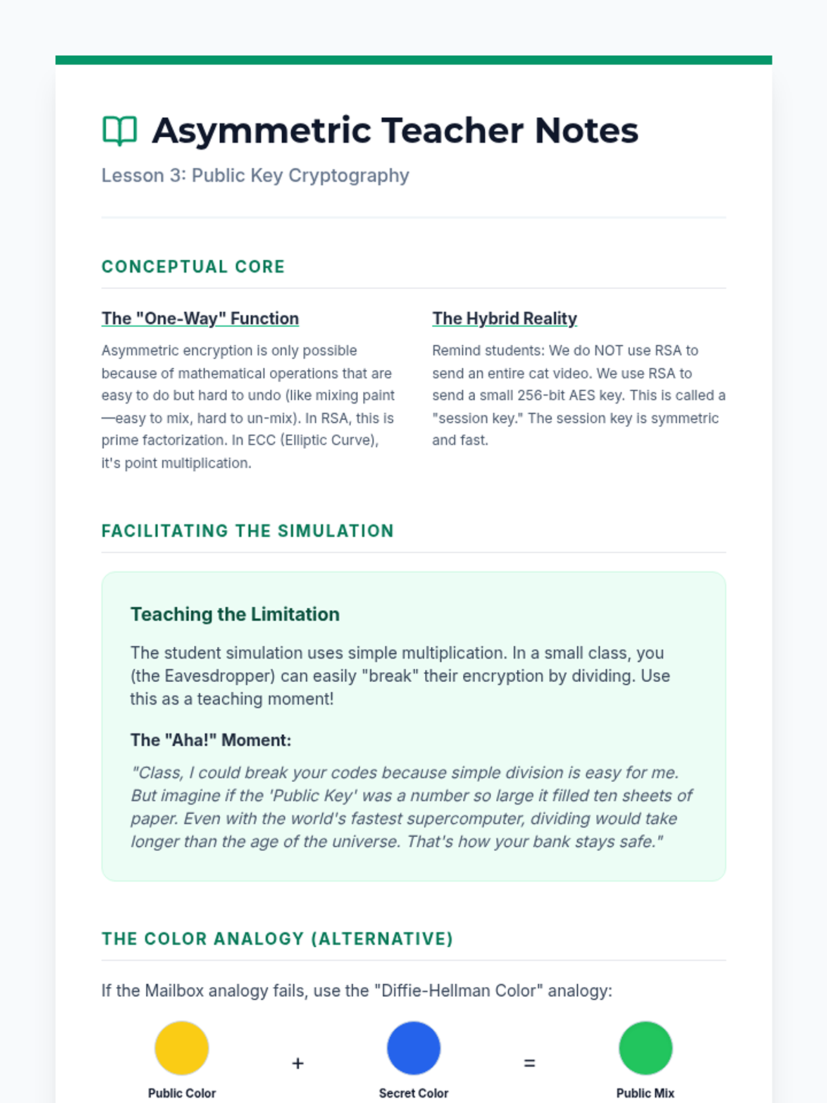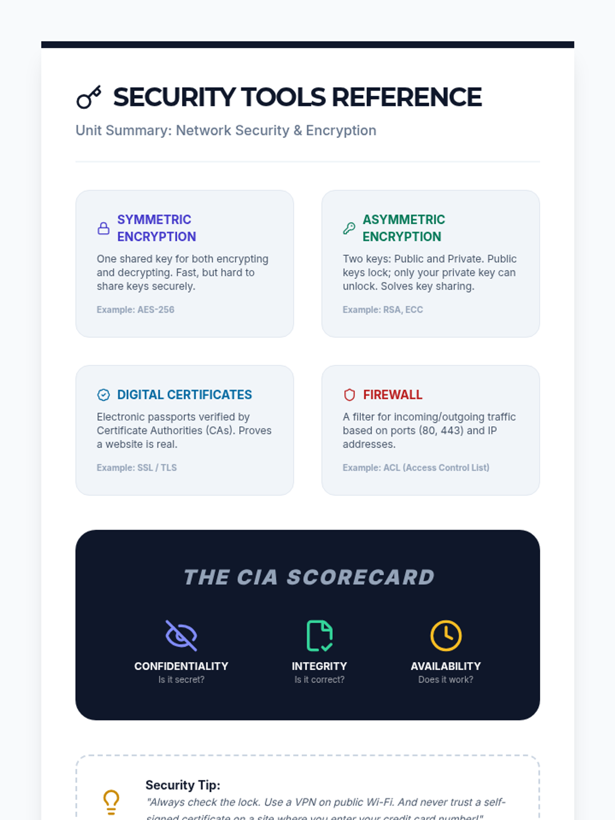 A comprehensive unit for 10th-grade students on network security, covering the CIA triad, encryption methods (symmetric and asymmetric), digital certificates, and network defense tools like firewalls and VPNs. Students will move from historical ciphers to modern SSL/TLS protocols, understanding the math and logic behind internet privacy.