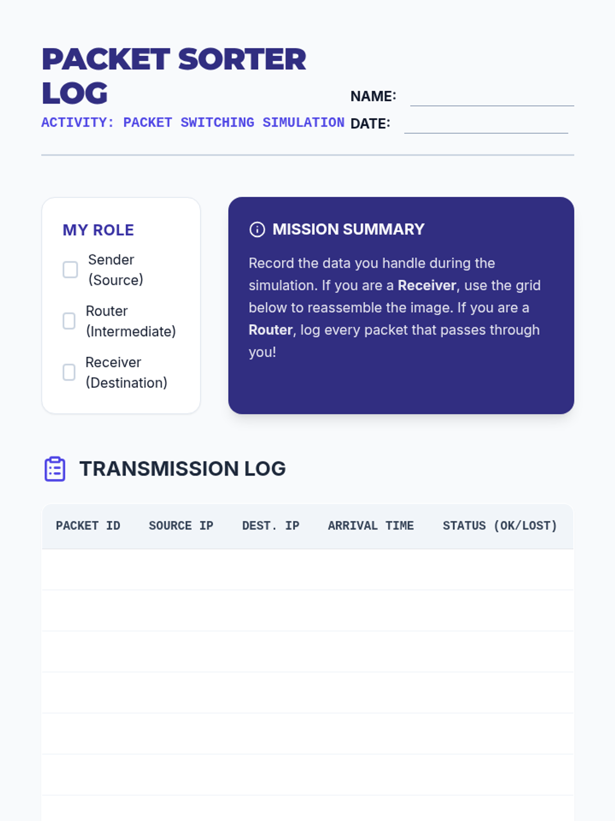 A 5-lesson sequence for 6th graders exploring how data travels securely across the internet through packets, protocols, and firewalls. Students engage in simulations and design projects to understand the invisible infrastructure of our digital world.