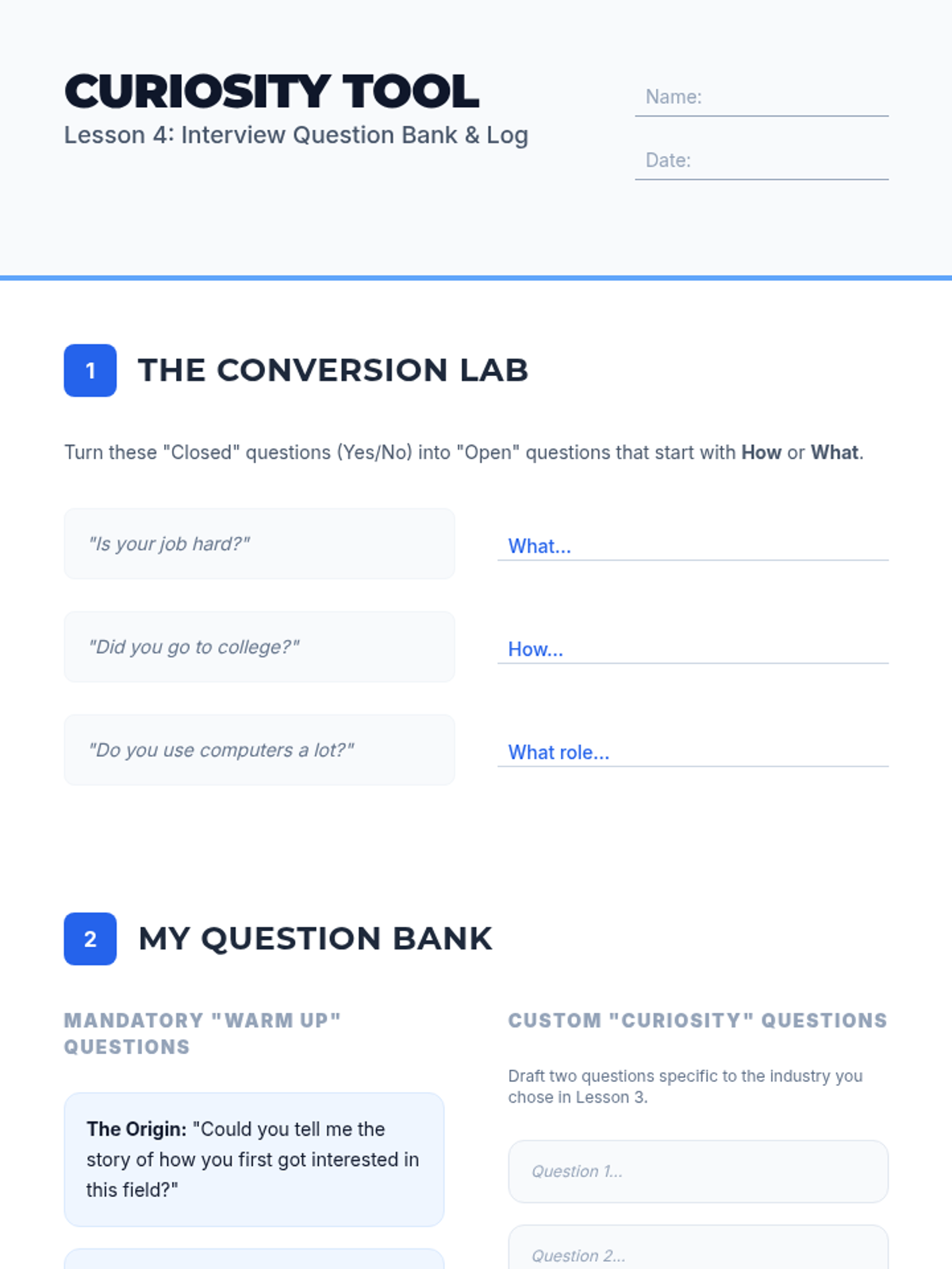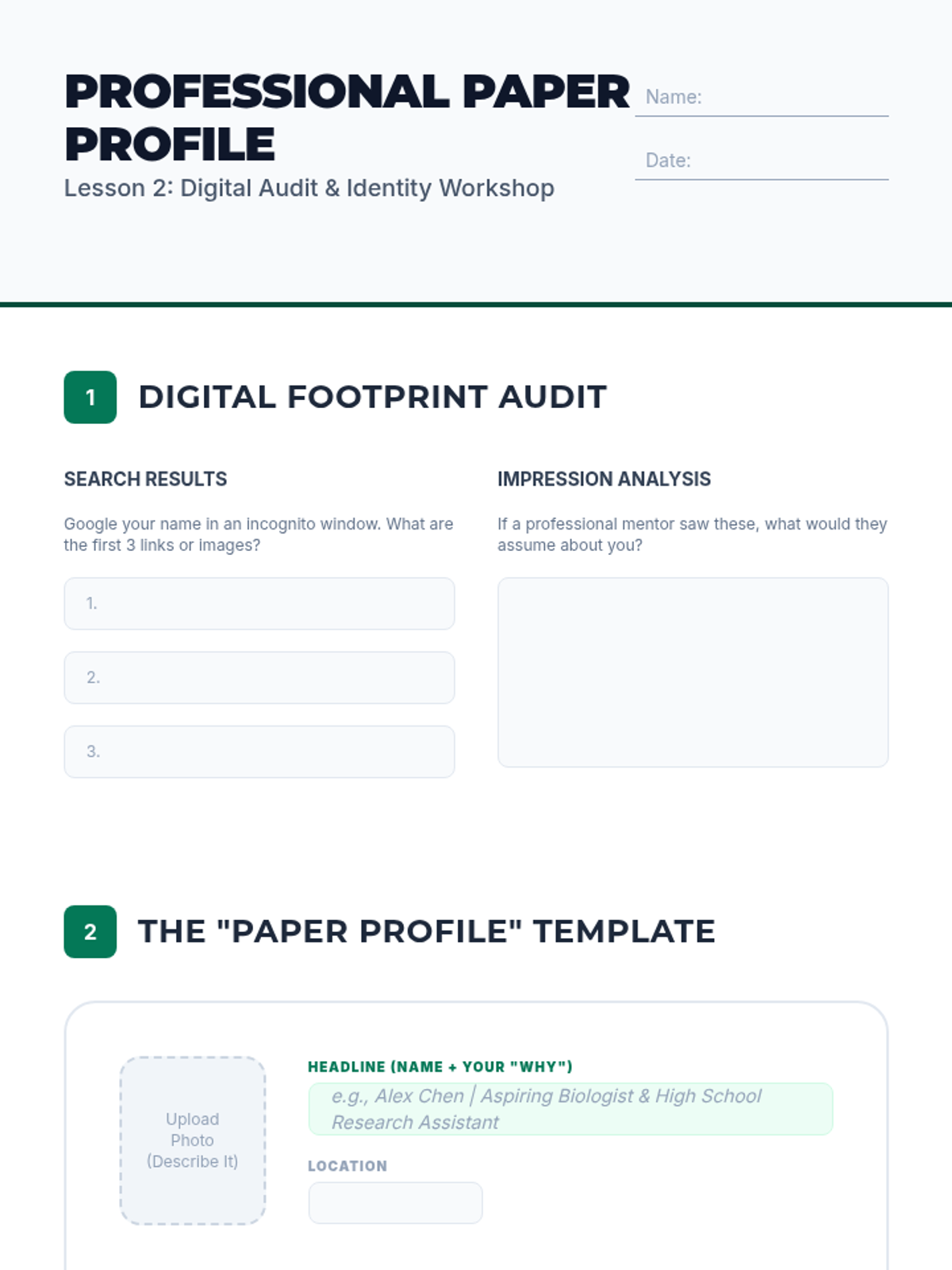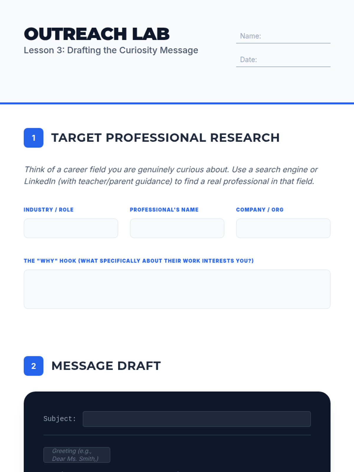 This sequence introduces 9th-grade students to the hidden job market and the power of networking through informational interviewing and digital research. Students will learn to audit their digital presence, identify potential professional contacts, and practice the art of inquiry-based networking.