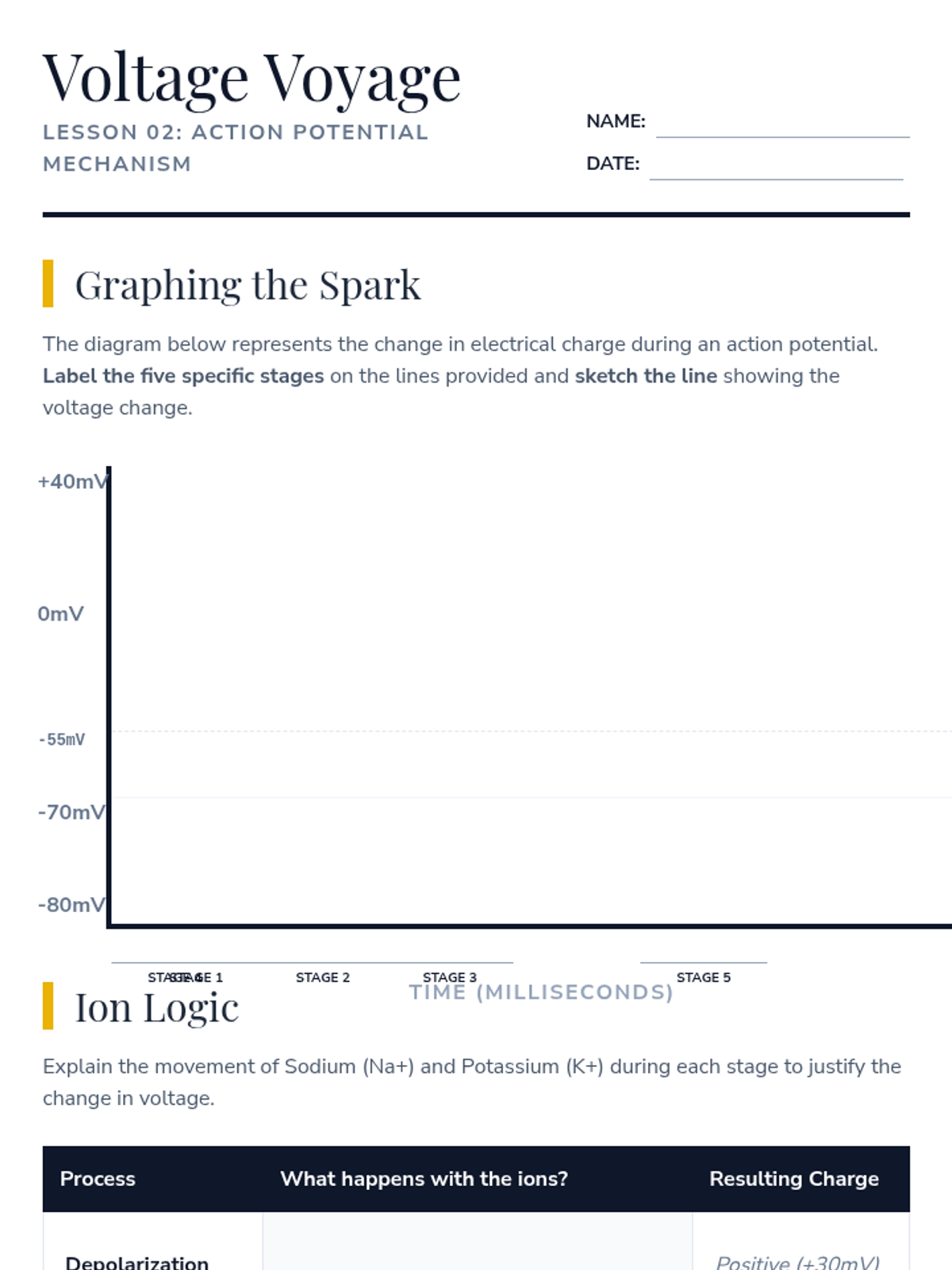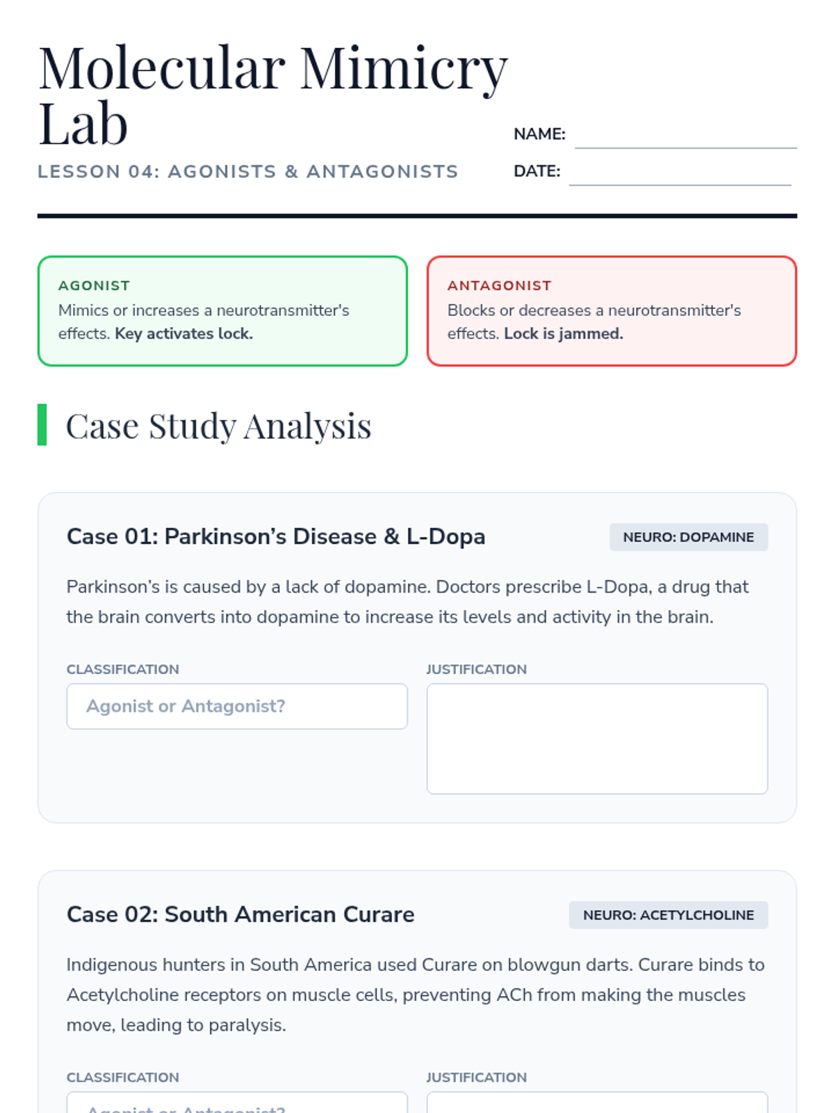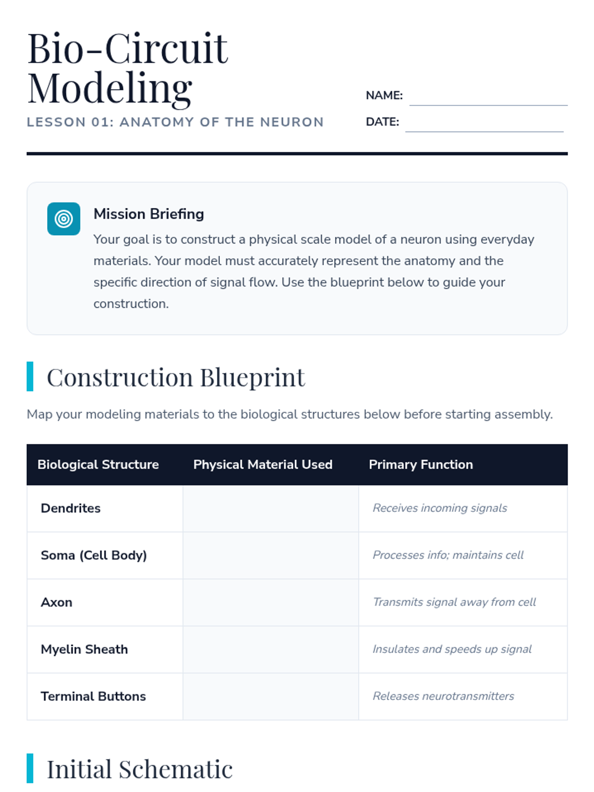 A comprehensive unit on the microscopic foundations of behavior, covering neural anatomy, electrochemical firing, neurotransmission, pharmacology, and neuroplasticity. Students move from basic structural modeling to analyzing complex chemical interactions and the brain's ability to reorganize itself.