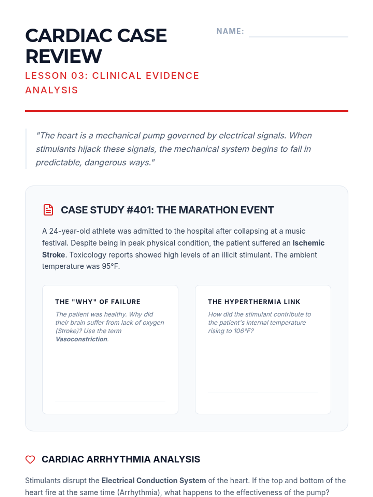 A scientific inquiry into how stimulants alter the central nervous system, cardiovascular health, and brain plasticity. Students move from basic neurobiology to complex physiological synthesis through case studies and simulations.