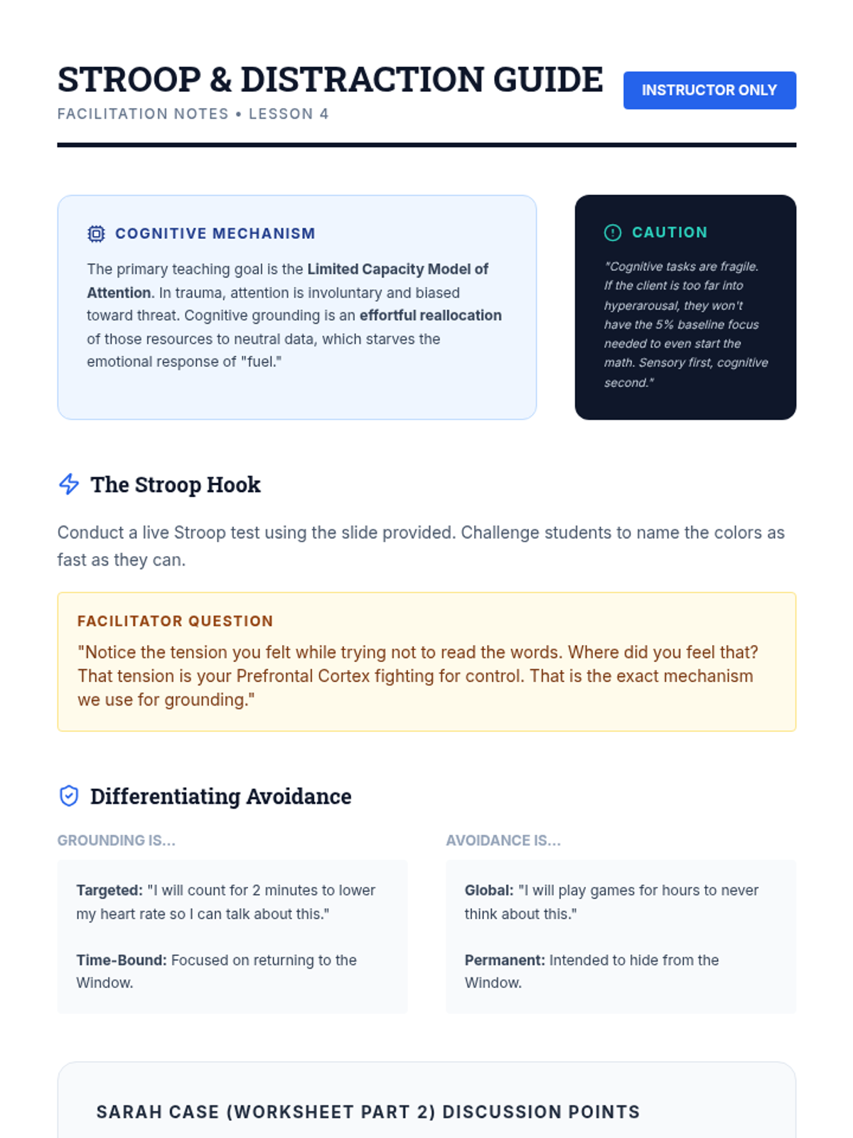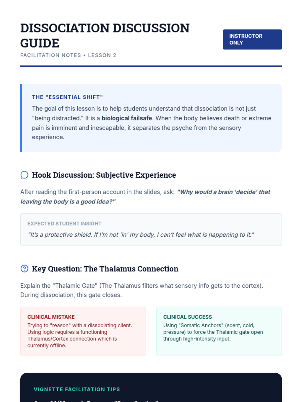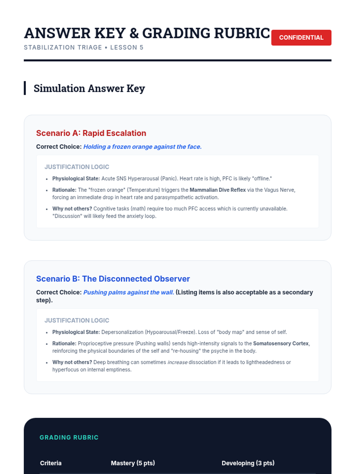 This sequence explores the physiological and neurological underpinnings of grounding techniques within the context of trauma and anxiety regulation. Students will examine the Polyvagal Theory and the 'Window of Tolerance' to understand how sensory and cognitive interventions interact with the autonomic nervous system to reduce hyperarousal.