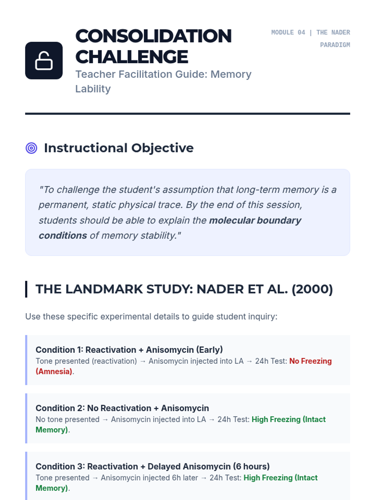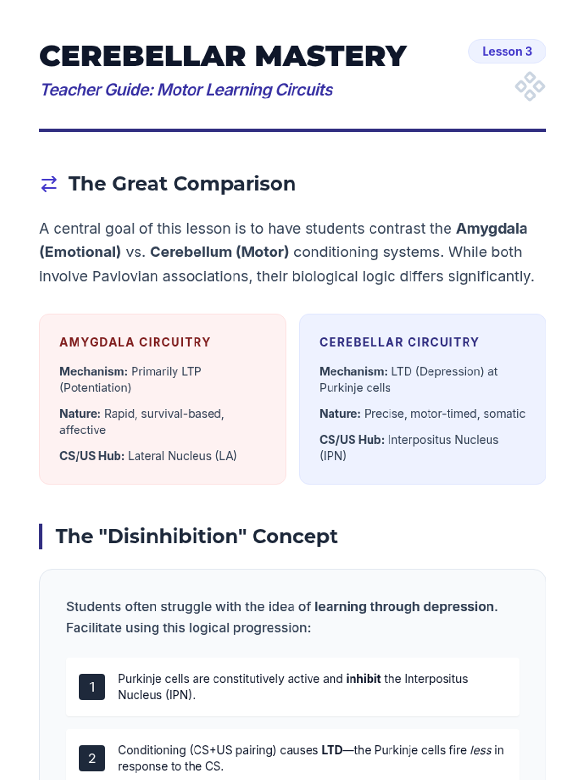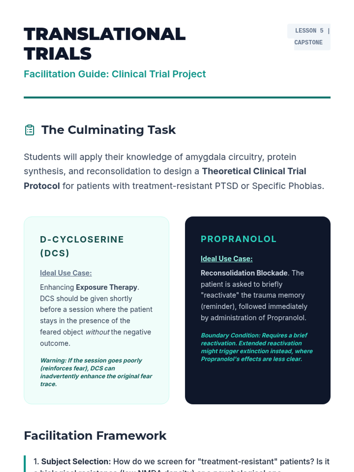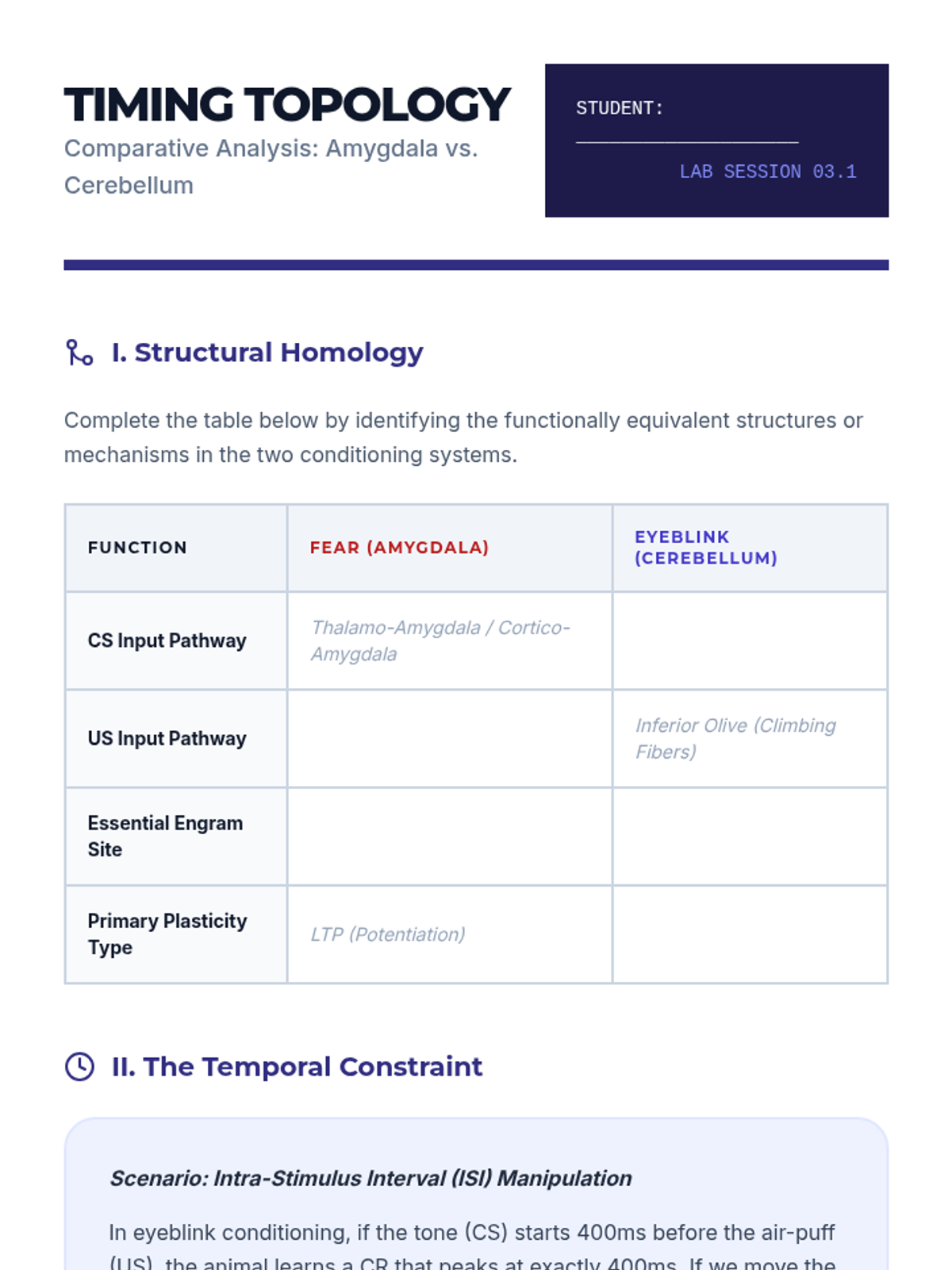 A graduate-level sequence exploring the neurobiological substrates of classical conditioning, focusing on synaptic plasticity, brain circuitry (amygdala and cerebellum), memory consolidation, and pharmacological interventions for memory modification.