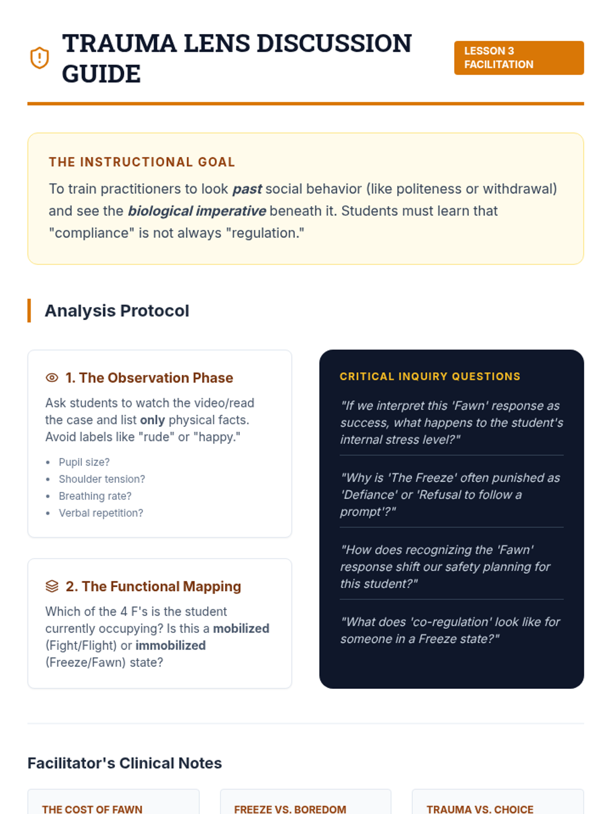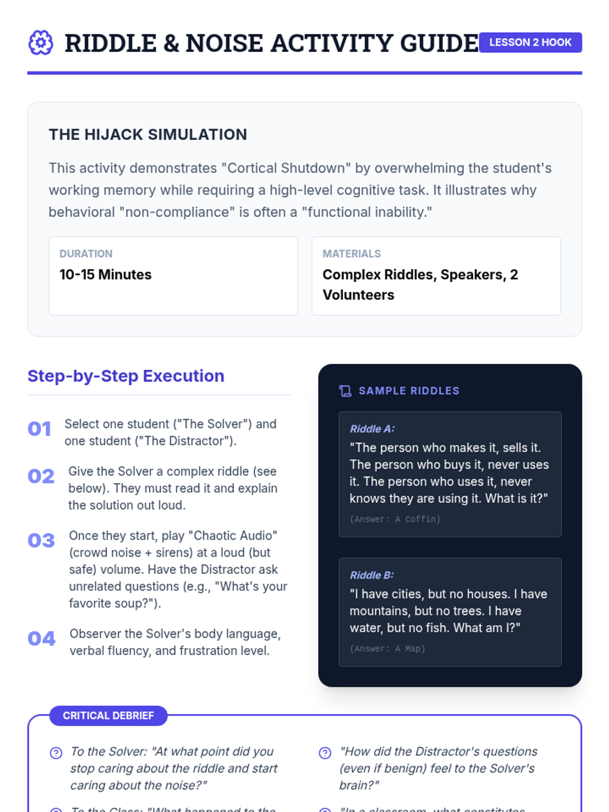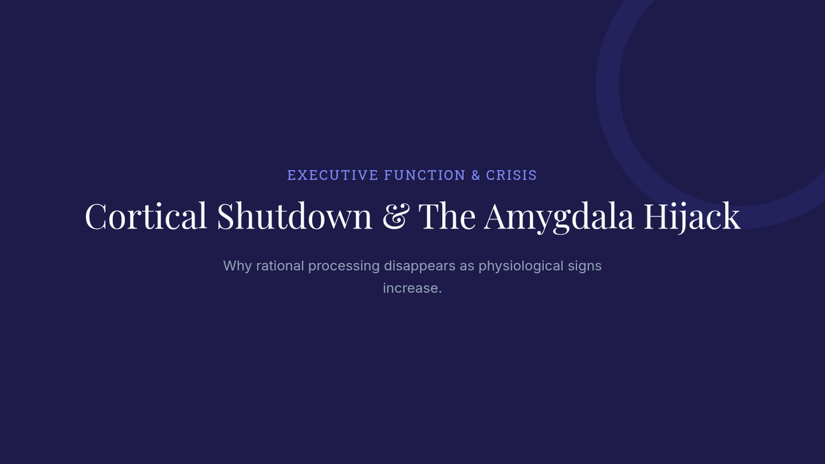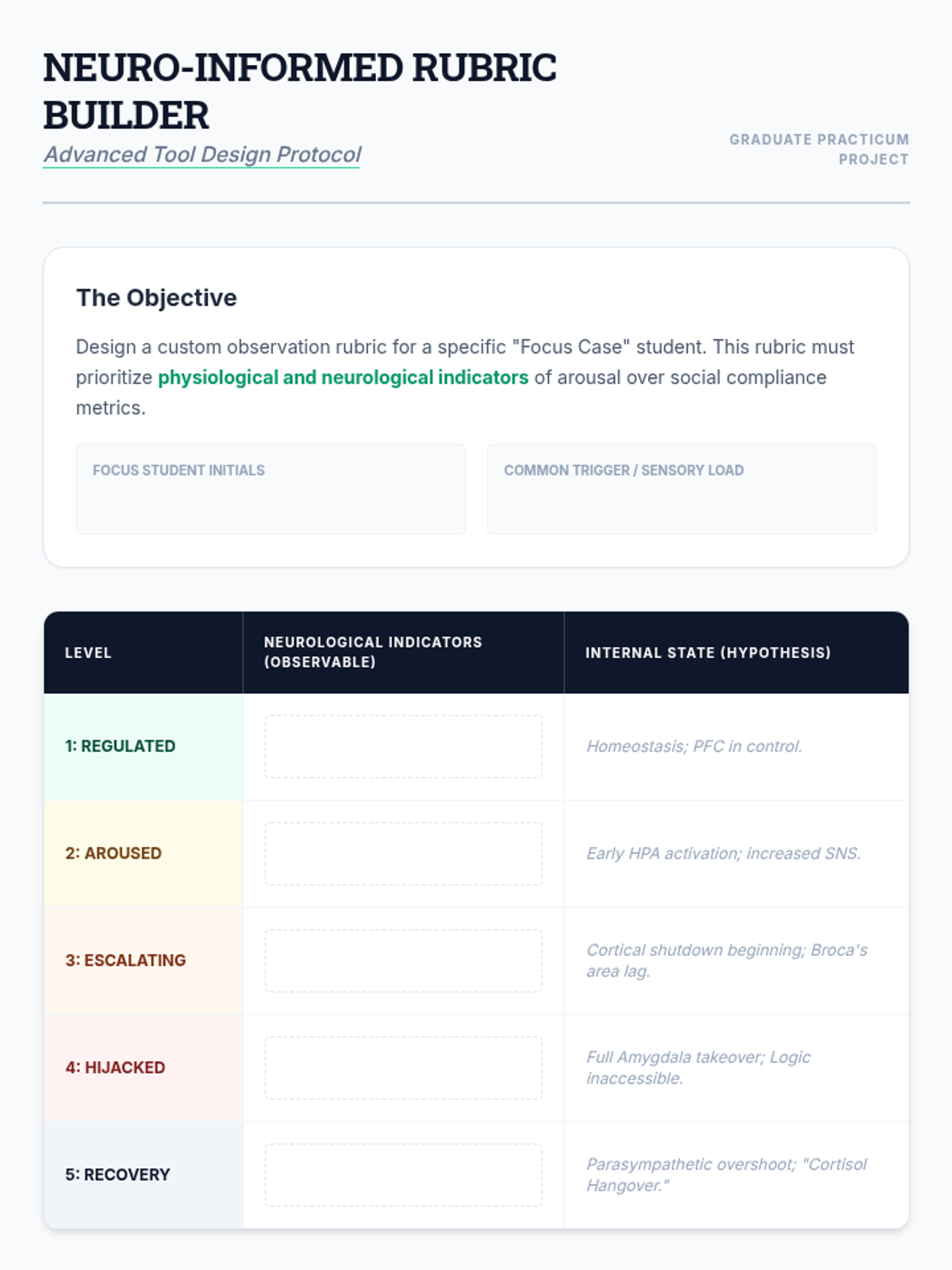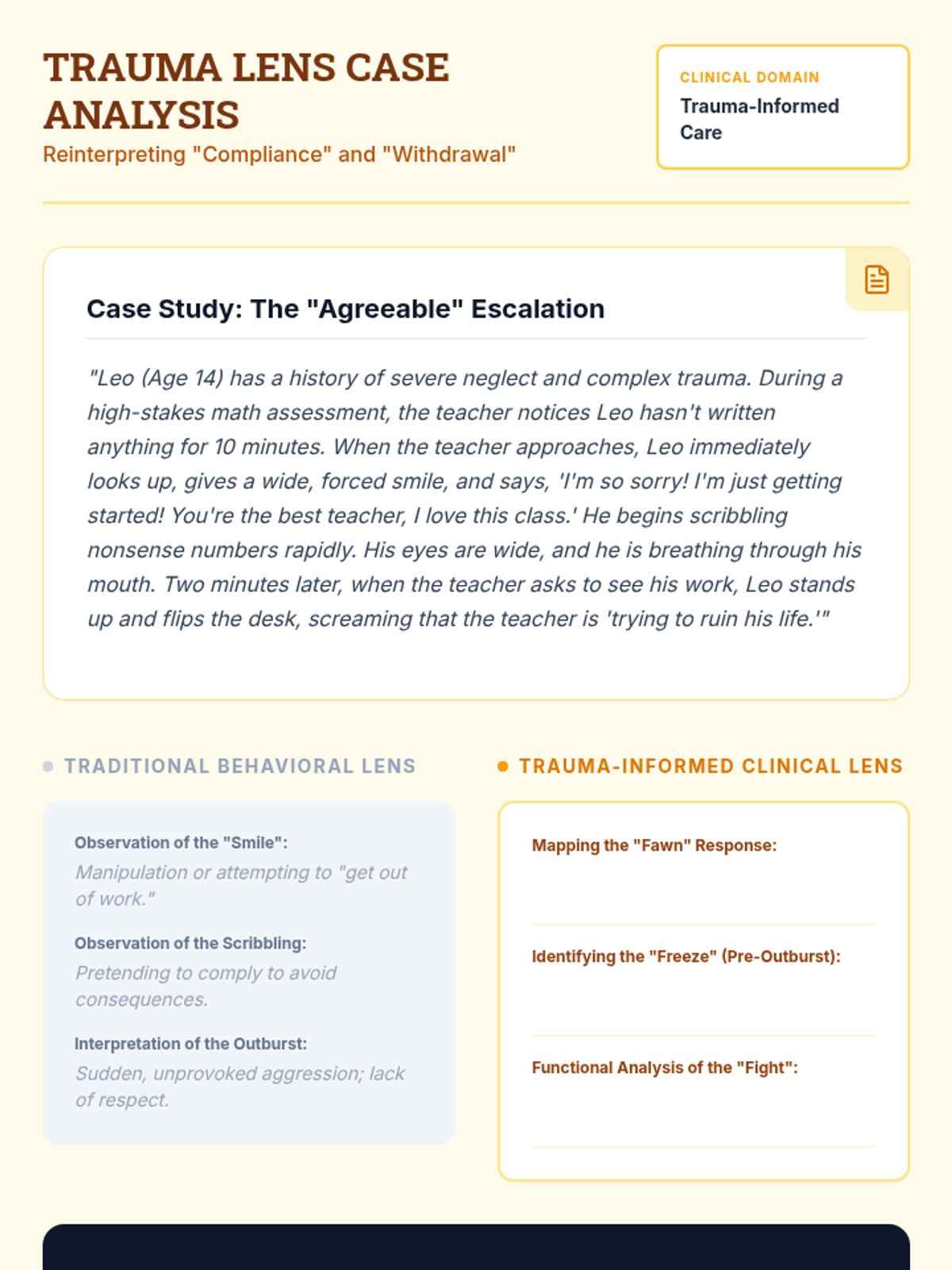 This advanced sequence for graduate students explores the neurobiological and physiological underpinnings of behavioral escalation. It shifts the practitioner's lens from viewing behavior as defiance to seeing it as a manifestation of neural processes, focusing on the HPA axis, cortical shutdown, trauma responses, and sensory processing.