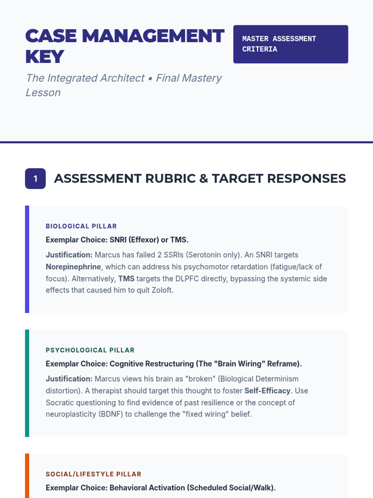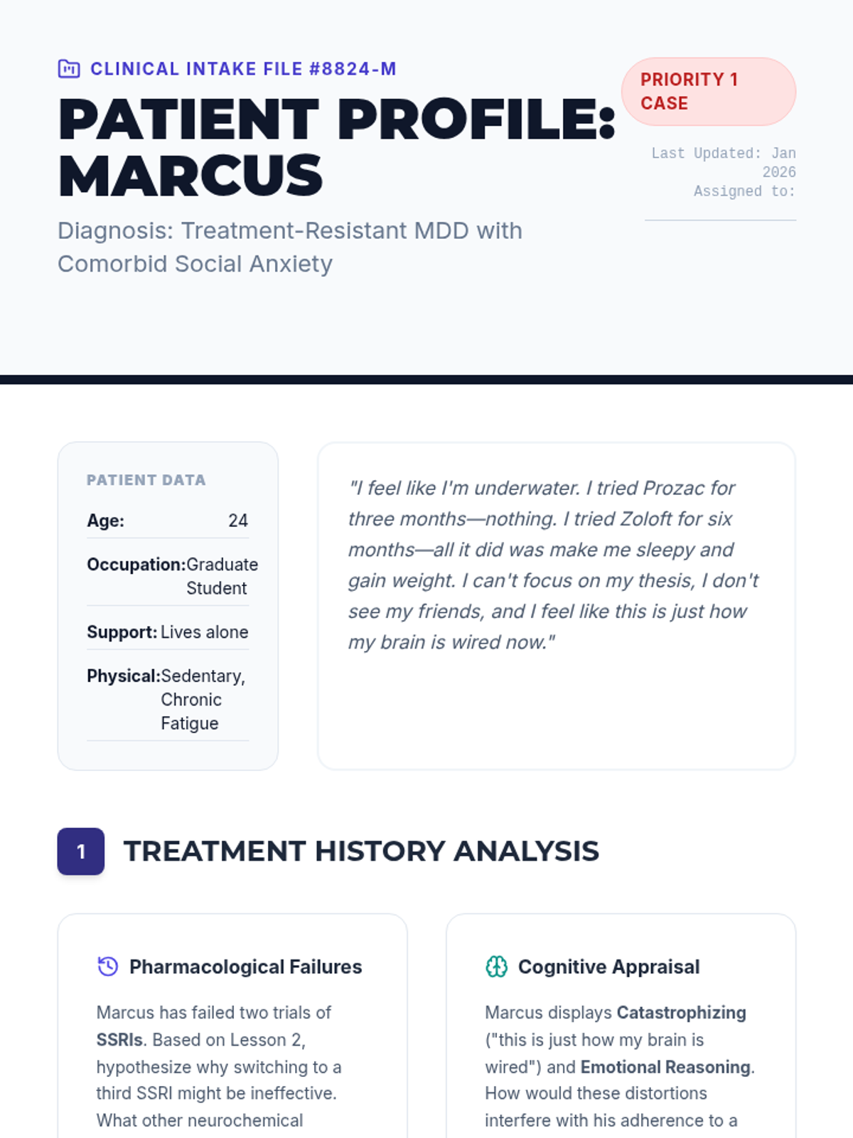 This sequence bridges the gap between biological psychology and clinical practice by examining the neurobiological mechanisms of mood and anxiety disorders alongside their therapeutic interventions. Students integrate biological, psychological, and social perspectives to design comprehensive, evidence-based treatment plans.