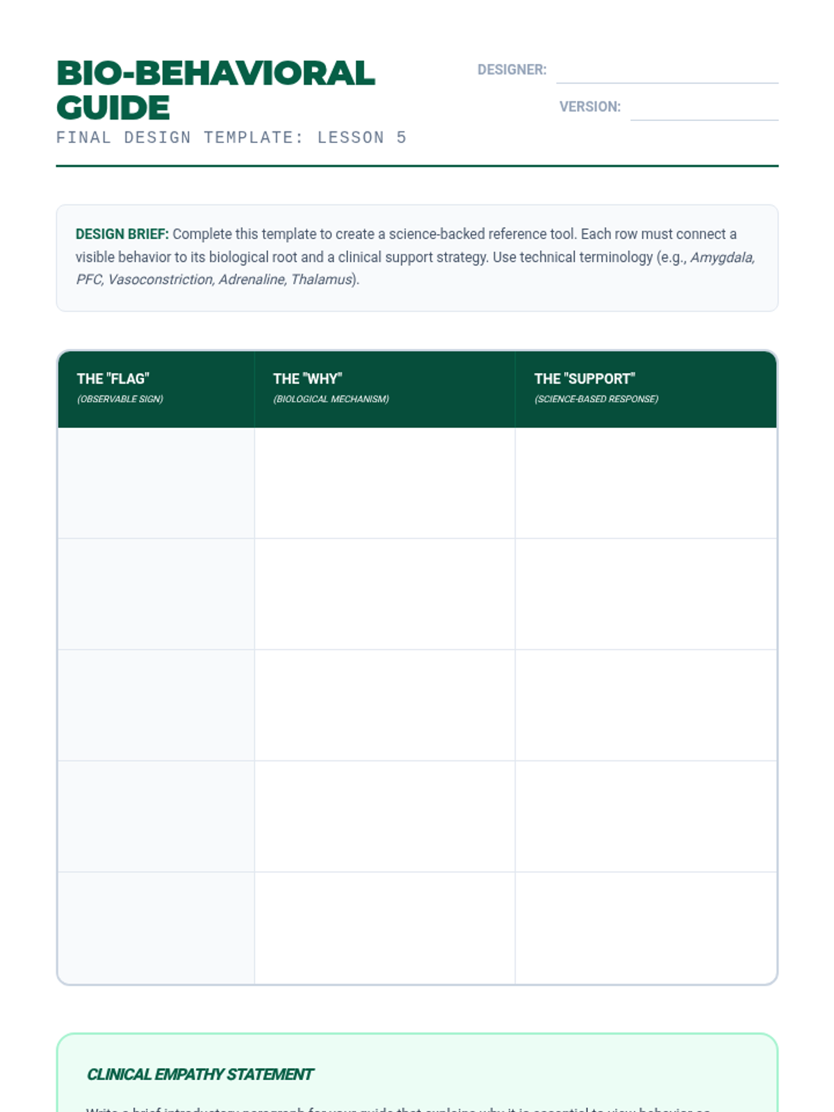 This inquiry-based sequence bridges biology and behavioral science, exploring the neurobiological roots of agitation. Students investigate the 'why' behind physiological changes during escalation to foster an objective, science-based approach to behavioral support.
