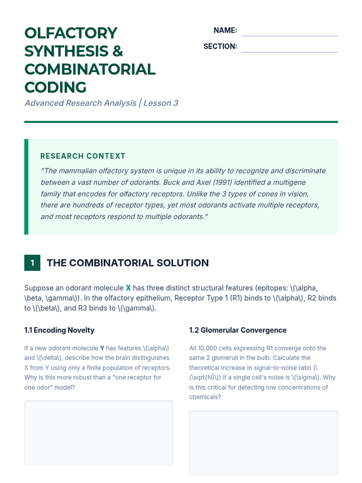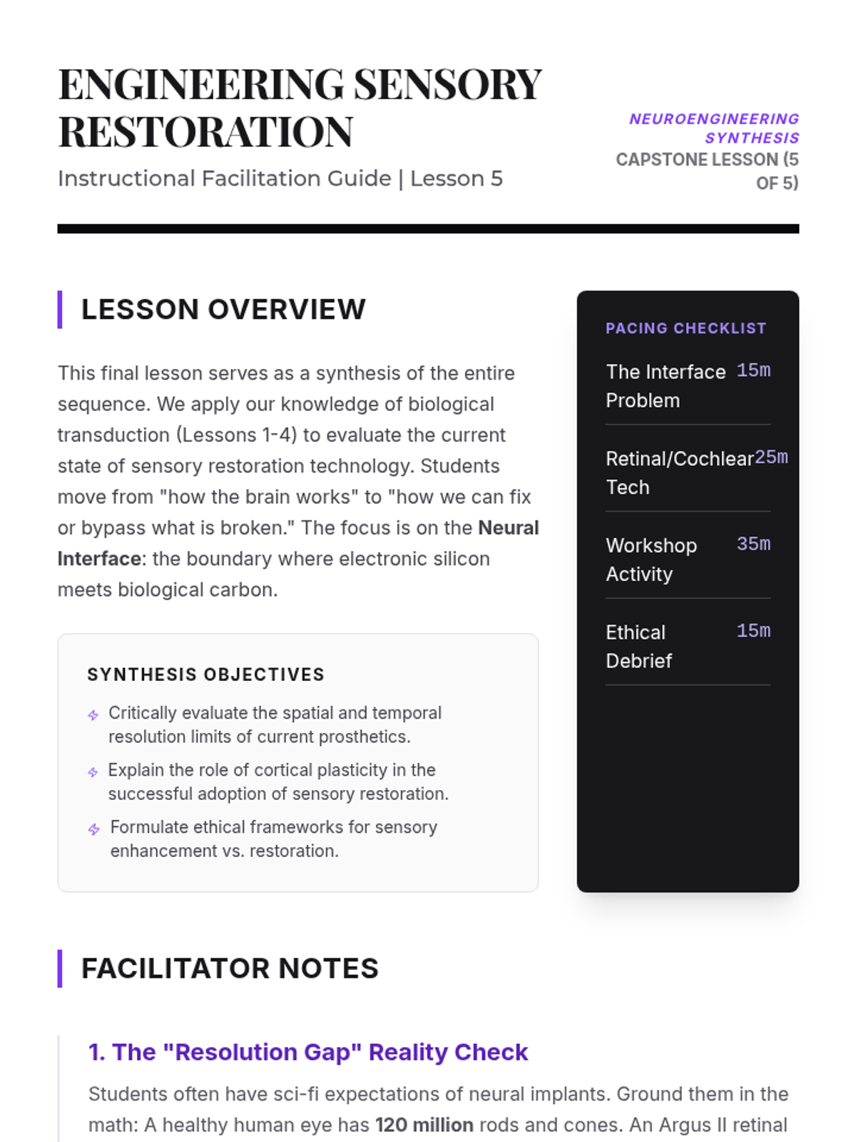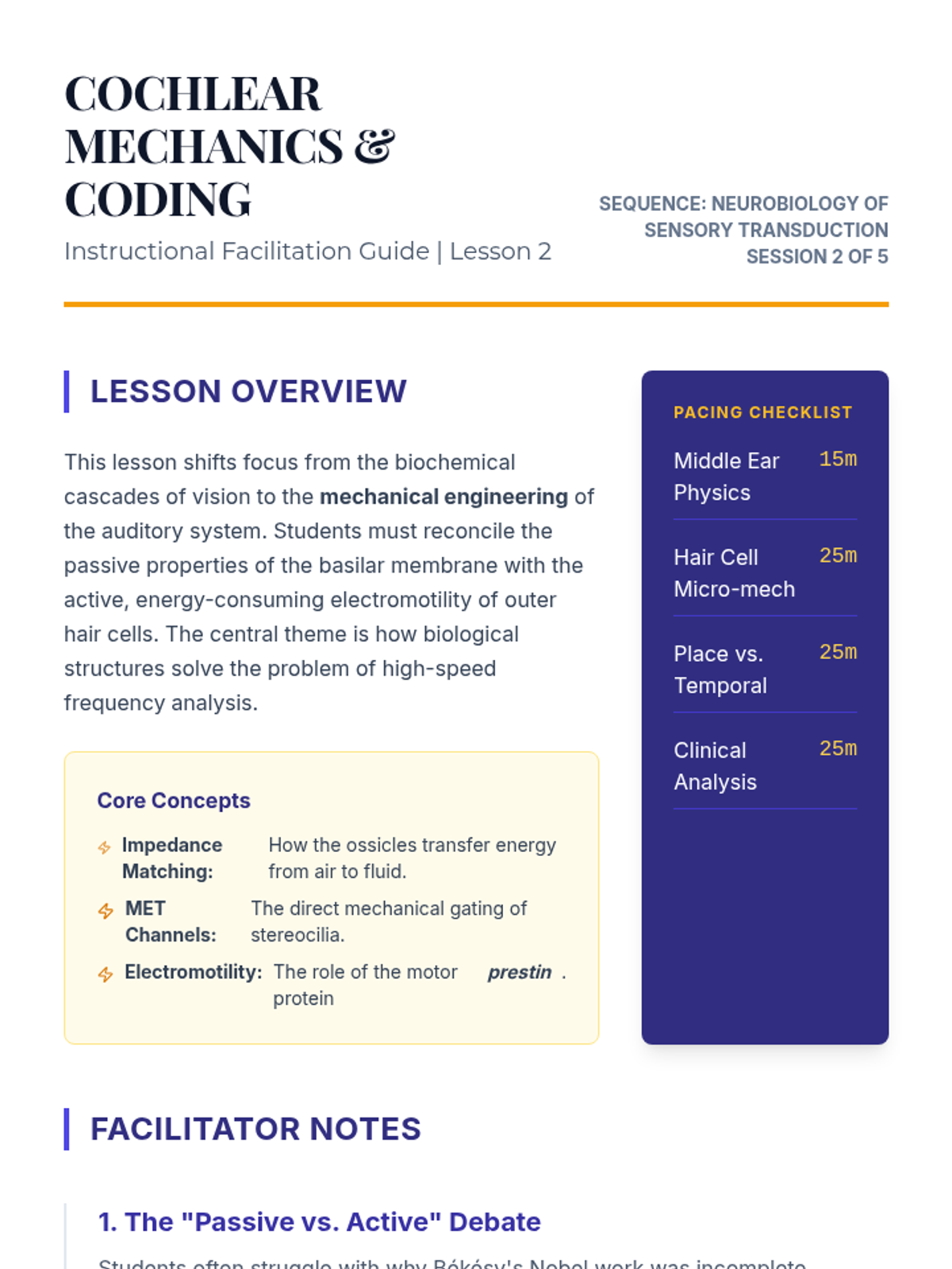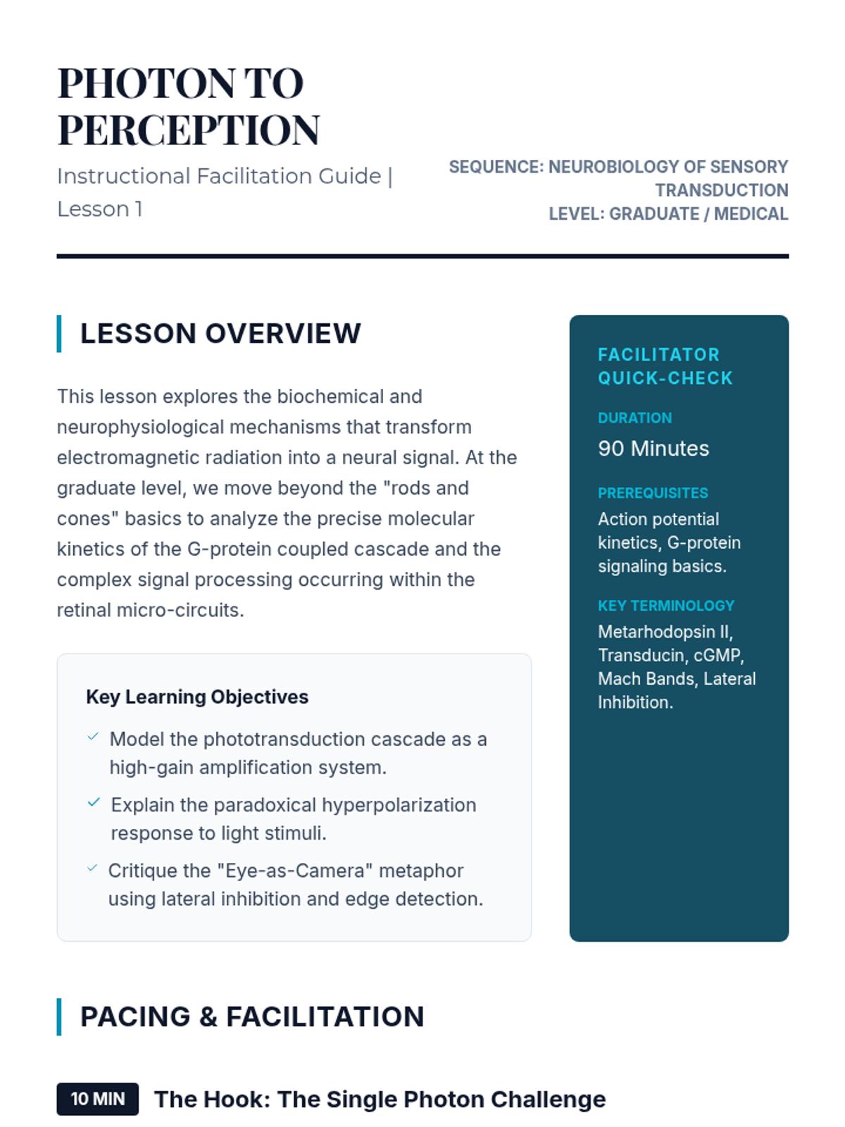 A graduate-level exploration of the biological mechanisms of sensory transduction, focusing on the molecular pathways, structural constraints, and neurophysiological coding across all primary senses. The sequence bridges the gap between biochemistry and psychological experience through case studies and critical evaluation of neural engineering.