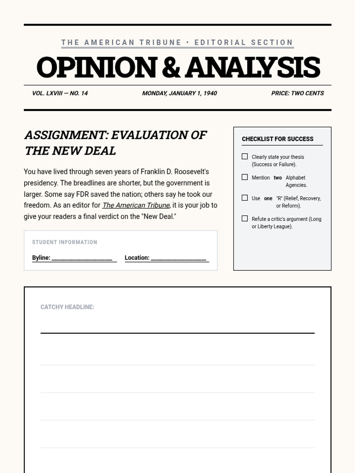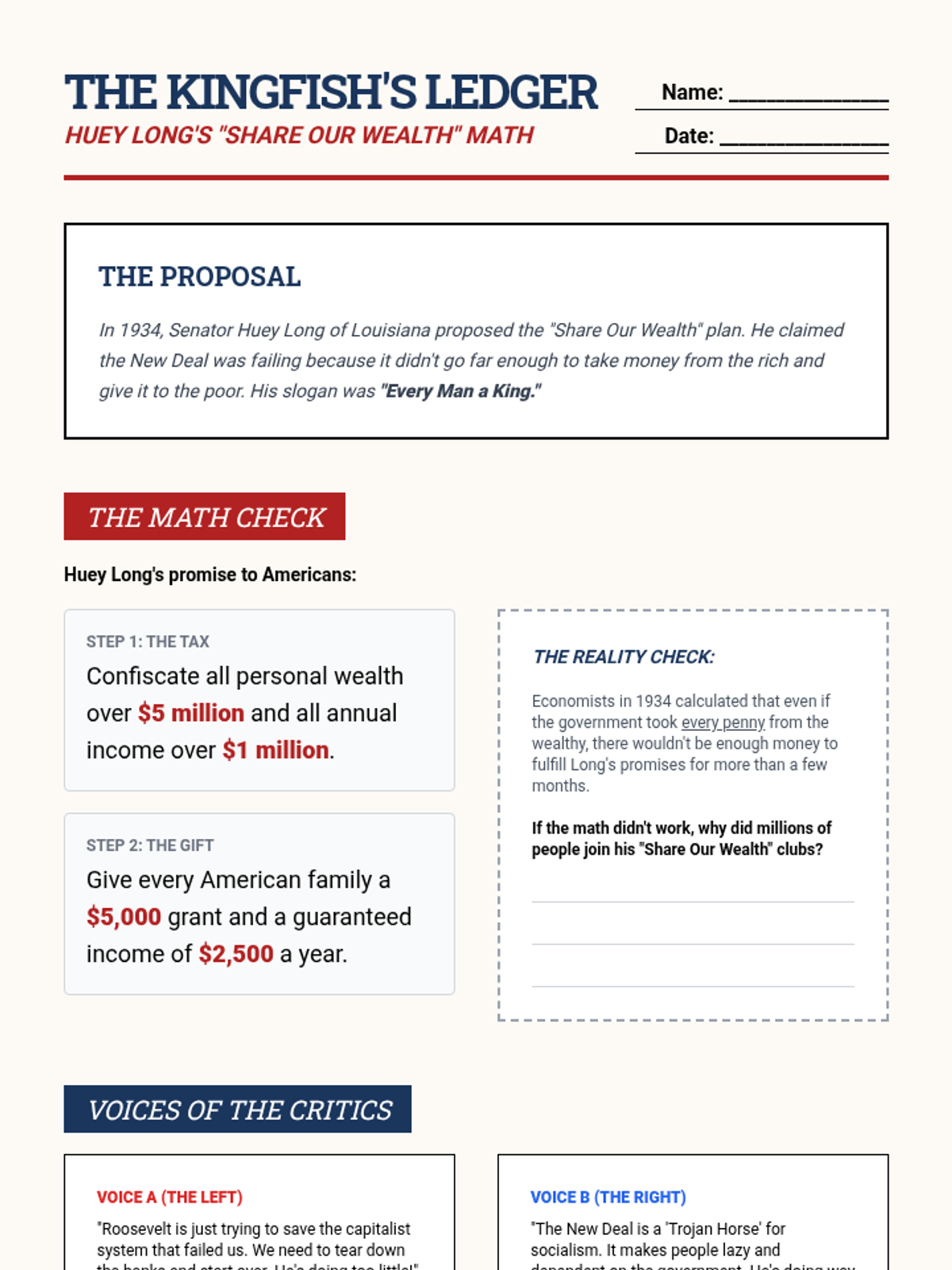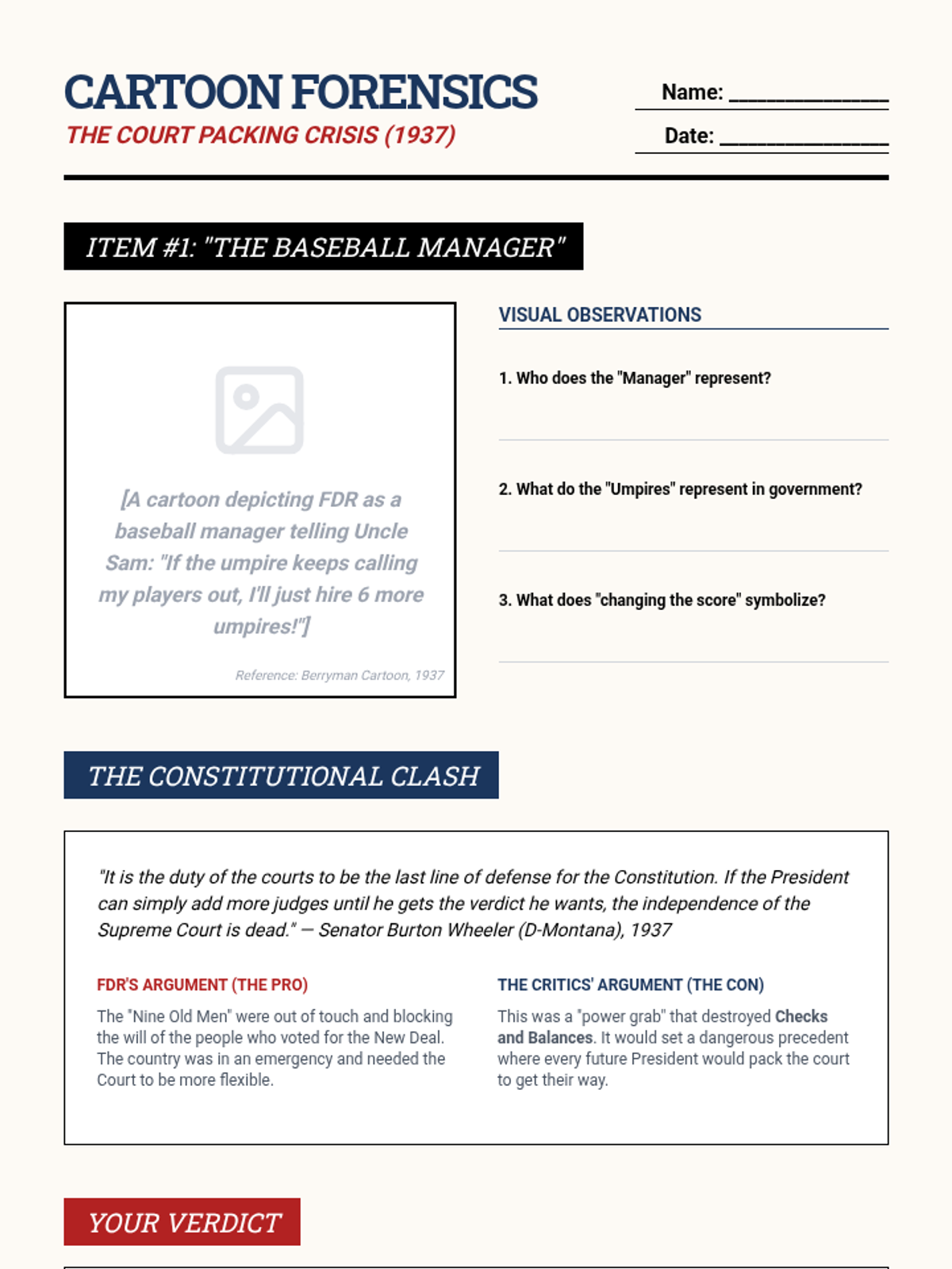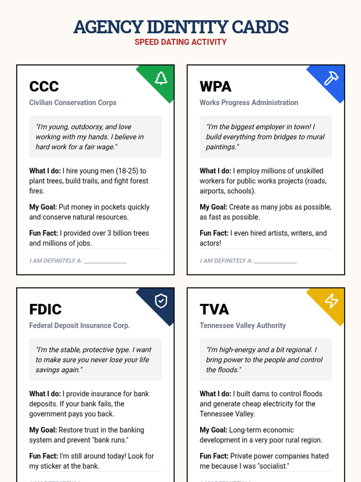 This sequence critically evaluates the political response to the Great Depression, focusing on the shift from Hoover's 'rugged individualism' to FDR's New Deal. Students categorize alphabet agencies into Relief, Recovery, and Reform, and analyze the resulting expansion of federal power and constitutional crises.
