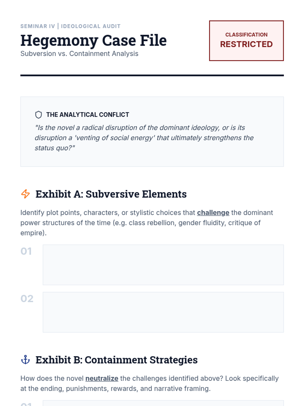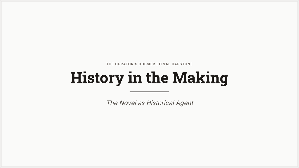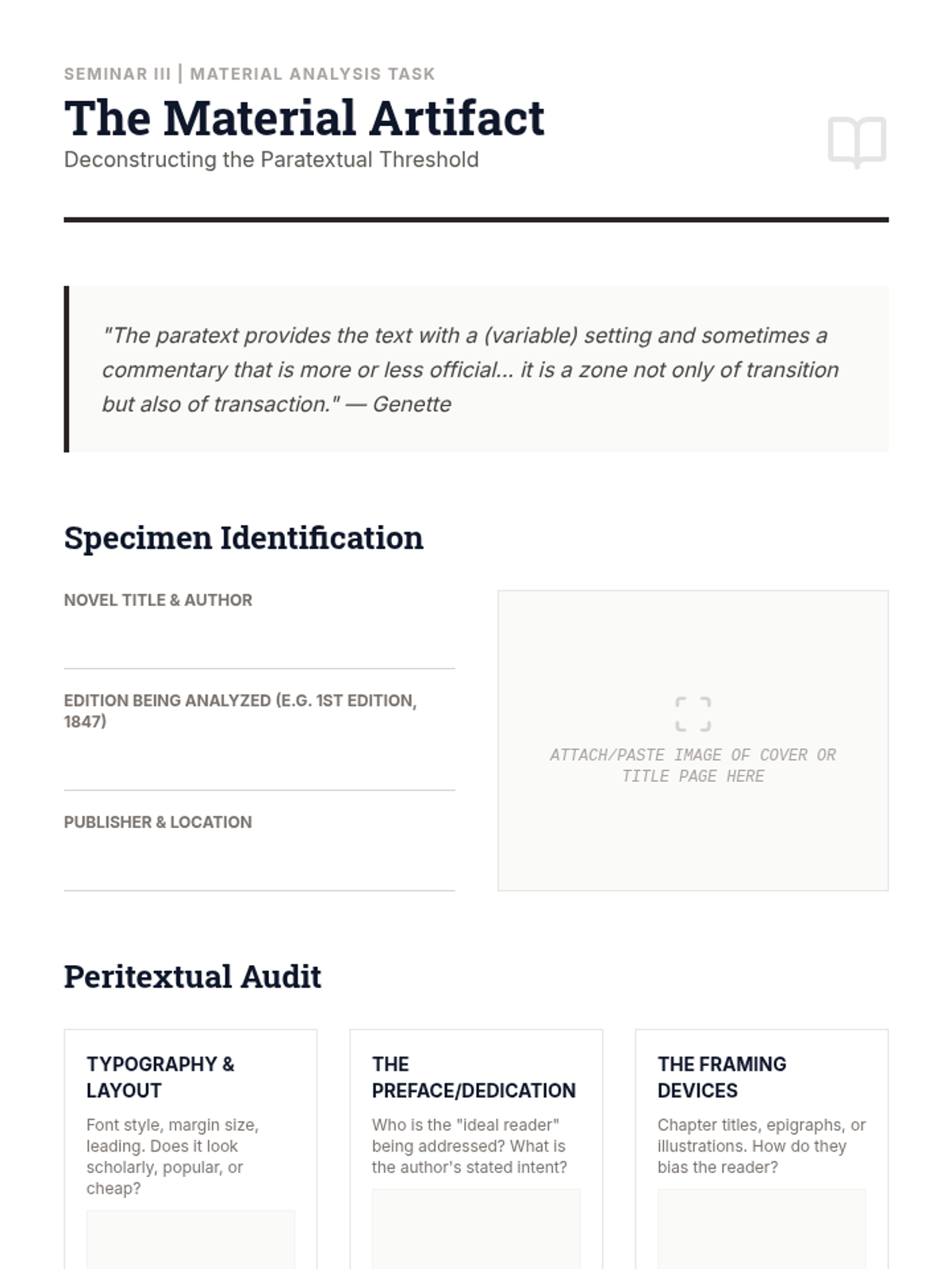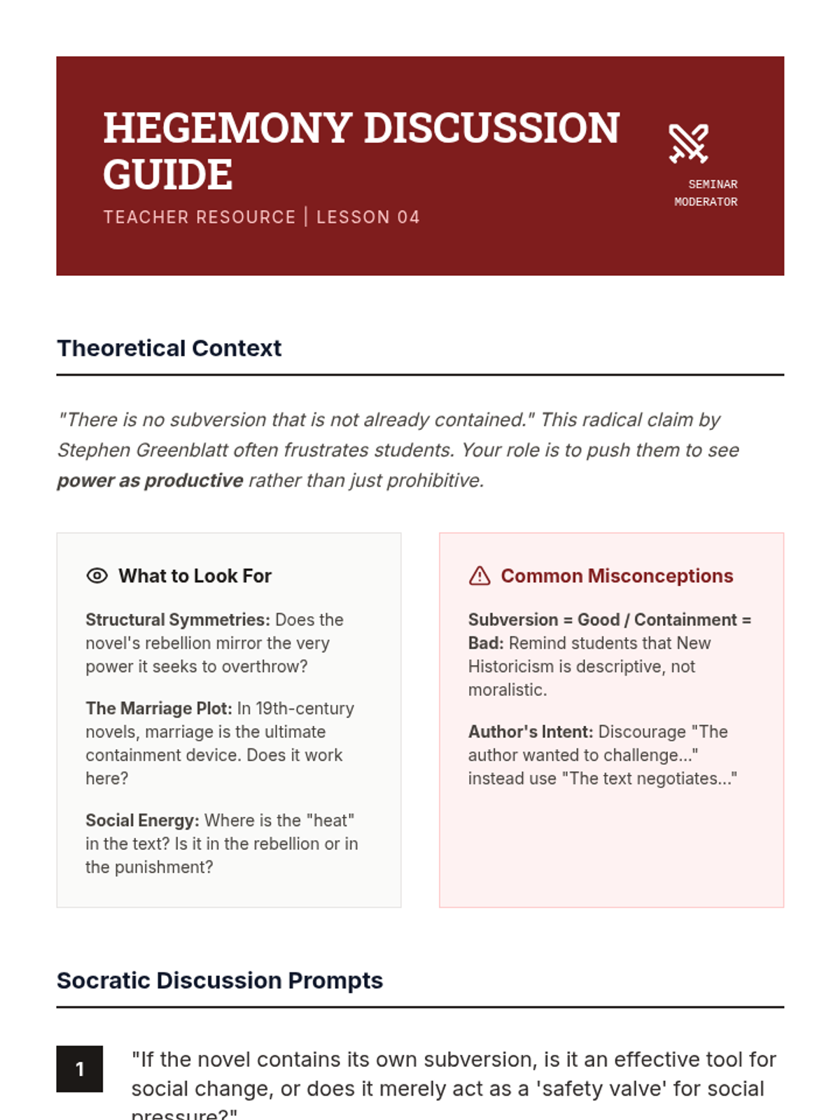 A graduate-level exploration of New Historicism and Archival Contextualization in novel studies, focusing on the text as a social artifact within a web of historical discourses.