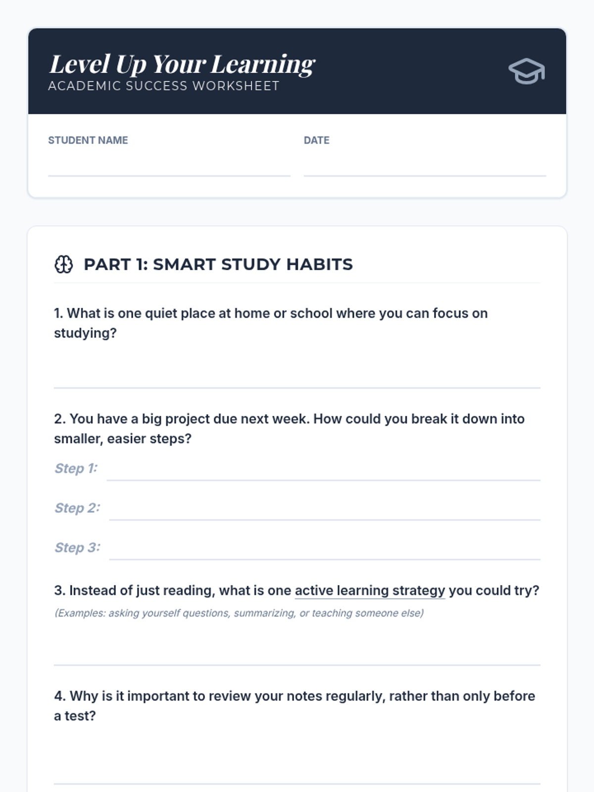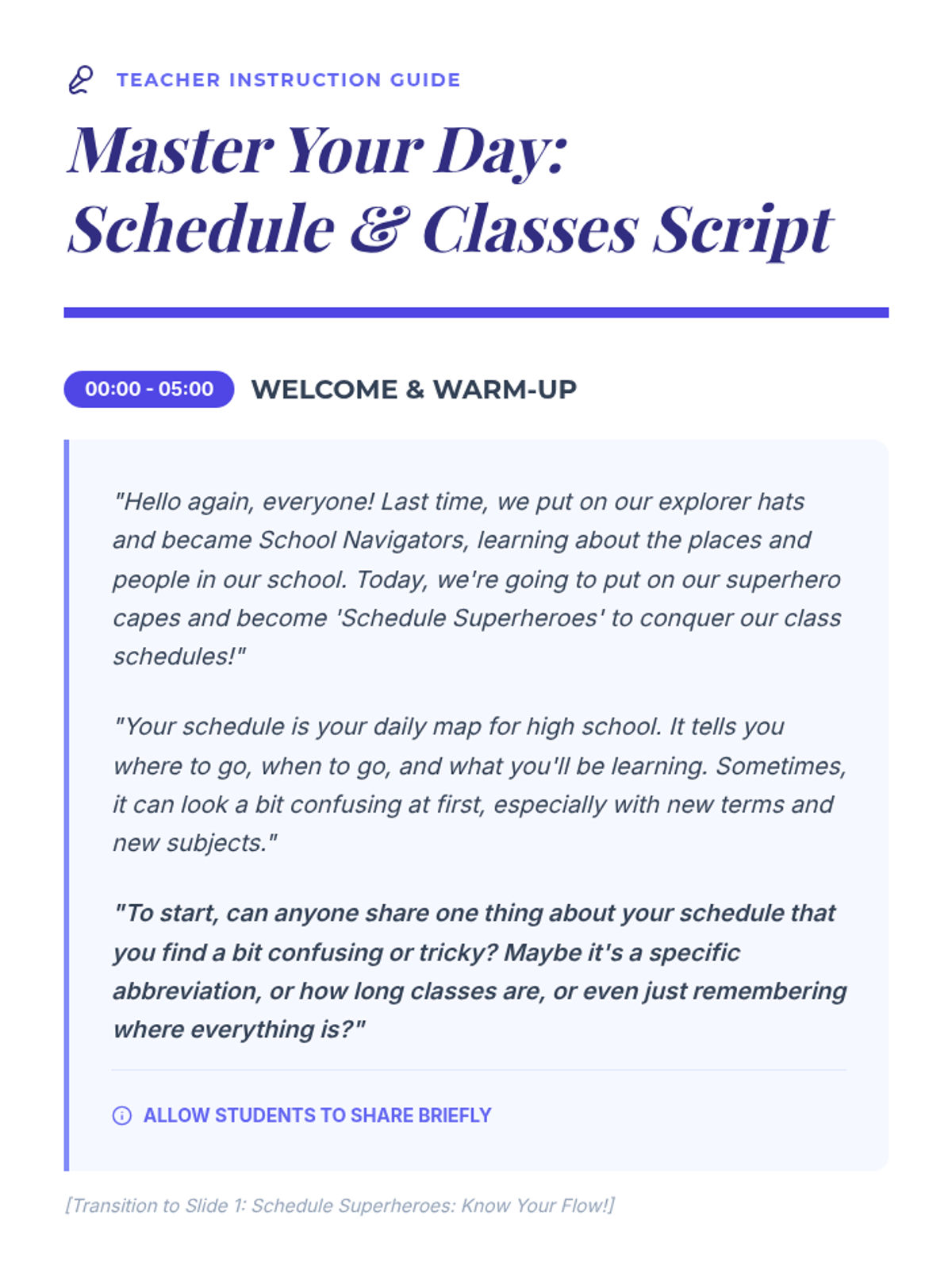 An 8-session executive functioning program designed for high schoolers to master time management and task initiation. Students use visual "maps" and blueprints to navigate their workload and build self-regulation habits.