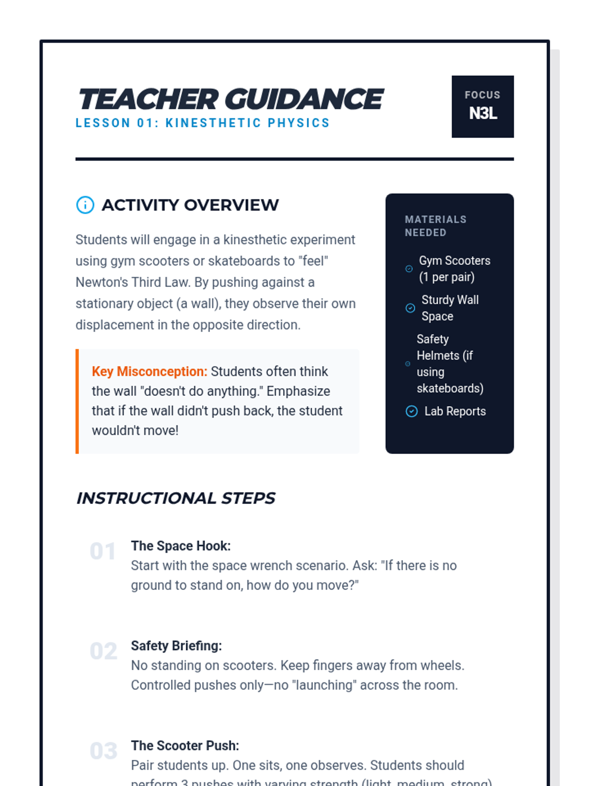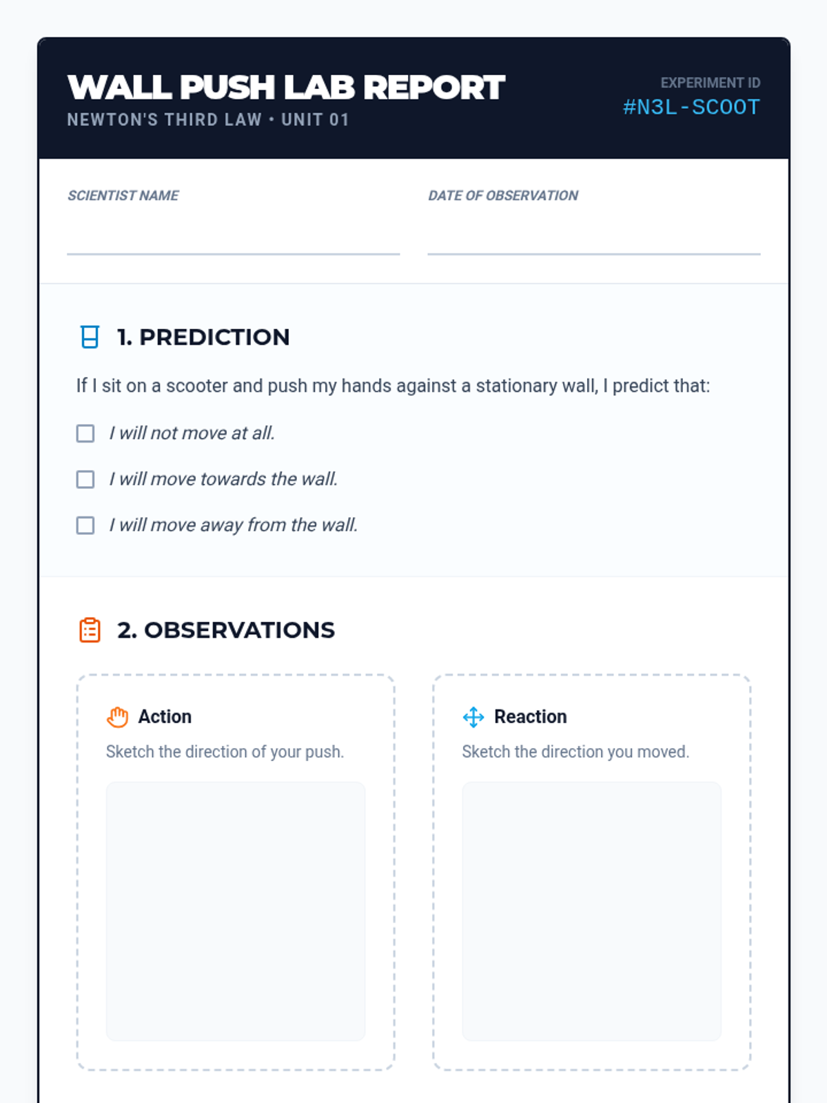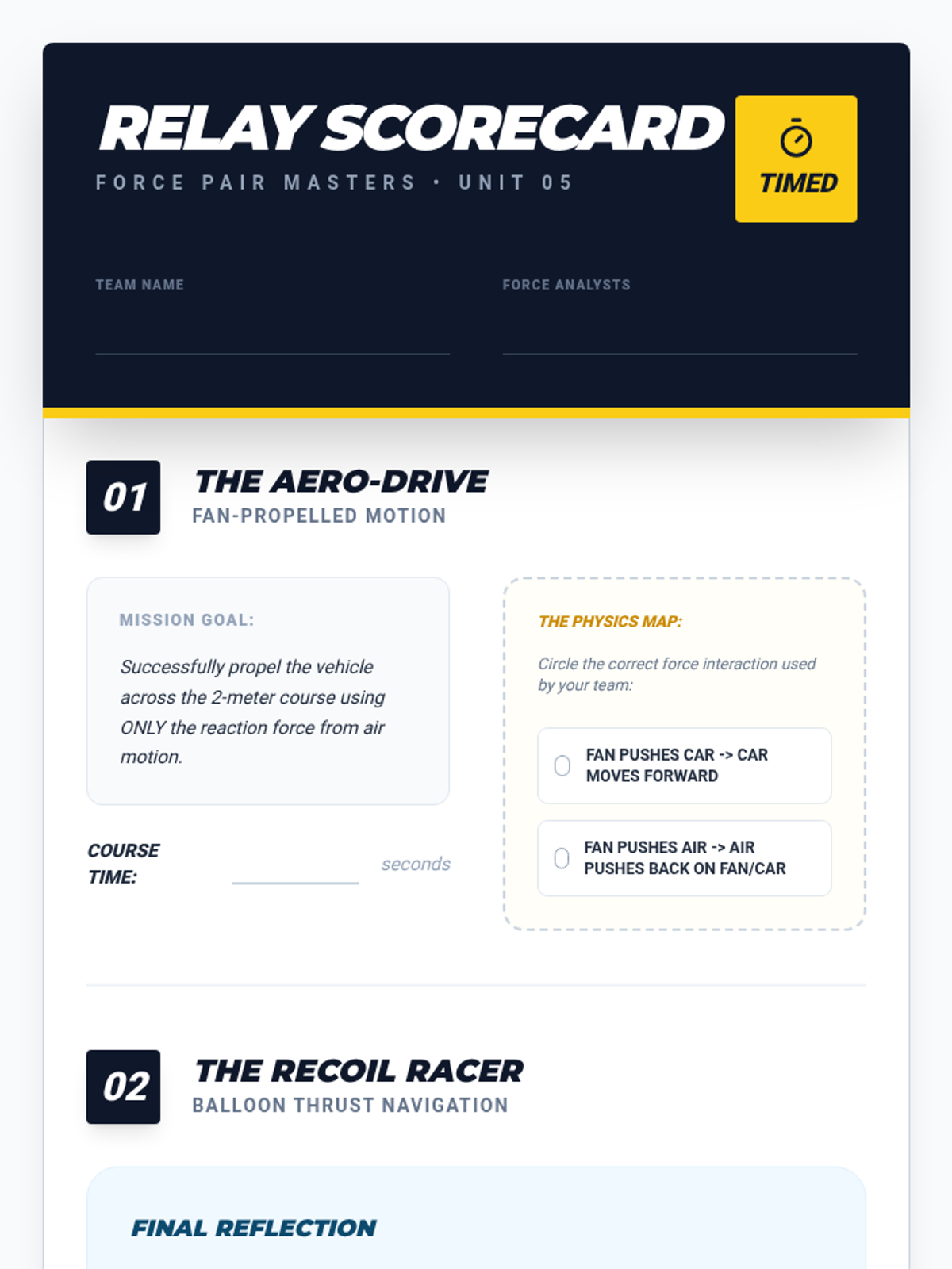 A 5th-grade physics sequence exploring Newton's Third Law through physical challenges, balloon rockets, collision analysis, and sports applications. Students move from kinesthetic experiences to modeling and analyzing force pairs in real-world scenarios.