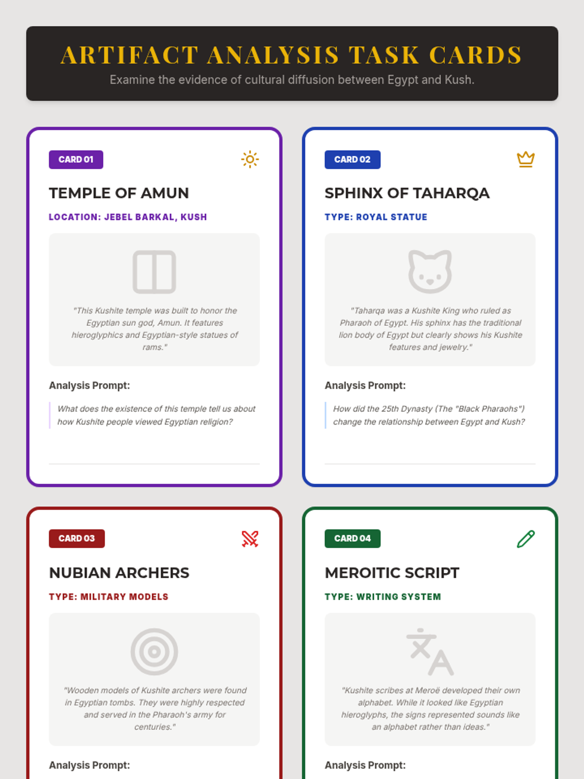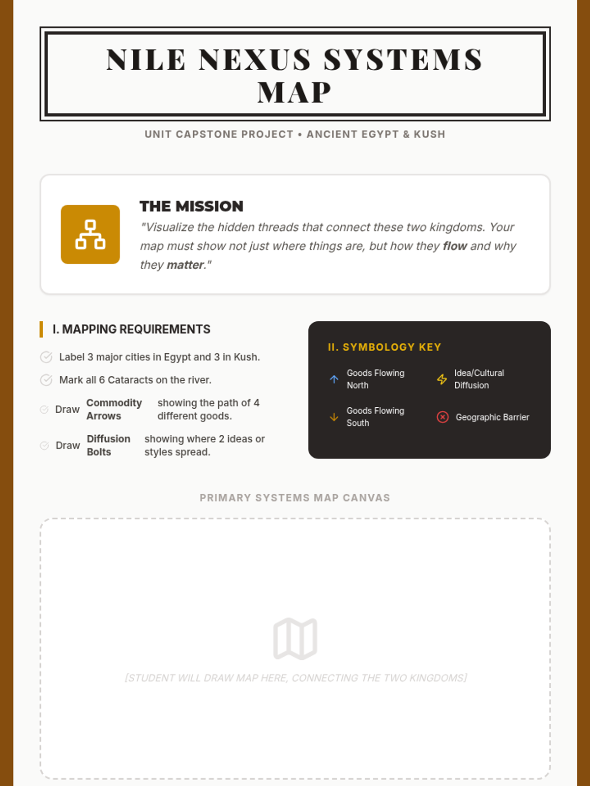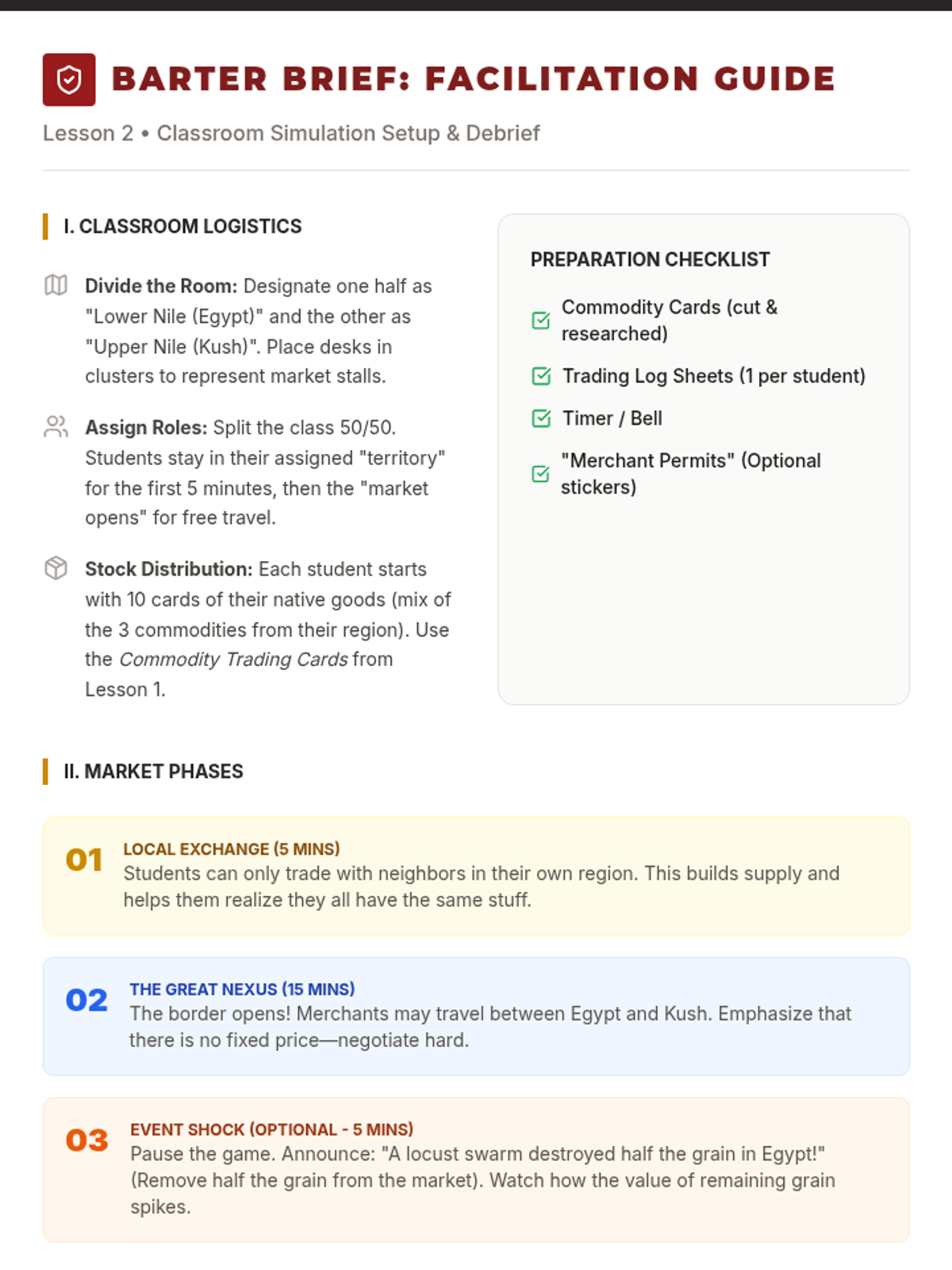 A game-based sequence exploring the economic systems and trade networks between Ancient Egypt and Kush, focusing on commodities, barter systems, logistics, cultural diffusion, and interdependence.
