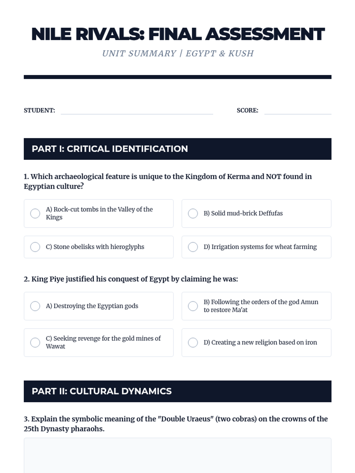 A deep dive into the complex, shifting relationship between Ancient Egypt and the Kingdom of Kush. Students explore trade, imperialism, and cultural fusion, culminating in the 25th Dynasty's rule over both lands and the eventual rise of Meroë.