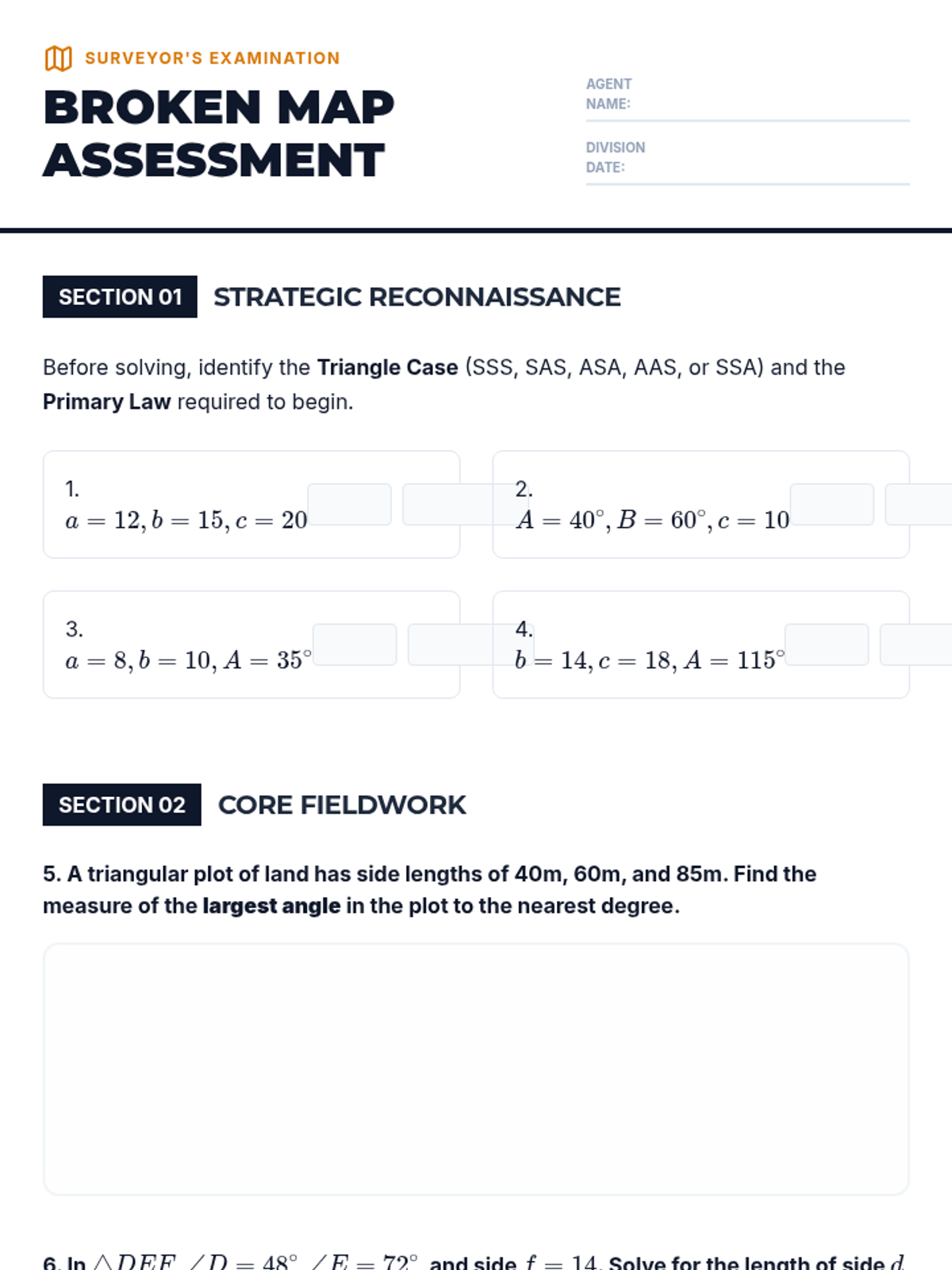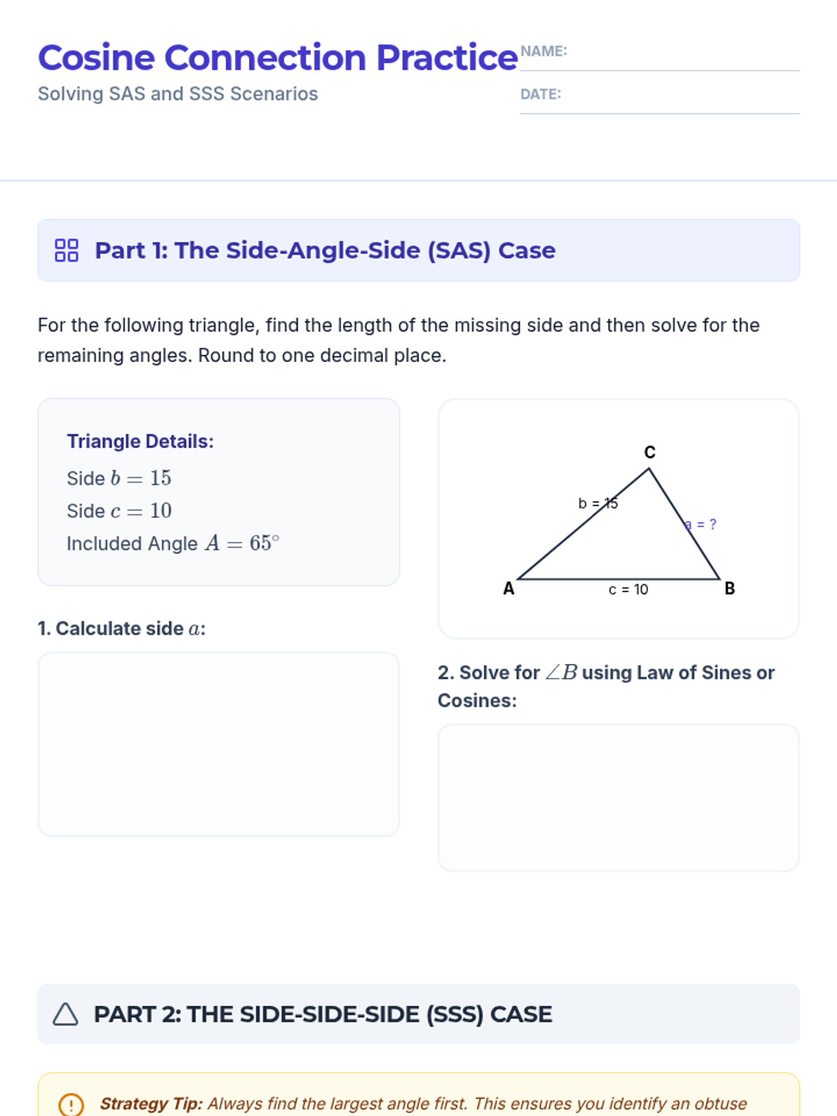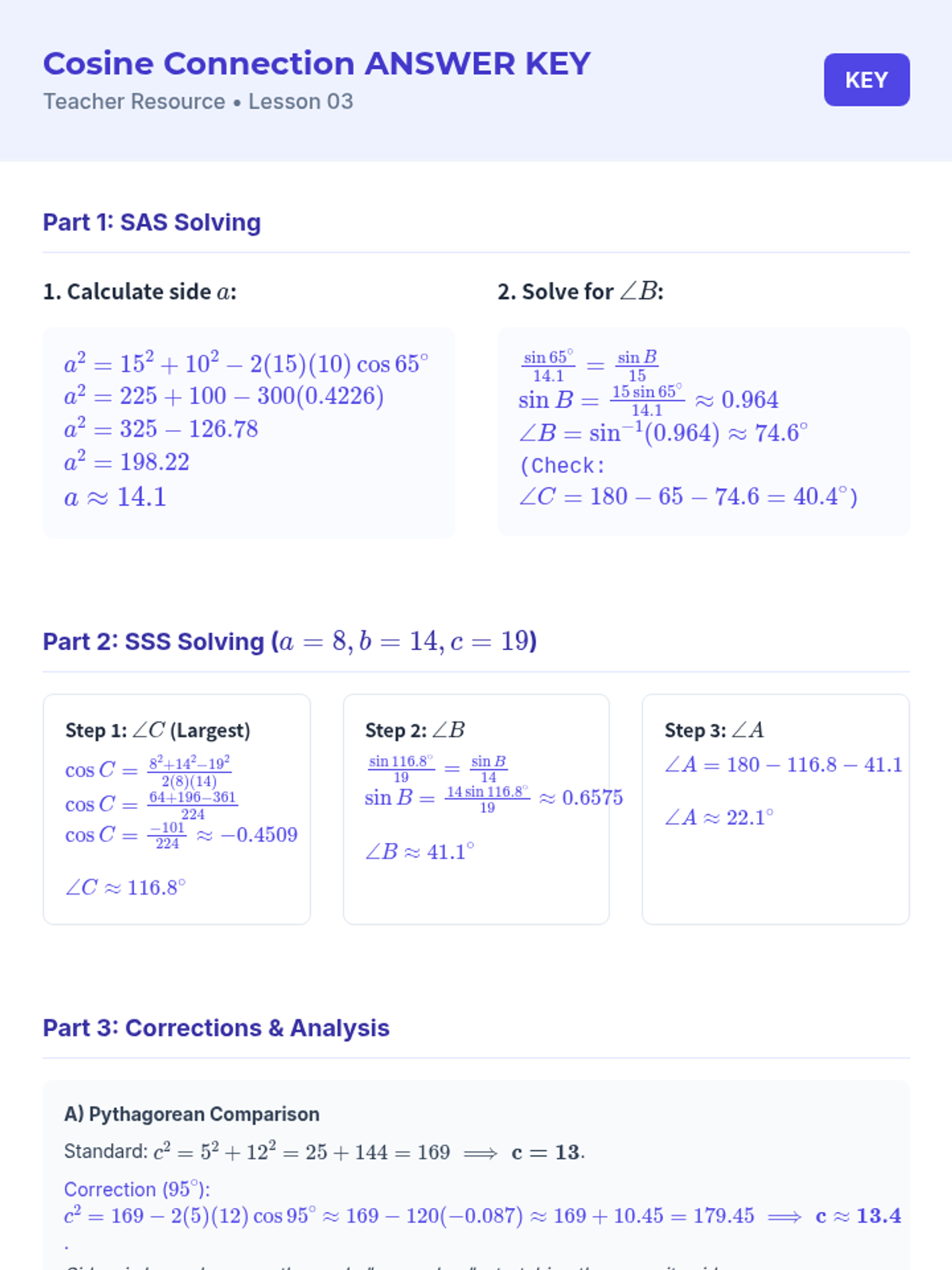 This sequence guides 11th-grade students through the derivation and application of the Law of Sines and the Law of Cosines. It focuses on solving oblique triangles, navigating the ambiguous case (SSA), and developing a strategic framework for selecting the correct trigonometric tool for any given triangle.