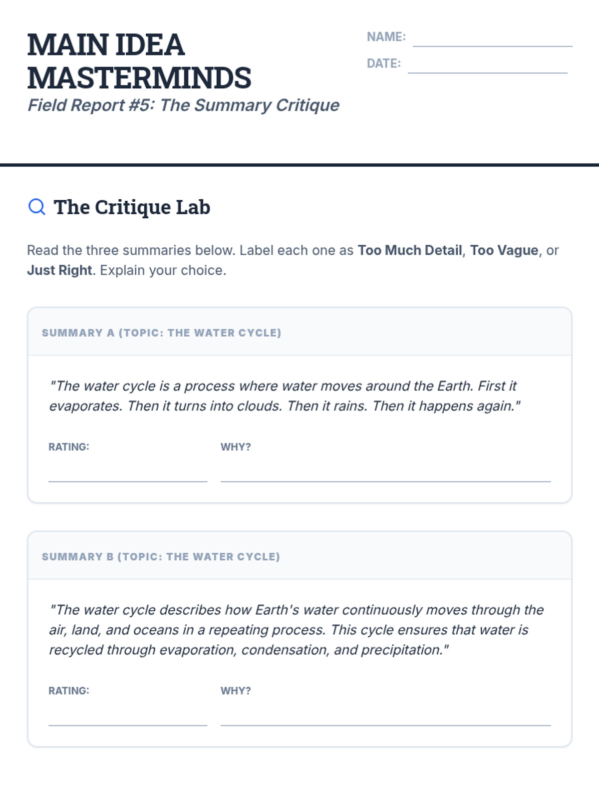 A comprehensive workshop-style sequence for 4th graders focused on mastering nonfiction comprehension. Students progress from distinguishing broad topics from specific main ideas to crafting objective, refined summaries of complex texts.