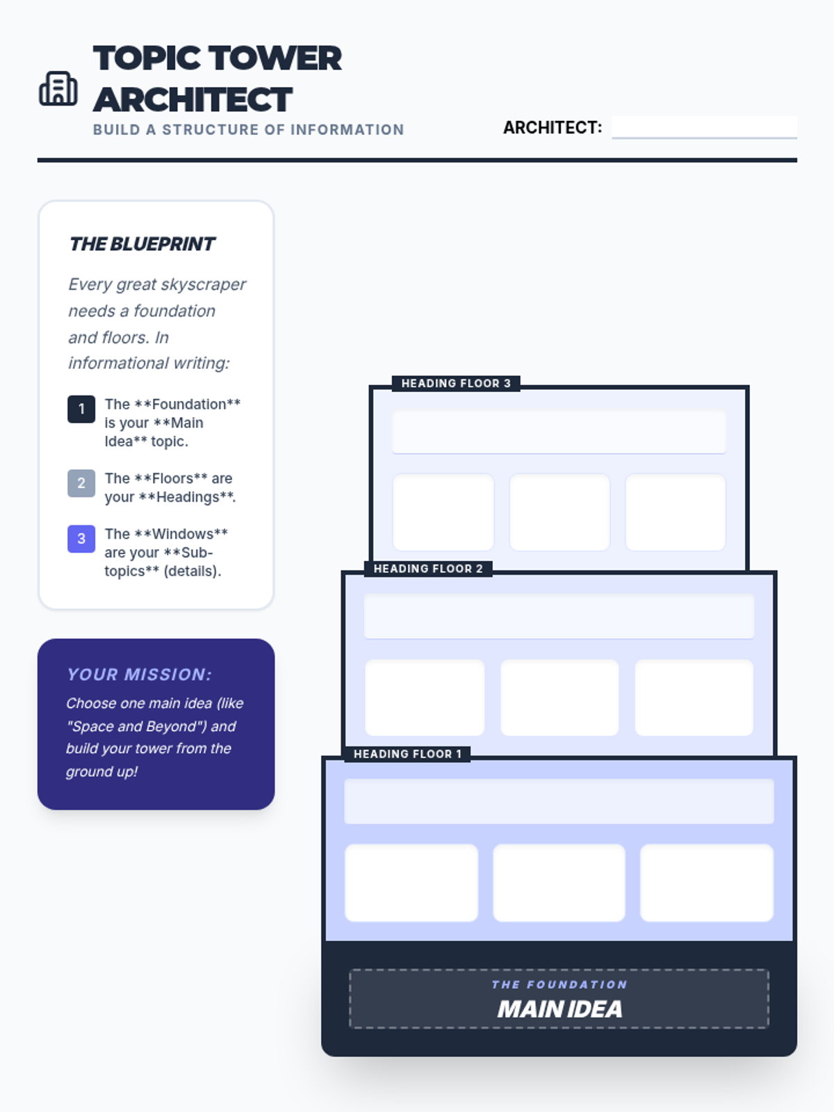 A comprehensive 2-week unit introducing students to the core components of paragraph writing, from topic sentences to concluding statements and transitions. The unit uses an architectural 'blueprint' theme to help students visualize the structure of their writing.
