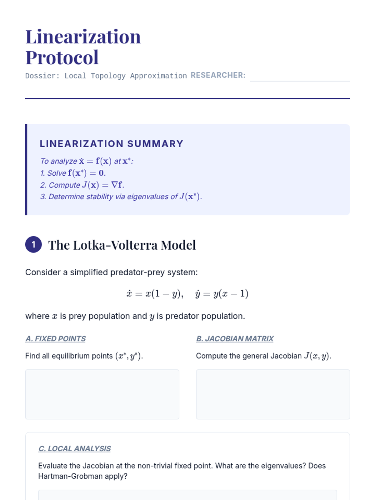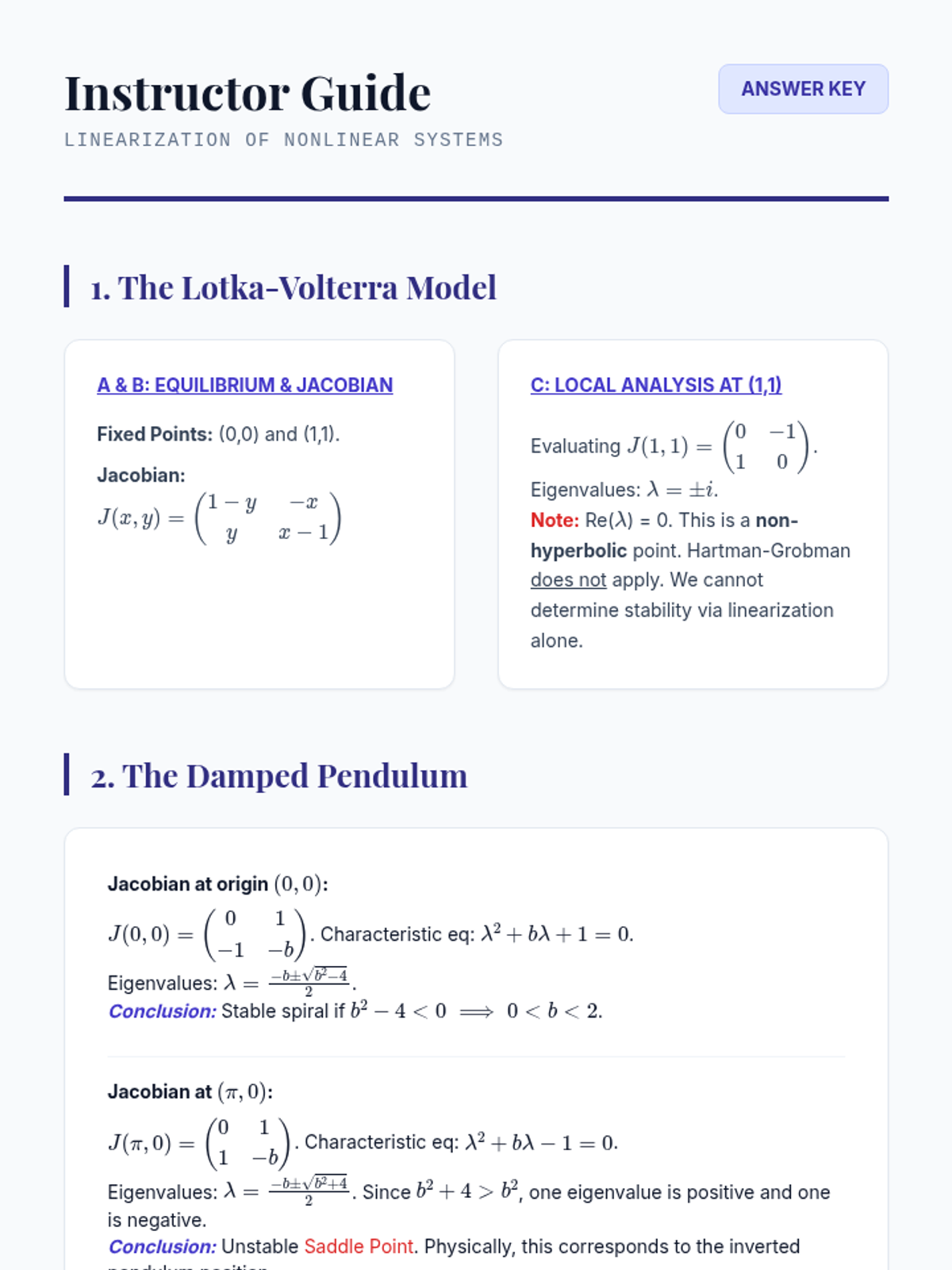 A graduate-level exploration of dynamical systems, focusing on the qualitative analysis of stability, phase portraits, and topological changes in nonlinear differential equations. Students move from linear classification to advanced stability proofs using Lyapunov functions and bifurcation theory.