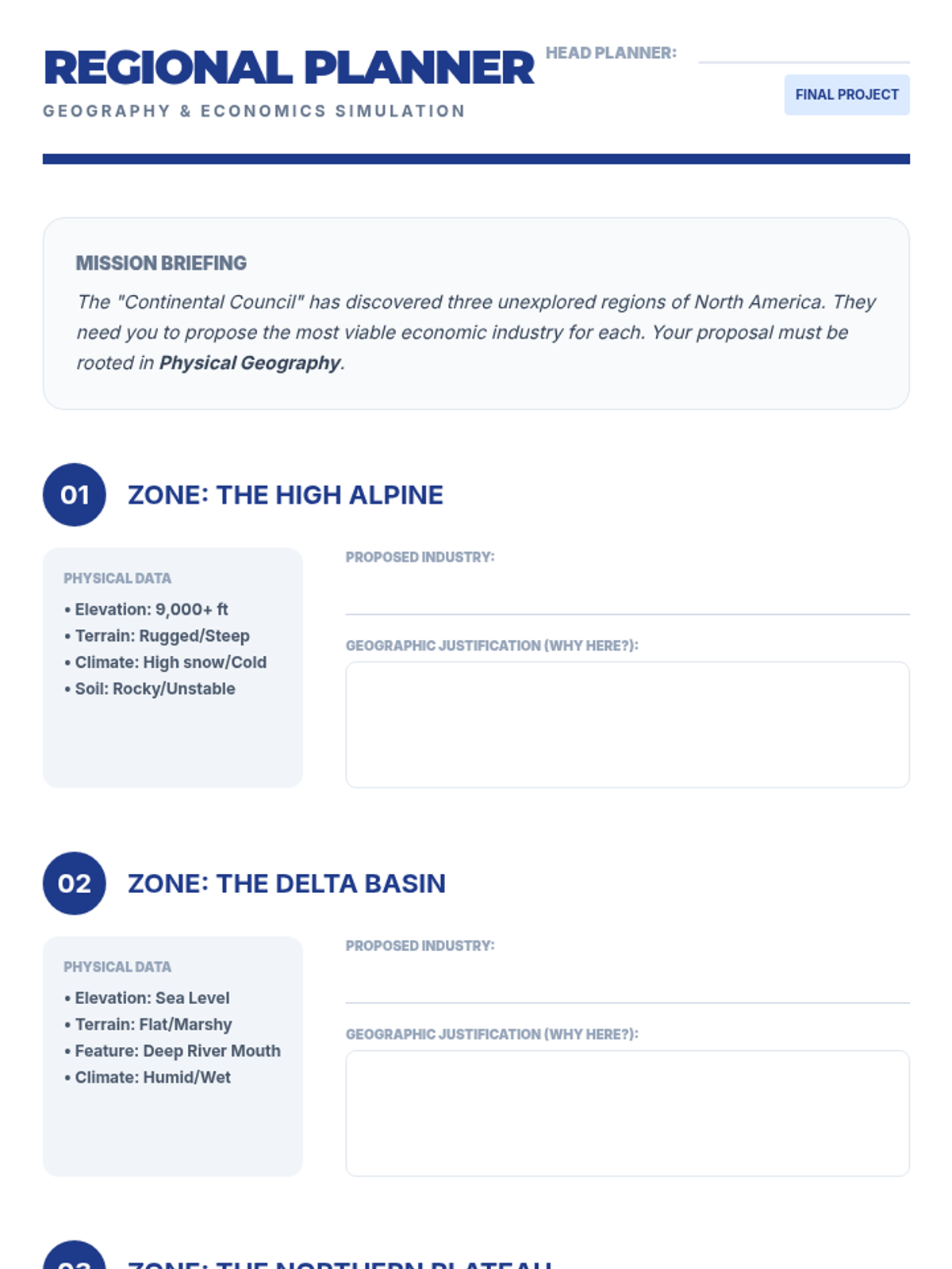 This sequence explores the physical geography of North America, investigating how major landforms, climate zones, and biomes influence human settlement and economic activity. Students will progress from mapping the continent's 'skeleton' to predicting industrial potential based on geographic data.