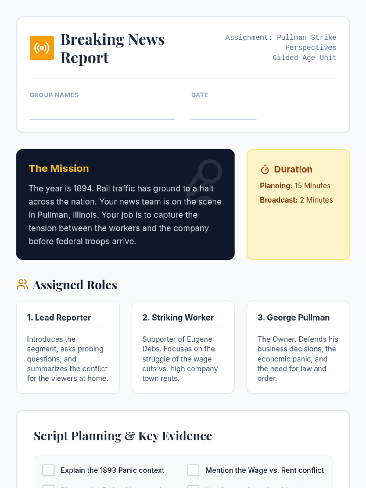A sequence exploring the Gilded Age, focusing on industrial growth, the rise of labor unions, and the struggle for workers' rights in the late 19th century.