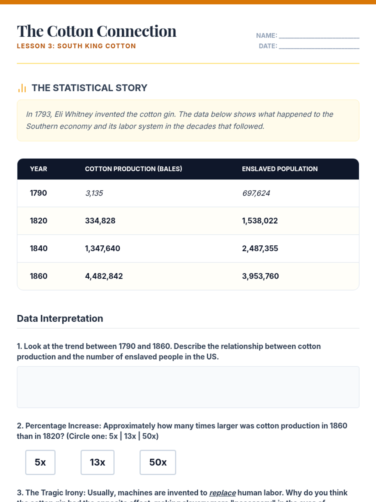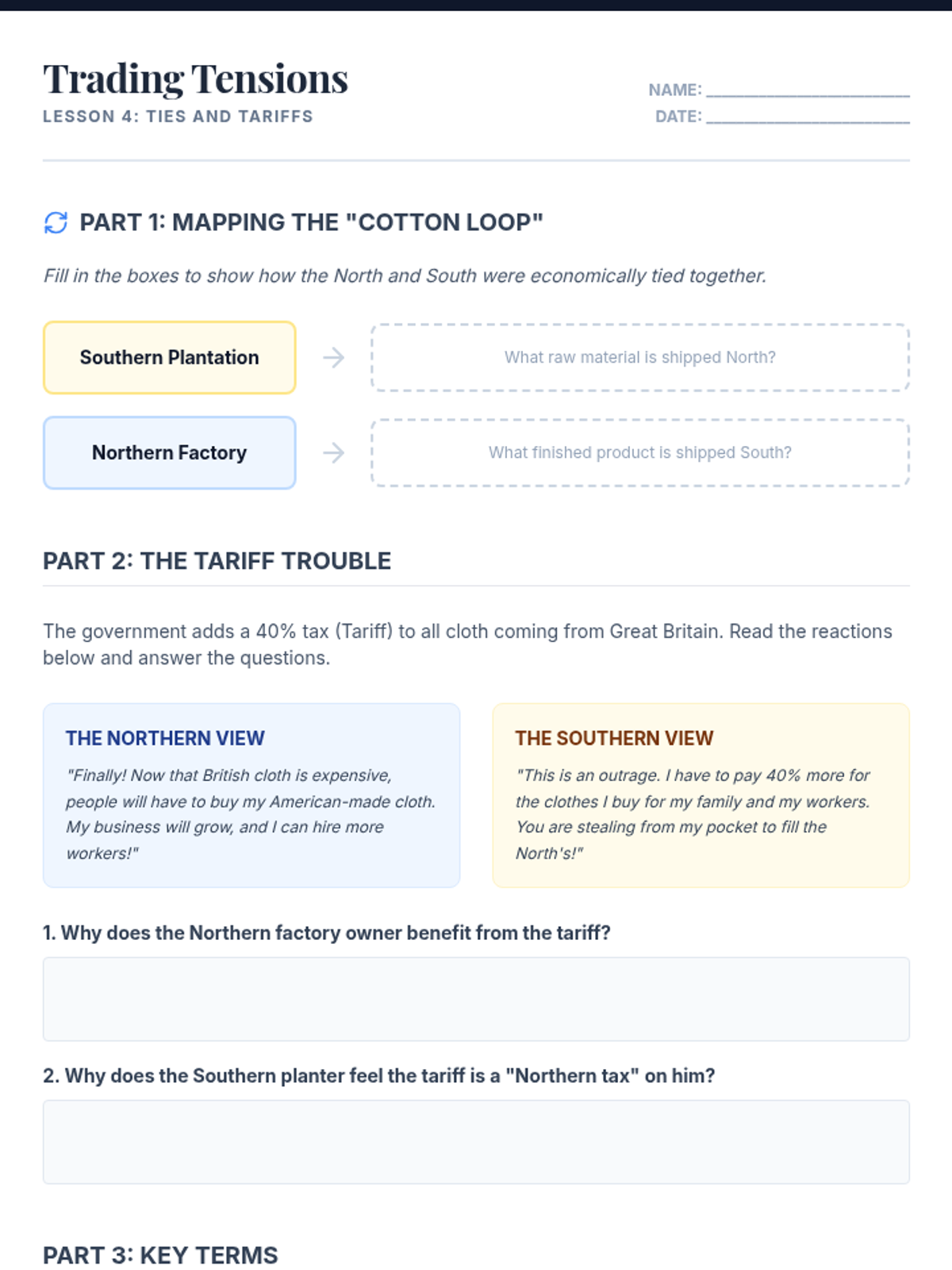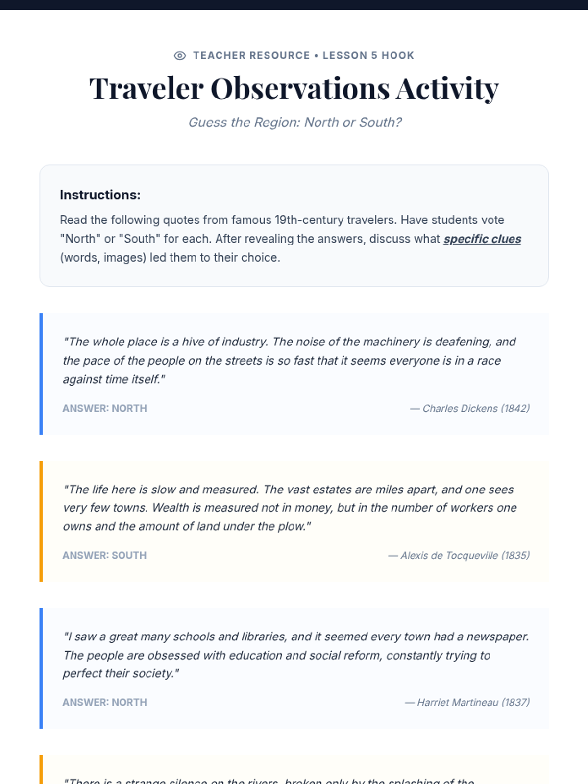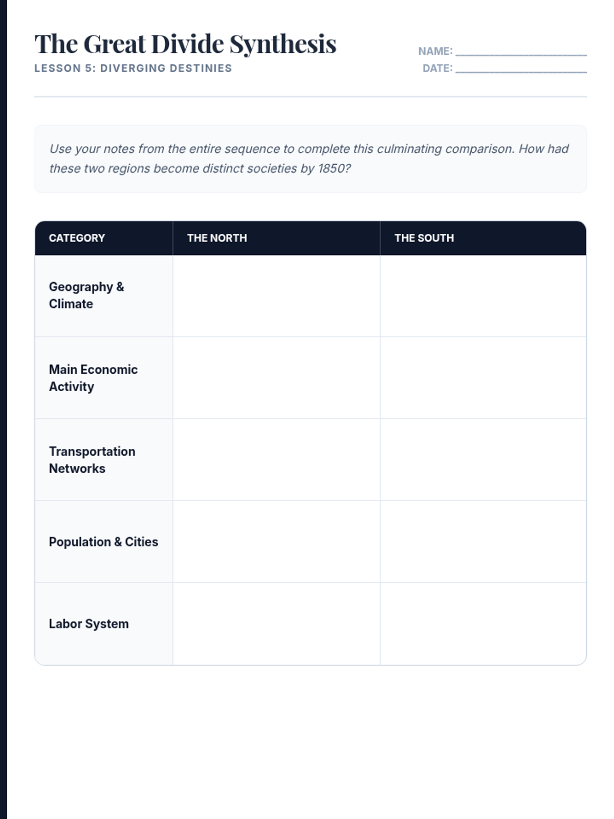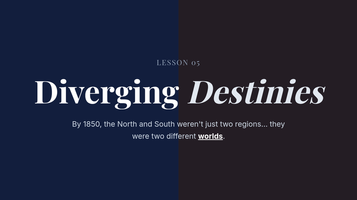 This sequence explores the economic and geographic divide between the North and South in the Antebellum period, analyzing how physical environment shaped industrial and agrarian identities, labor systems, and eventual sectional conflict.