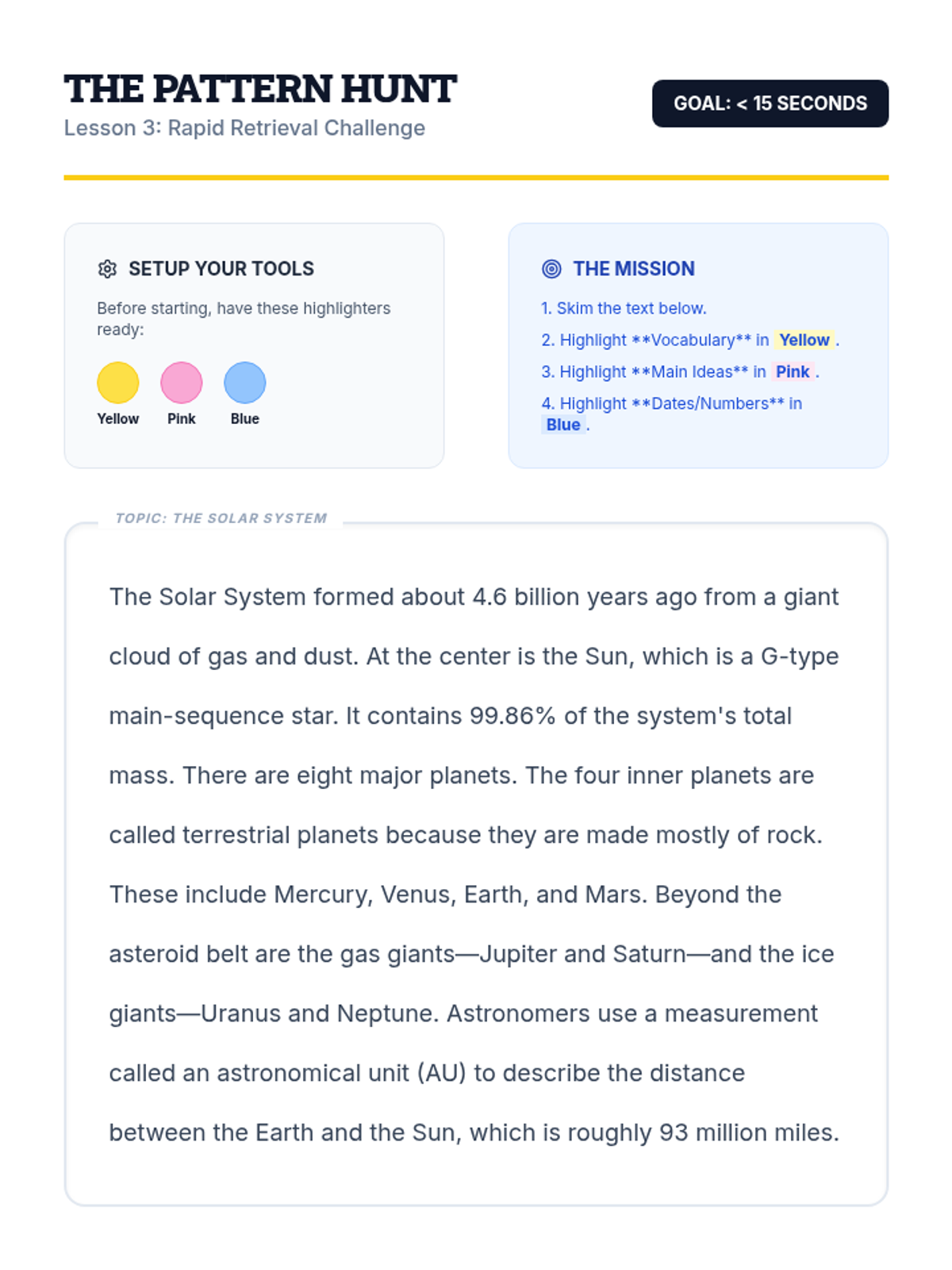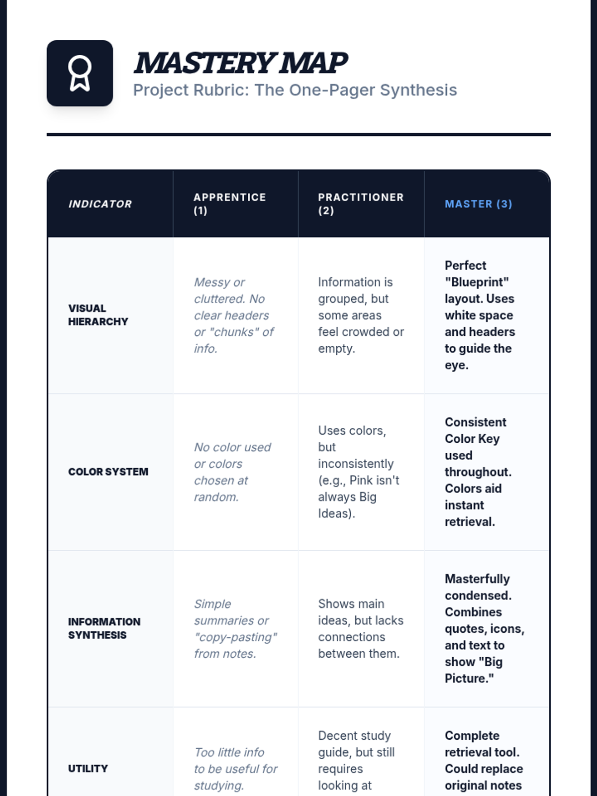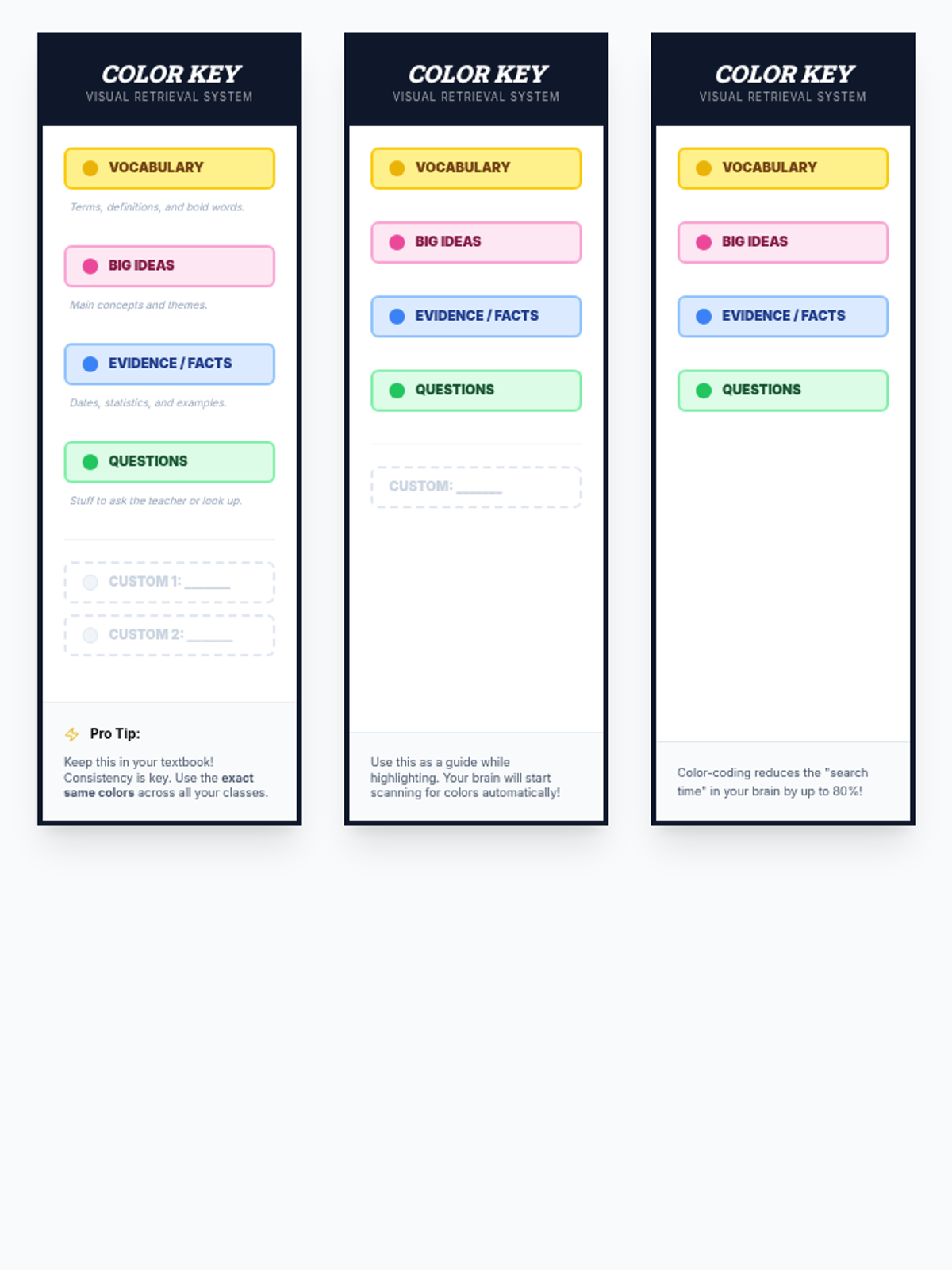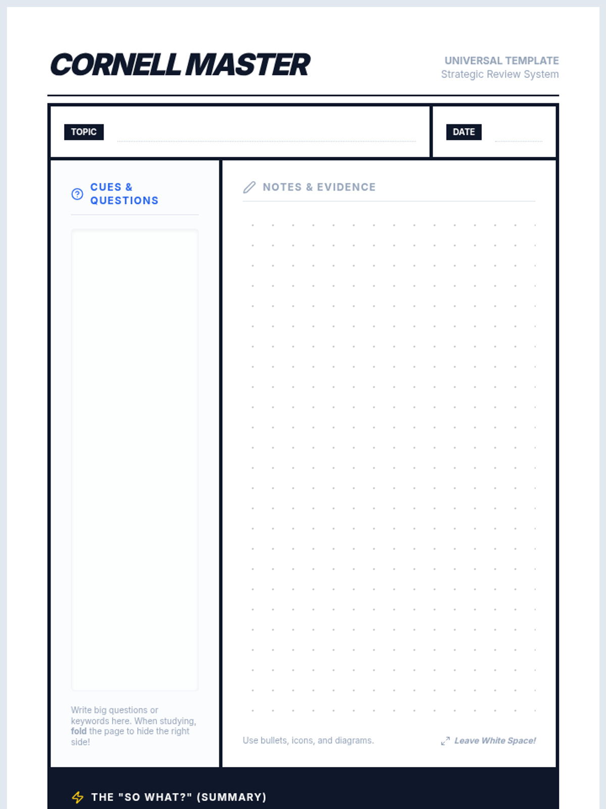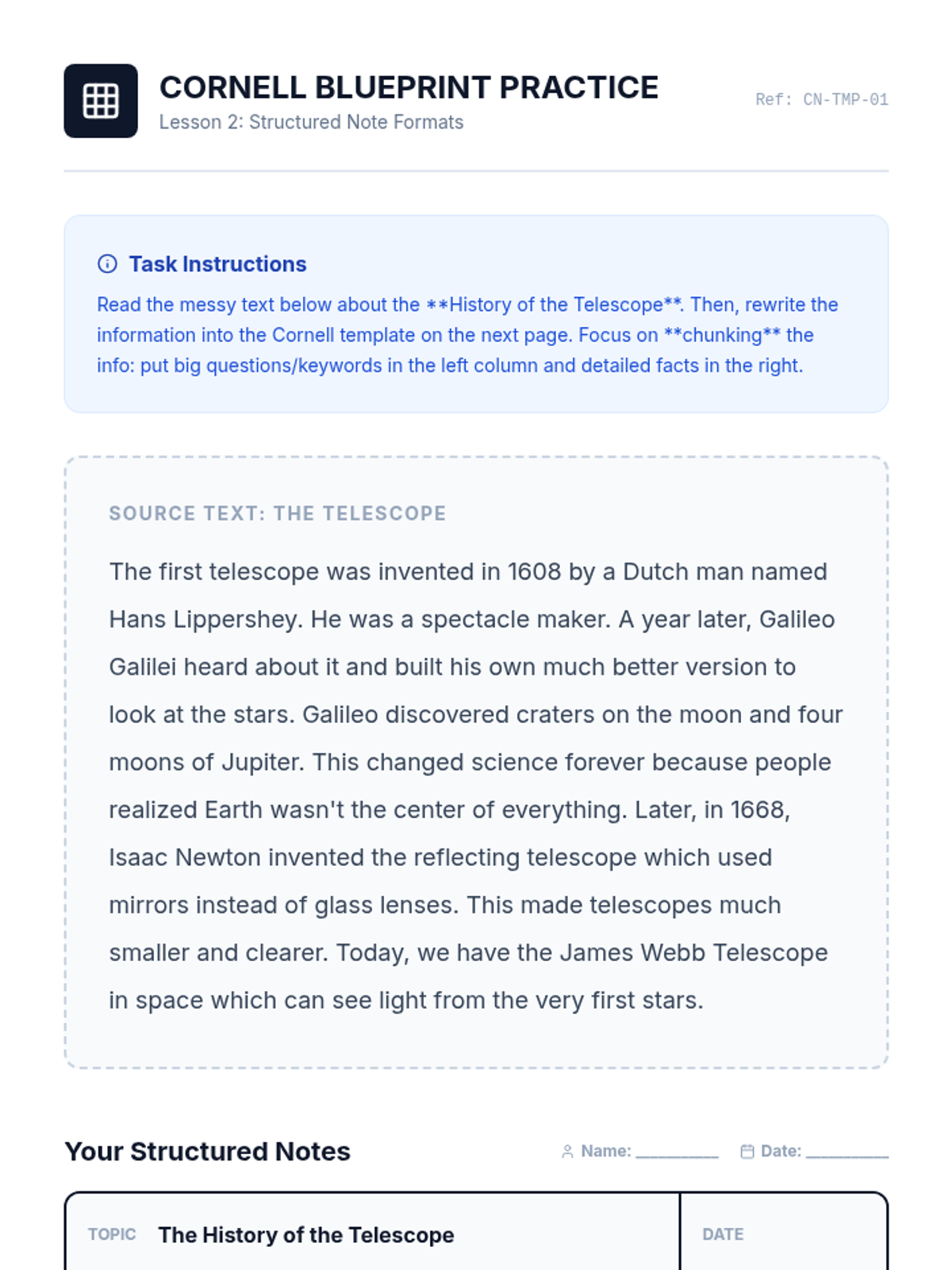 This sequence transforms note-taking from a passive task into an active working memory support system. Students explore cognitive load, implement structured layouts like the Cornell method, utilize color-coding for categorization, and schedule review using spaced repetition.