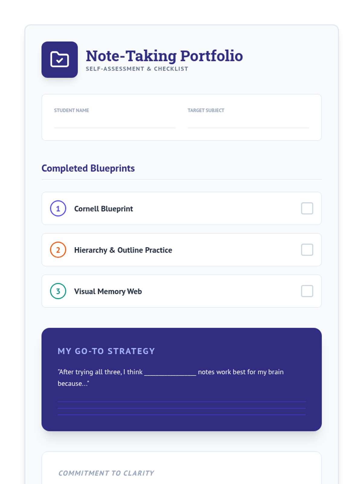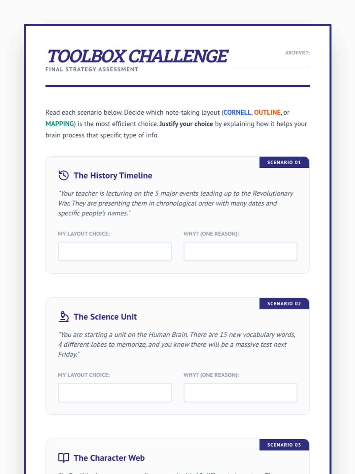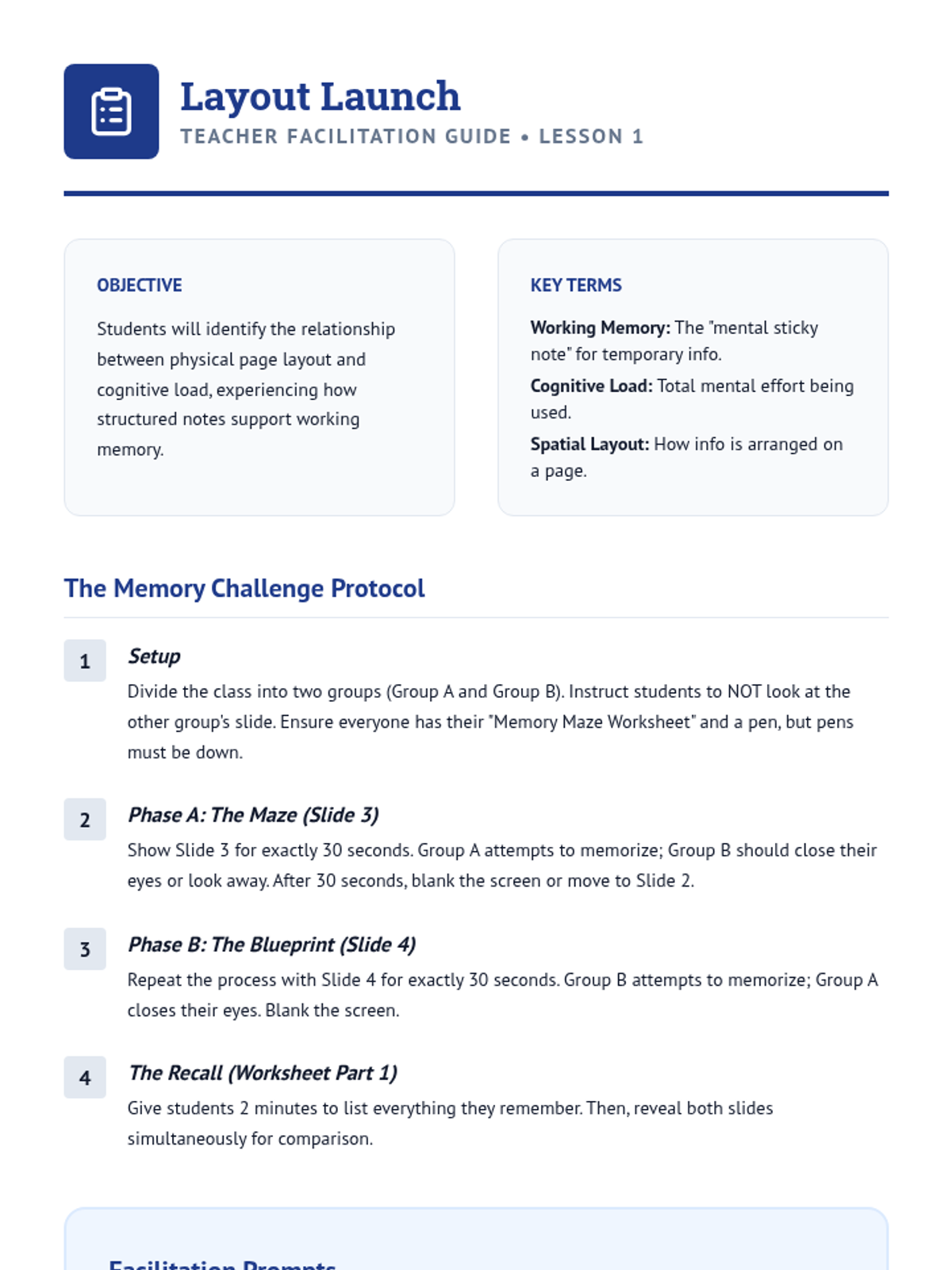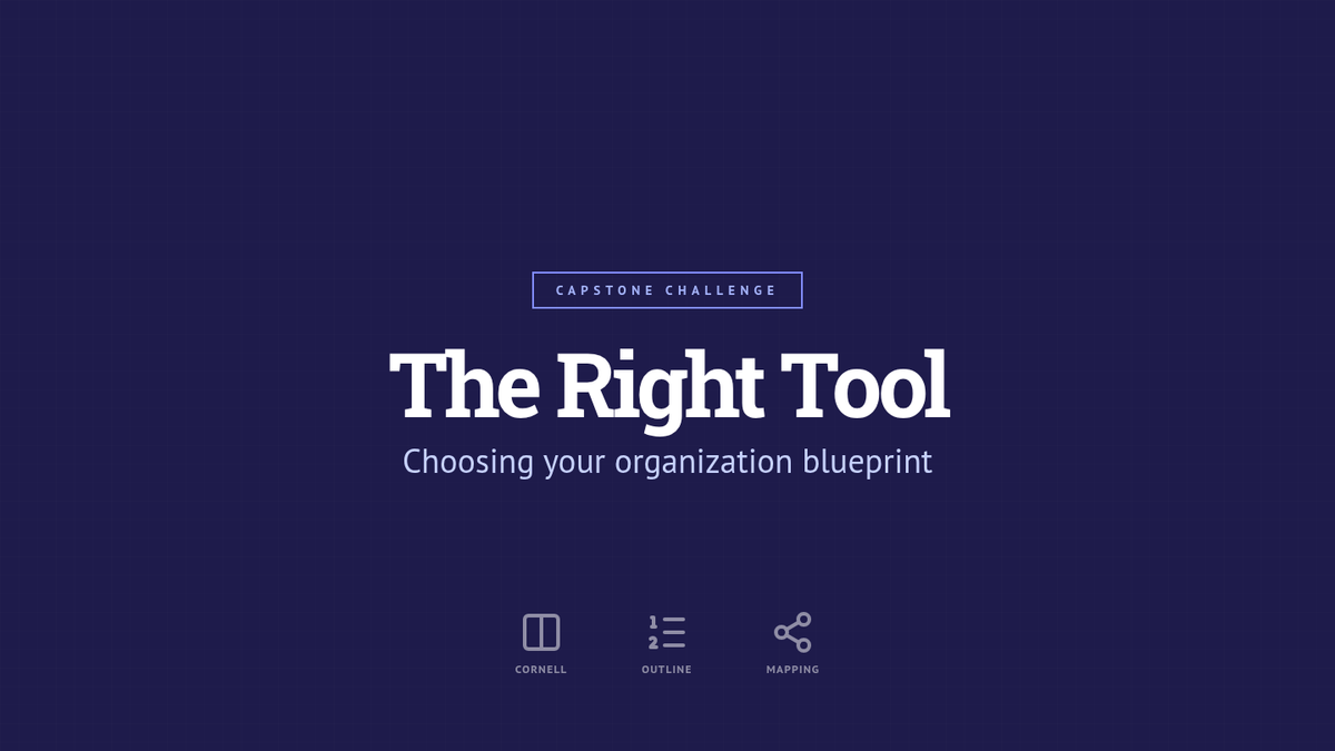 A 5-lesson series for 7th-grade students focused on using spatial organization and layout techniques to reduce cognitive load and improve working memory during note-taking. Students learn to master Cornell, Outlining, and Mapping techniques to create clear blueprints for their learning.