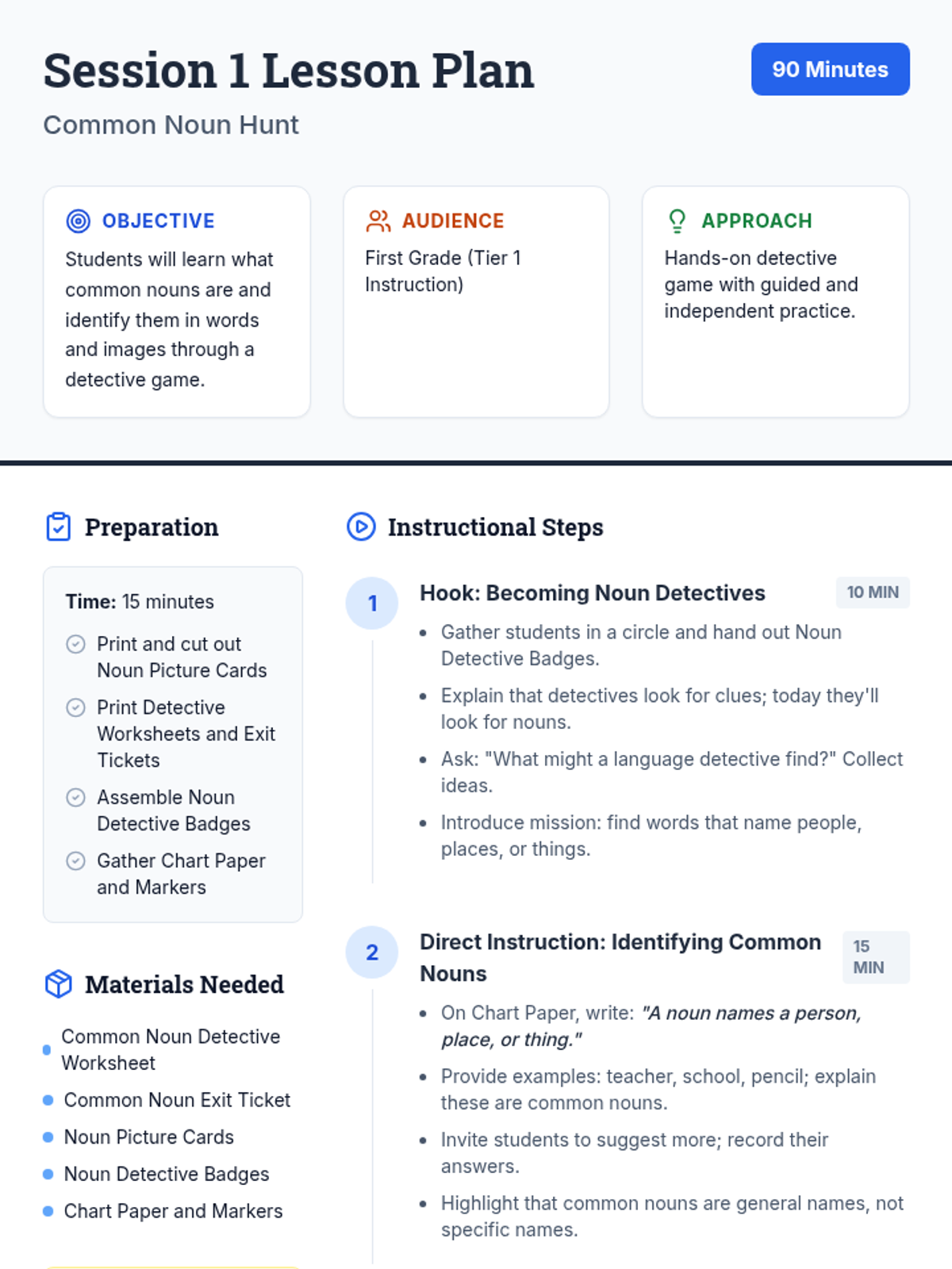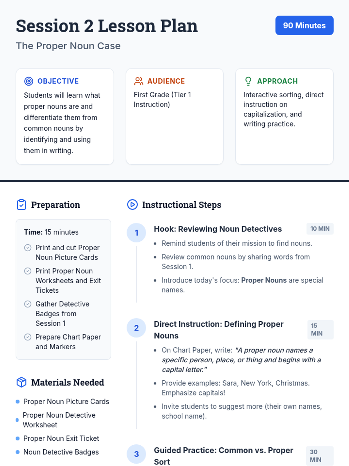 A comprehensive 5-day phonics curriculum where students become 'Phonics Detectives' to solve mysteries involving CVC words, blends, digraphs, vowel teams, and multi-syllabic words. Includes teacher guides, slides, student case files, and hands-on center activities.
