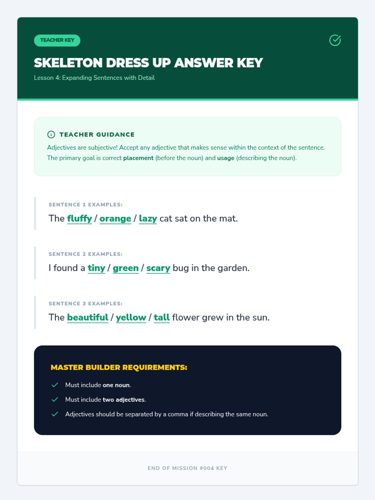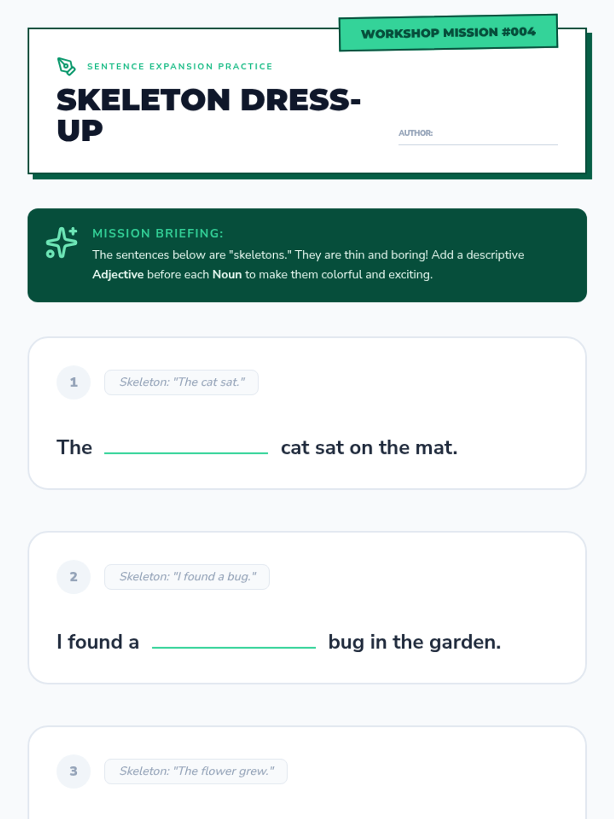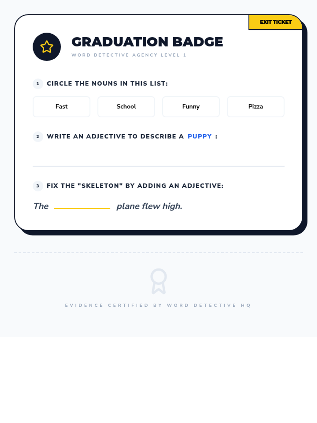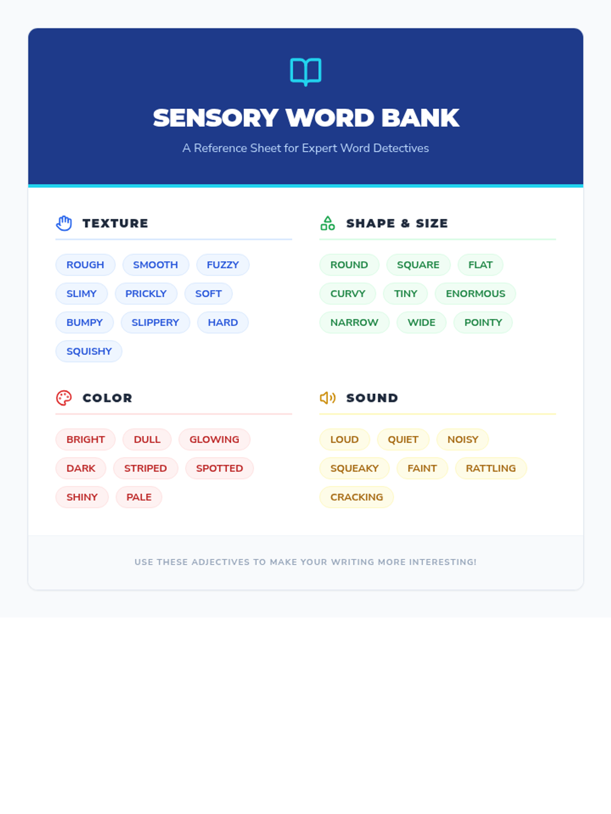 An inquiry-based sequence for 2nd-grade students to master nouns and adjectives through categorization, sensory exploration, and sentence expansion. Students act as 'Word Detectives' to identify naming words and describe them with precision.
