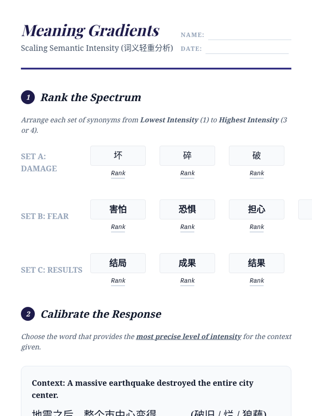 This sequence guides advanced Mandarin learners through the subtle art of synonym discrimination. Students explore collocations, emotional connotations, semantic intensity, and register shifts to achieve native-like precision in their writing and speech.