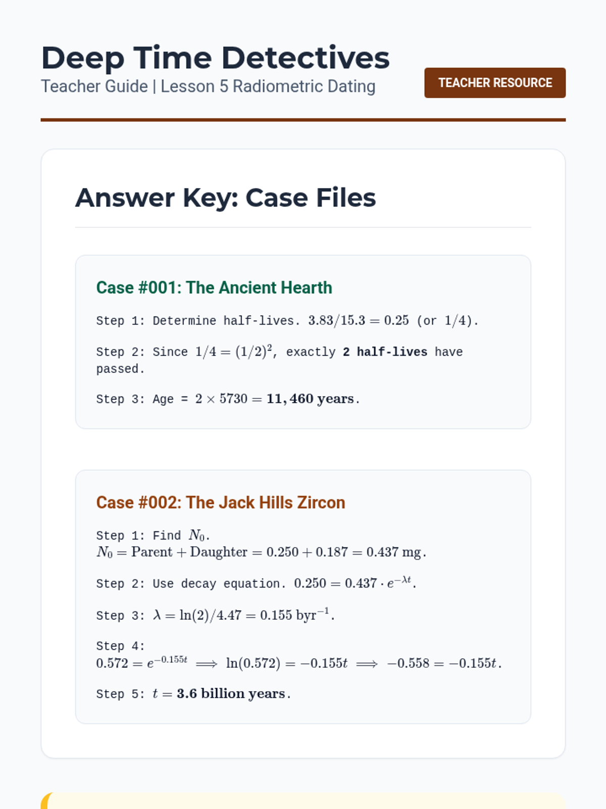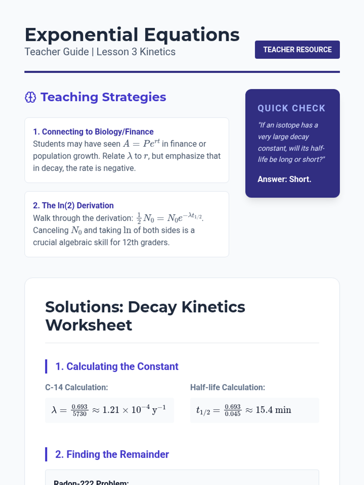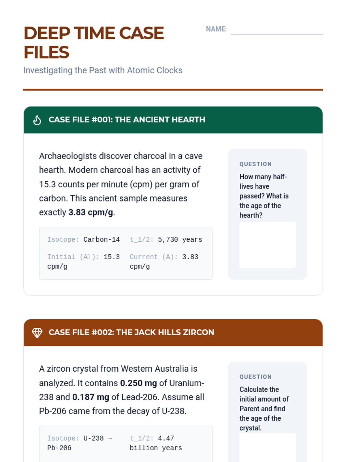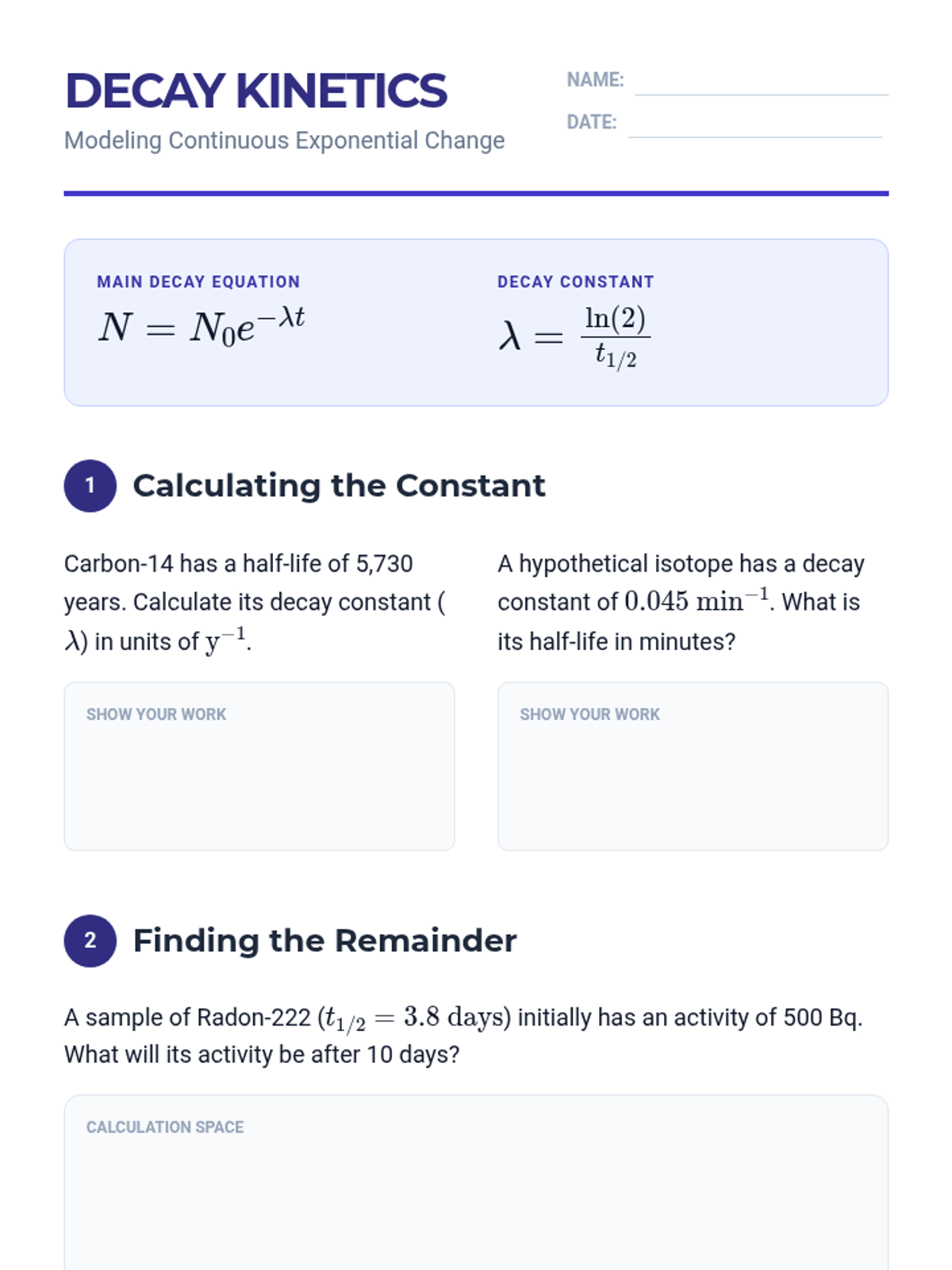 An advanced physics sequence for 12th-grade students focusing on the mathematical modeling of radioactive decay, from atomic mechanisms to radiometric dating. Students explore alpha, beta, and gamma decay, simulate randomness, derive exponential laws, and apply these concepts to determine the age of geological samples.