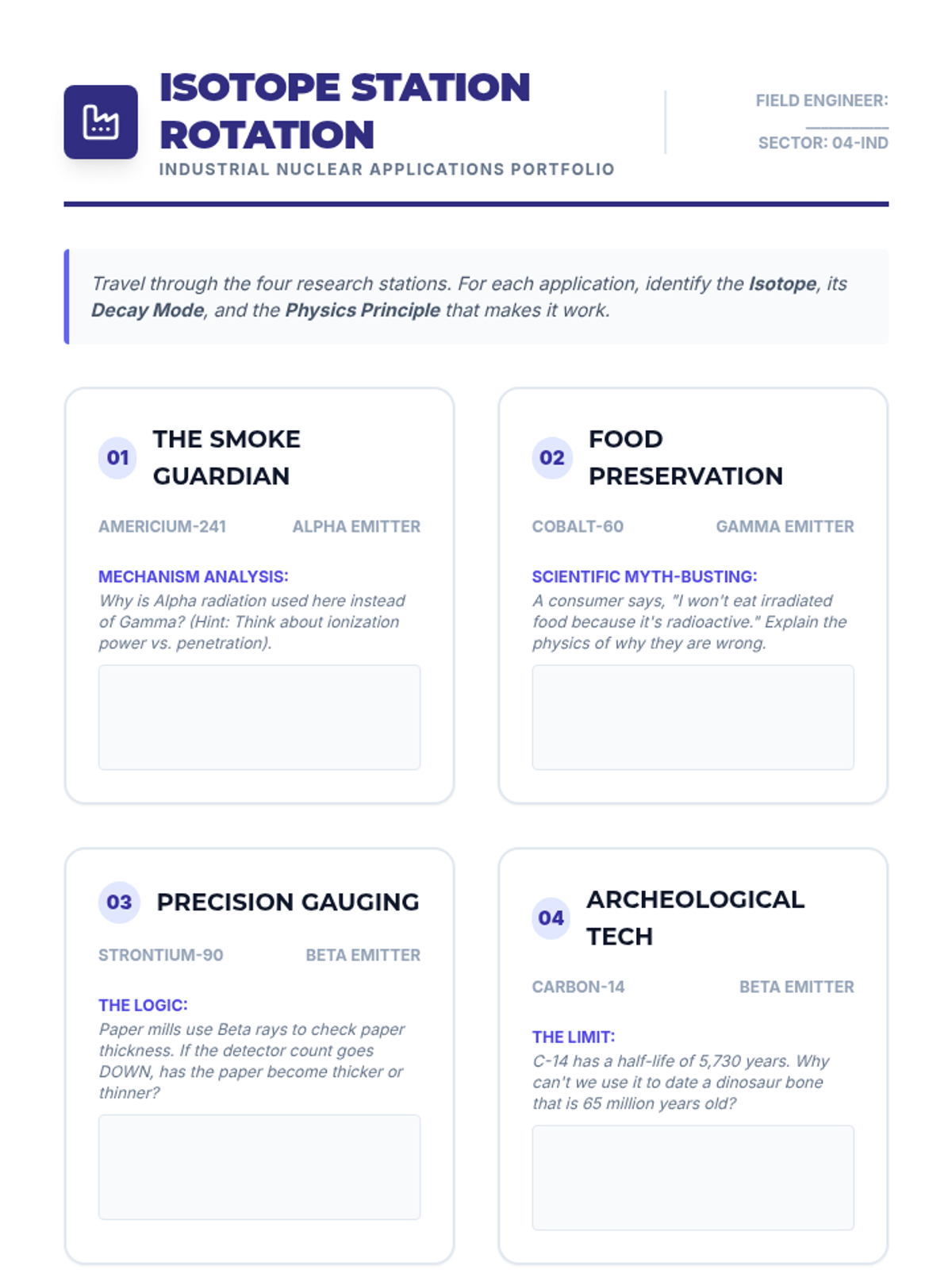 A comprehensive unit for 9th-grade physics students exploring how nuclear radiation is harnessed in medicine and industry. Students investigate ionization, DNA damage, medical tracers, radiotherapy, and everyday industrial uses of radioactive isotopes.