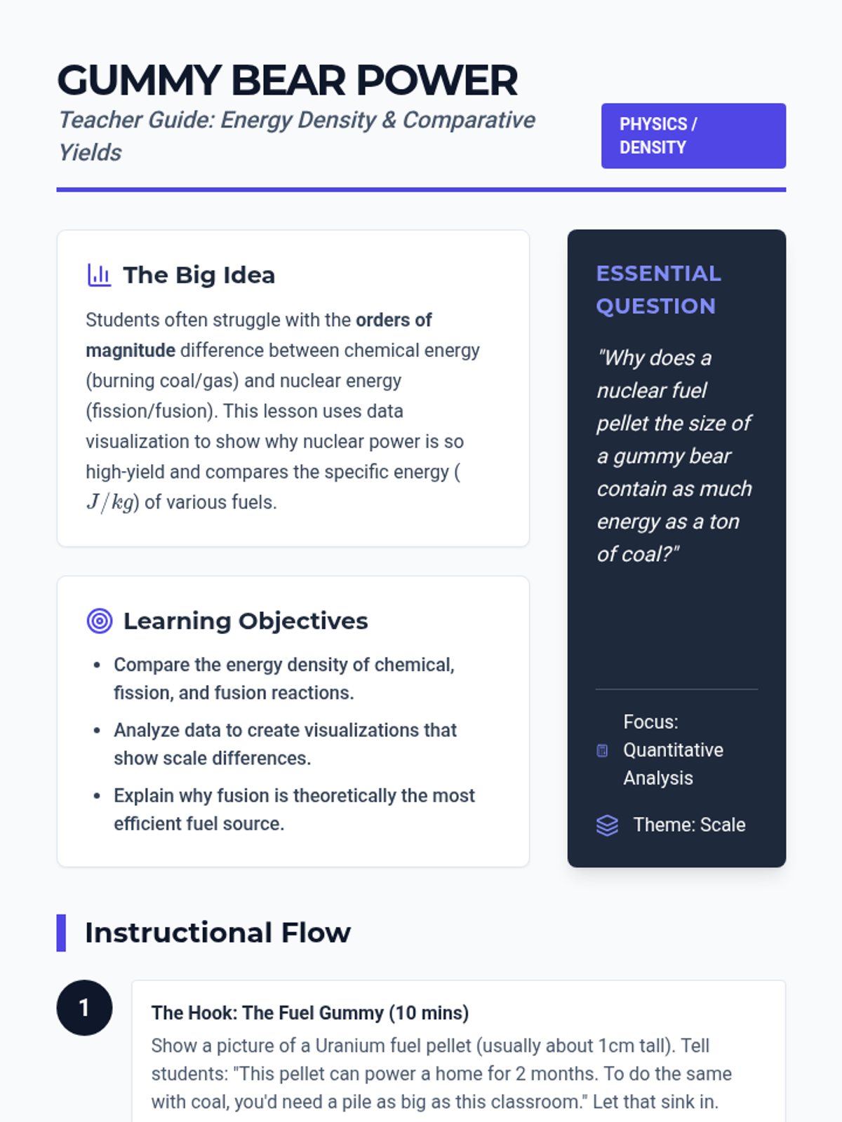 A comprehensive 9th-grade physics unit exploring the relationship between mass and energy, the mechanics of fission and fusion, and the future of nuclear energy. Students will calculate mass defect, diagram chain reactions, and evaluate the engineering challenges of fusion power.