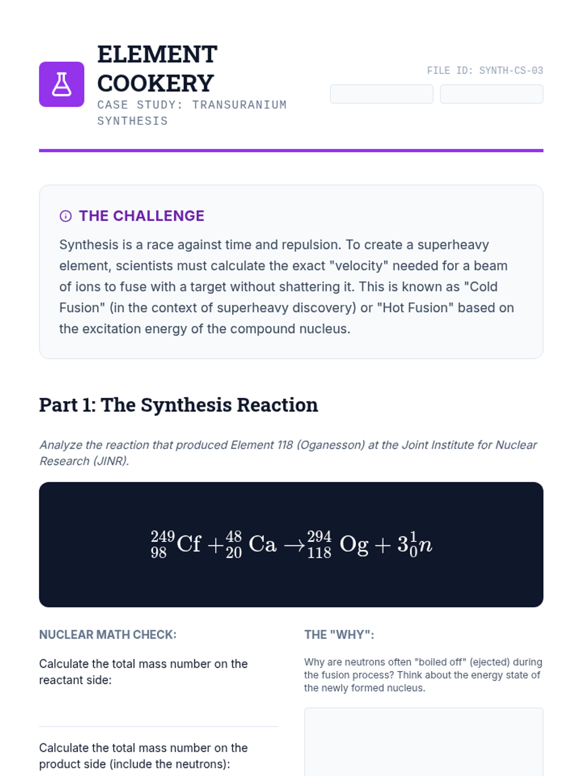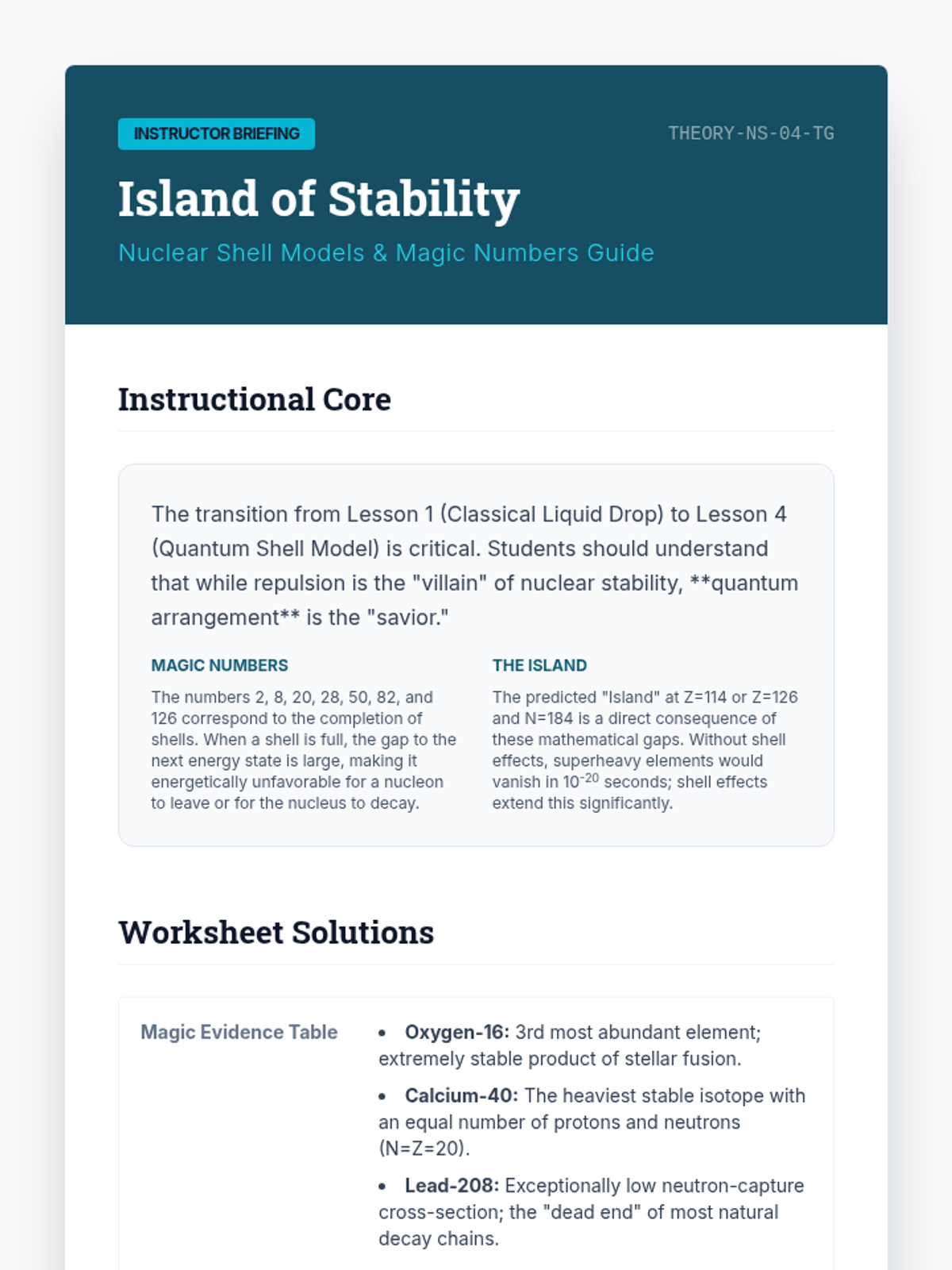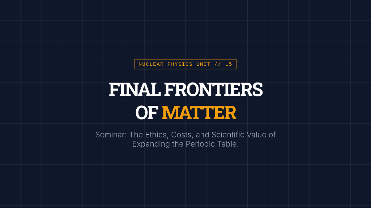 This sequence explores the physical limits of the periodic table, nuclear stability, and the synthesis of transuranium elements. Students analyze nuclear forces, decay mechanisms, and the theoretical 'Island of Stability' to understand the boundaries of matter.