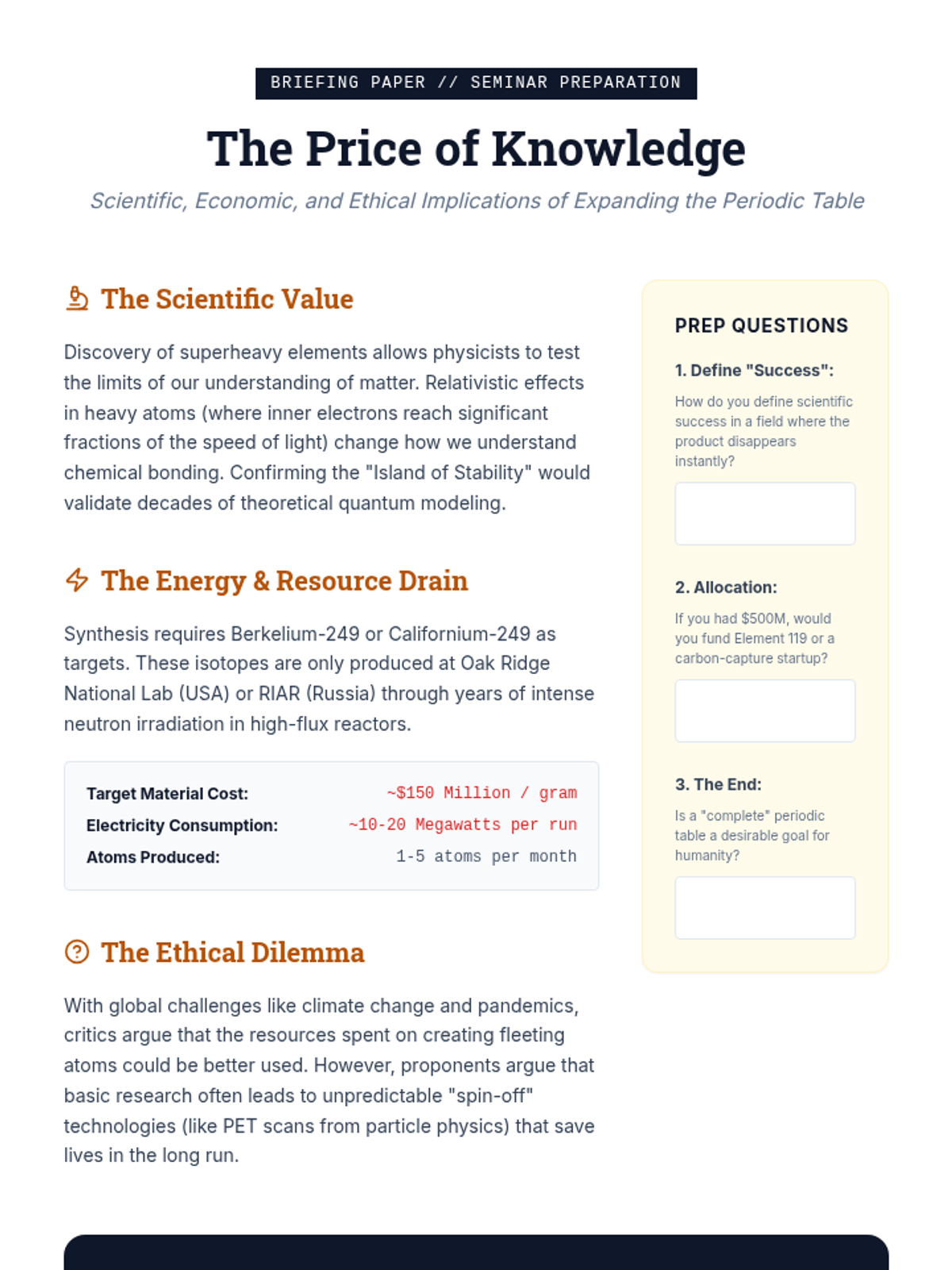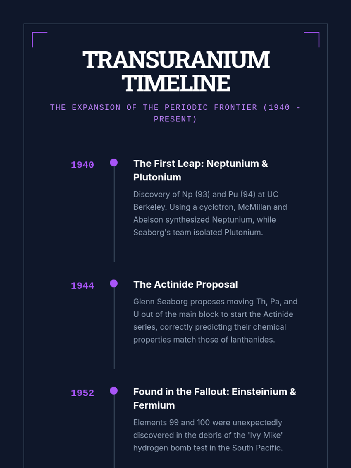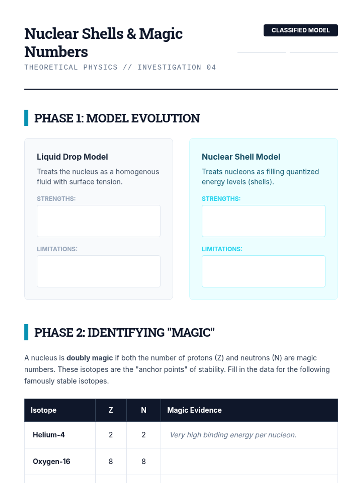 This sequence explores the physical limits of the periodic table, nuclear stability, and the synthesis of transuranium elements. Students analyze nuclear forces, decay mechanisms, and the theoretical 'Island of Stability' to understand the boundaries of matter.