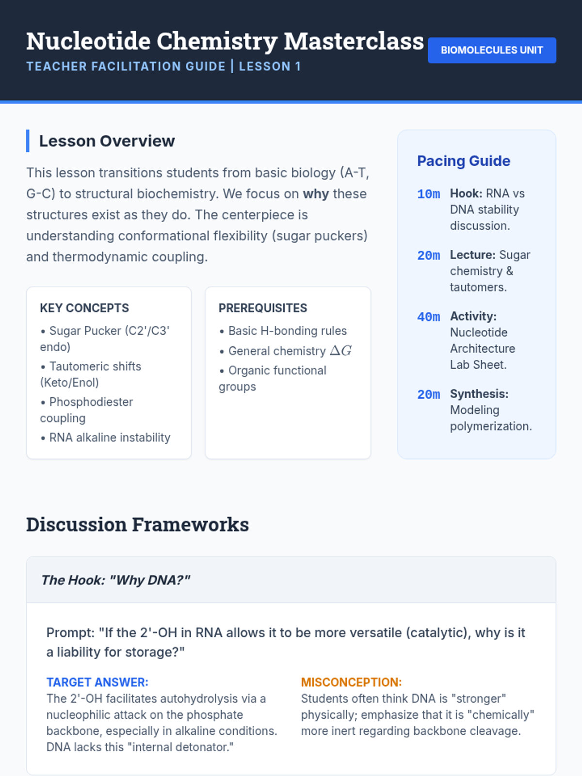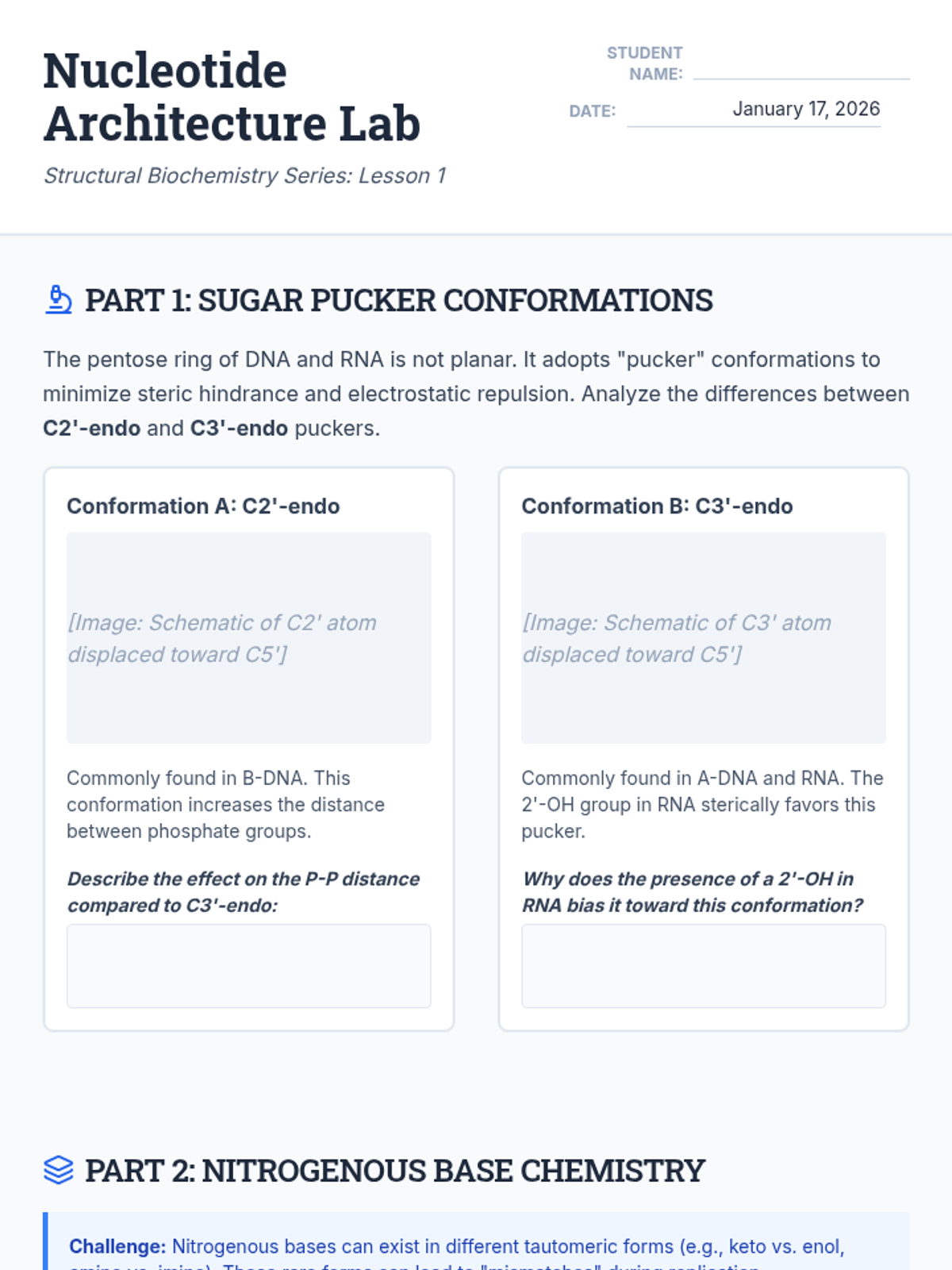 A comprehensive undergraduate sequence exploring the chemical and topological properties of nucleic acids, from basic nucleotide chemistry to advanced sequencing and synthetic applications. Students will analyze structural constraints, protein-DNA interactions, and the catalytic potential of RNA.