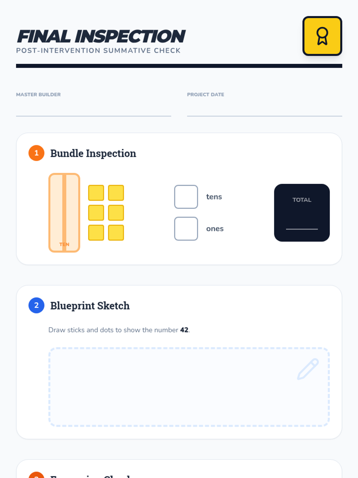A Tier 2 intervention sequence designed for 1st-grade students struggling with place value concepts. This sequence follows the CRA (Concrete-Representational-Abstract) progression to build a deep understanding of tens and ones.