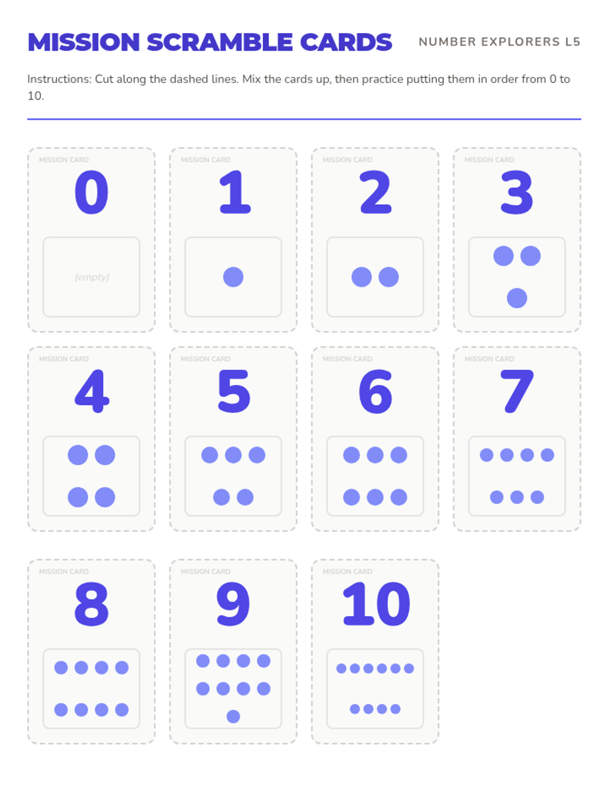 This sequence strengthens foundational number sense through hands-on workshops and visual exploration of numbers zero through ten. Students move from basic one-to-one correspondence to recognizing numeral patterns and representing quantities with manipulatives.