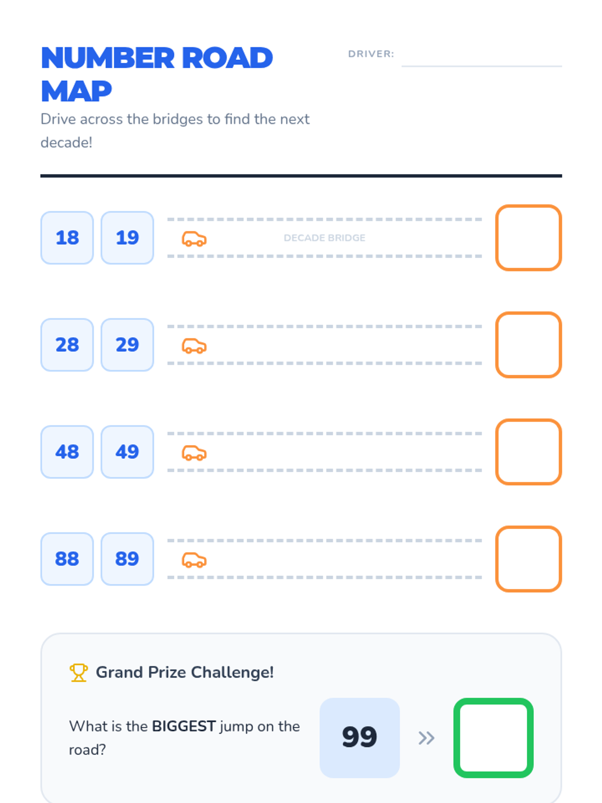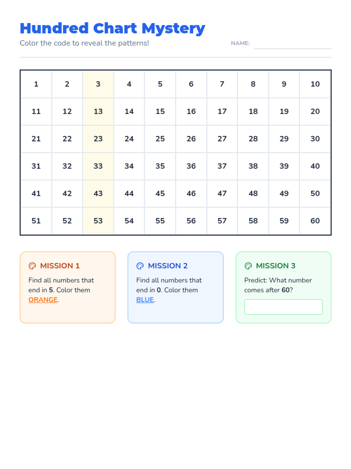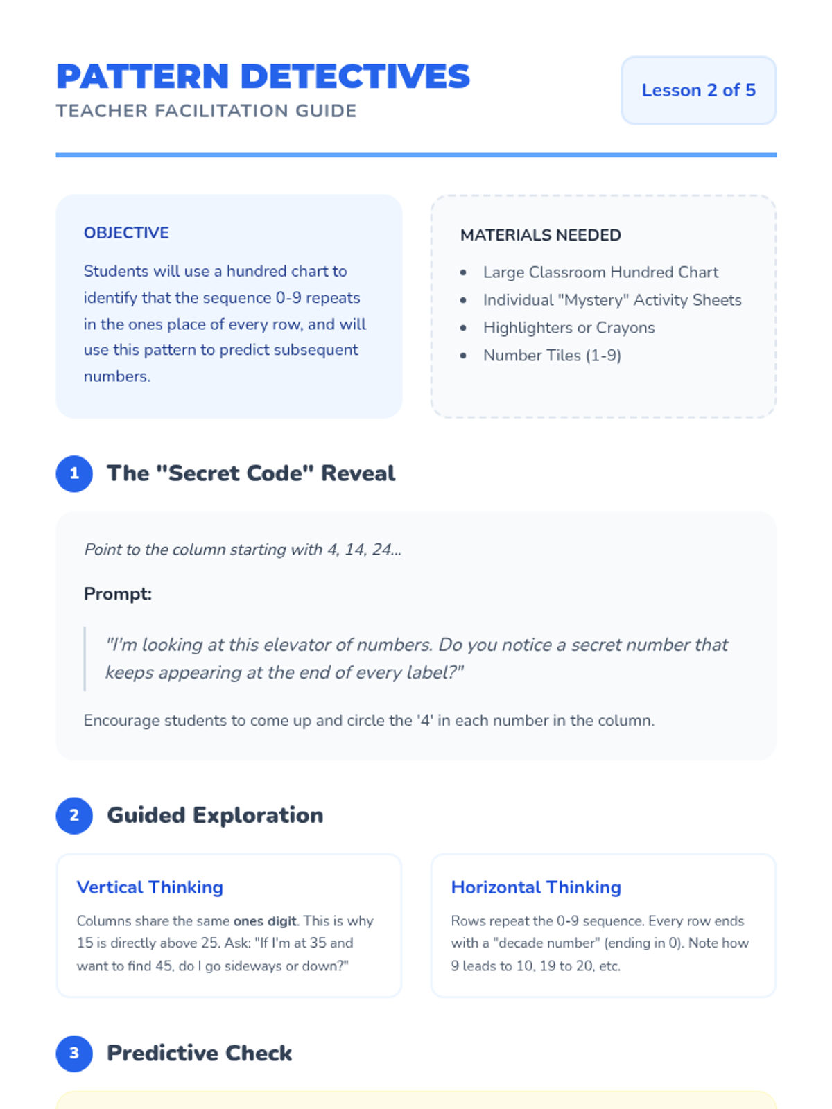 A Kindergarten math sequence focused on building oral counting fluency from 1 to 100 and backward from 20. Students explore number patterns using the hundred chart, master tricky teen numbers, and navigate decade transitions through games and movement.