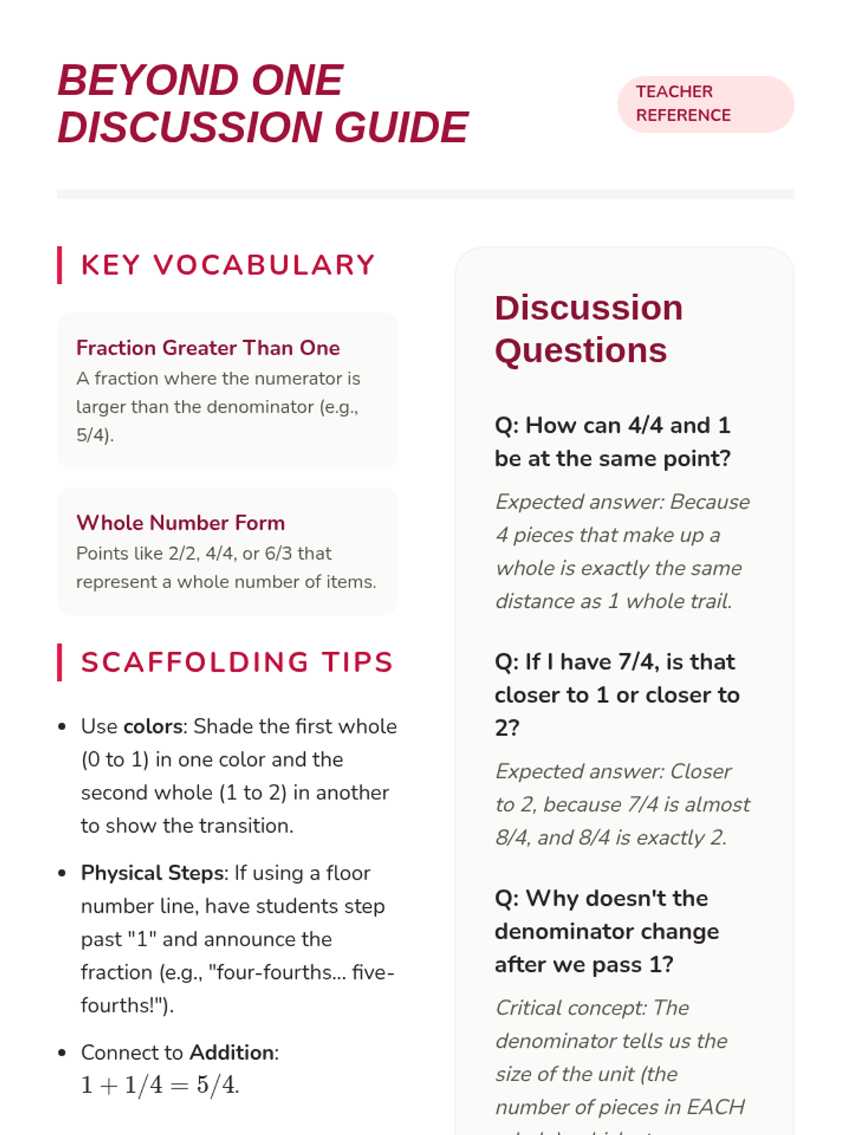 Students transition from area models to linear models, representing fractions as specific locations and distances on a number line. The sequence progresses from physical paper folding to abstract plotting and real-world measurement beyond one whole.