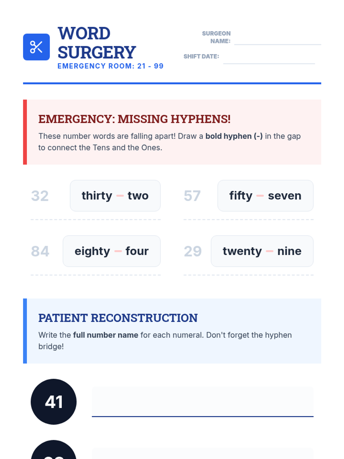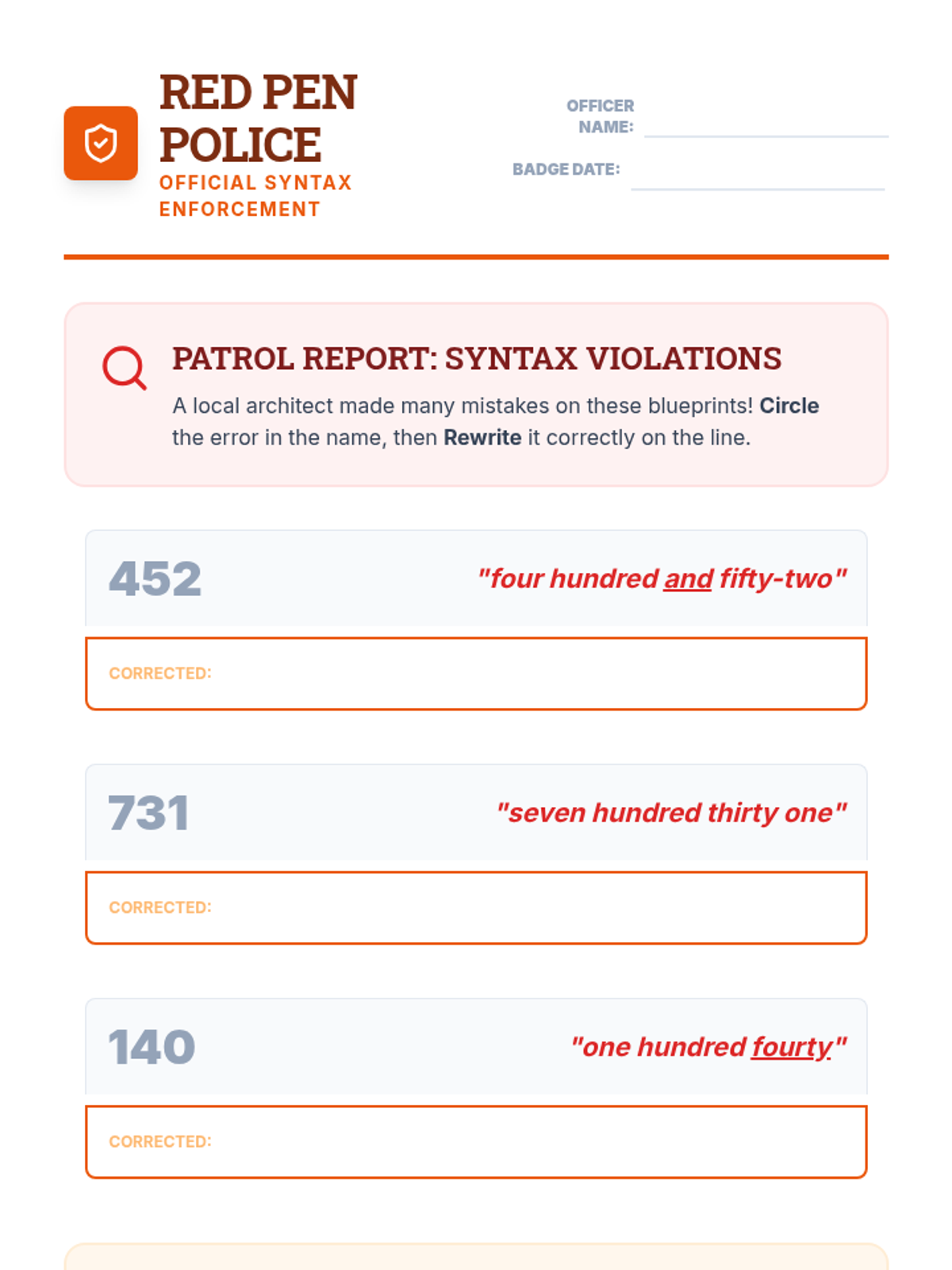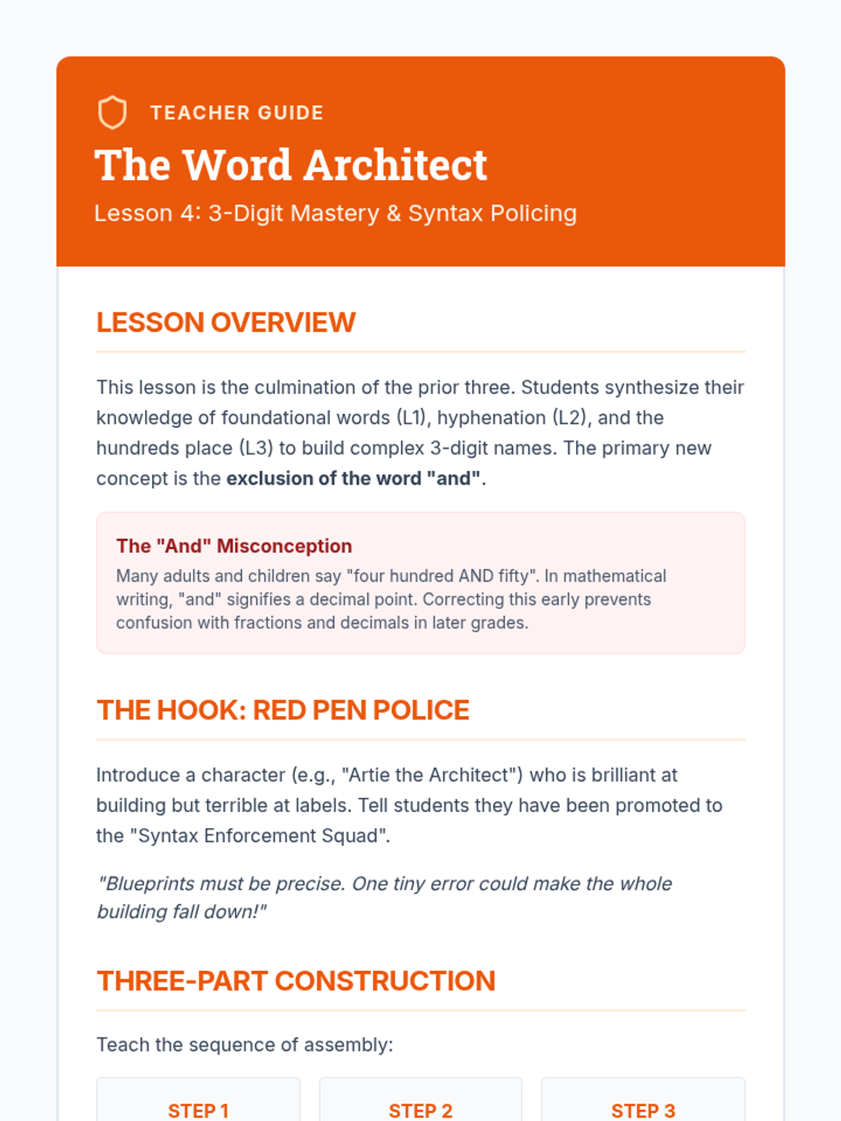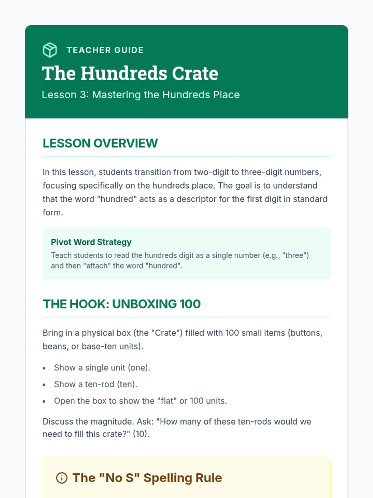 This sequence guides 2nd-grade students through the process of reading and writing number names up to 1,000, focusing on tricky spellings, hyphenation rules, and correct syntax for three-digit numbers.