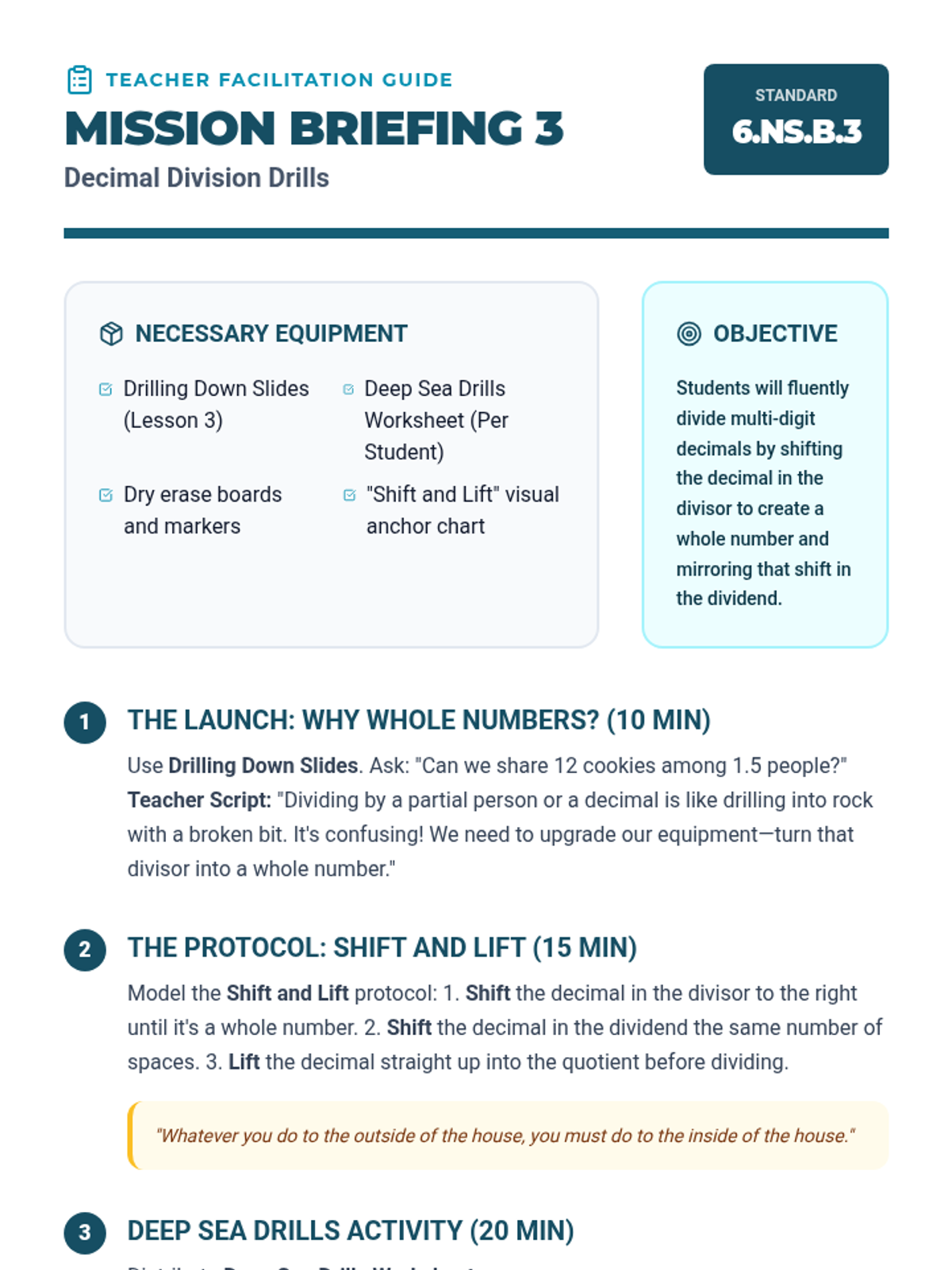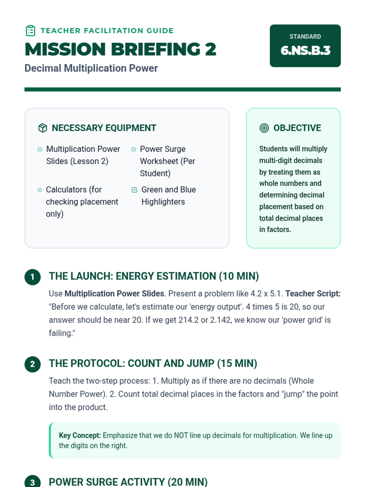 A 12-lesson Tier 2 intervention sequence for 6th-grade students focused on computational fluency with decimals and the system of rational numbers. The sequence follows the All Learner Network High Leverage Concepts, moving from multi-digit decimal operations to complex coordinate plane navigation.