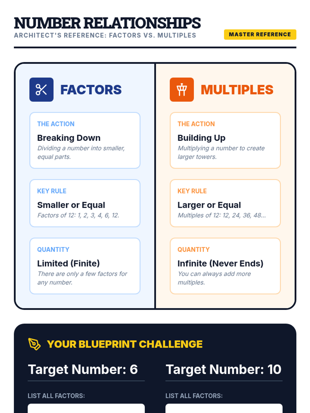 A comprehensive 4th-grade unit exploring the building blocks of numbers through factors, multiples, prime, and composite classifications. Students move from concrete array models to abstract divisibility rules and strategic games.