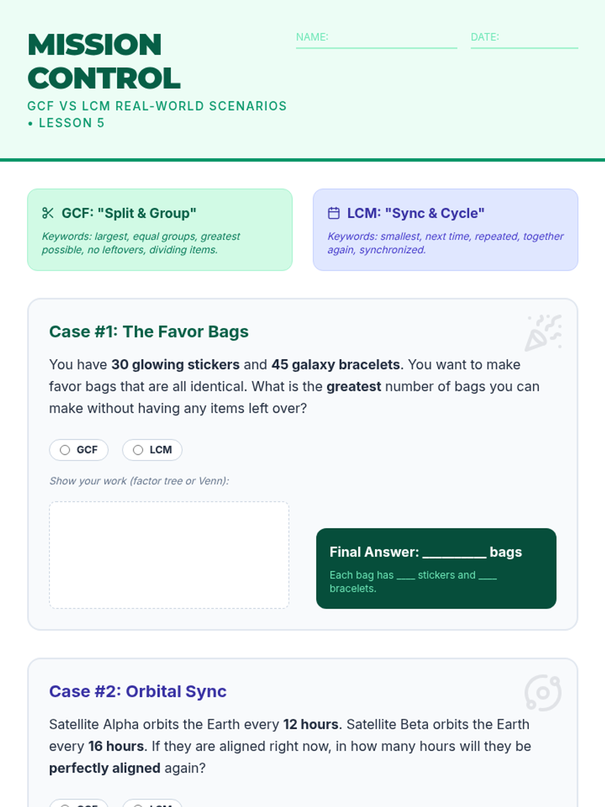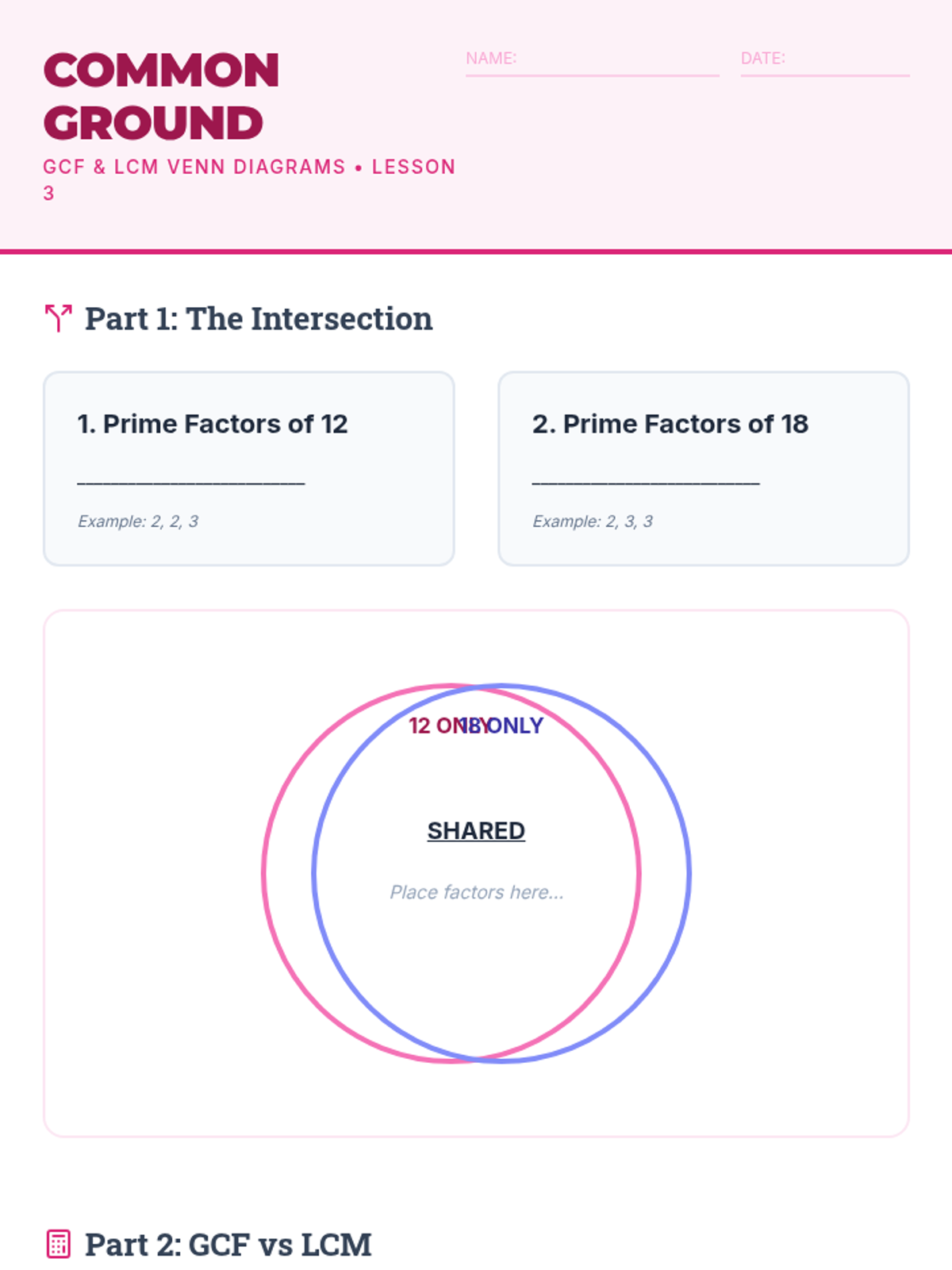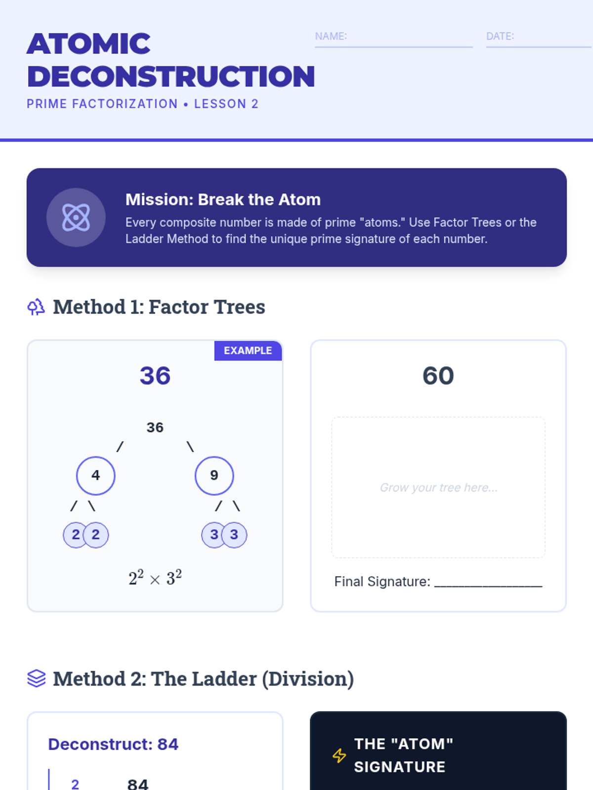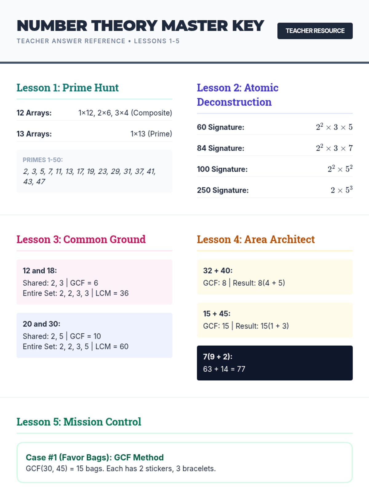 This inquiry-based sequence guides 6th-grade students through prime factorization, GCF, and LCM, culminating in real-world application of number theory. Students explore the unique prime signatures of numbers and use visual tools like Venn diagrams and area models to master multi-digit computation concepts.