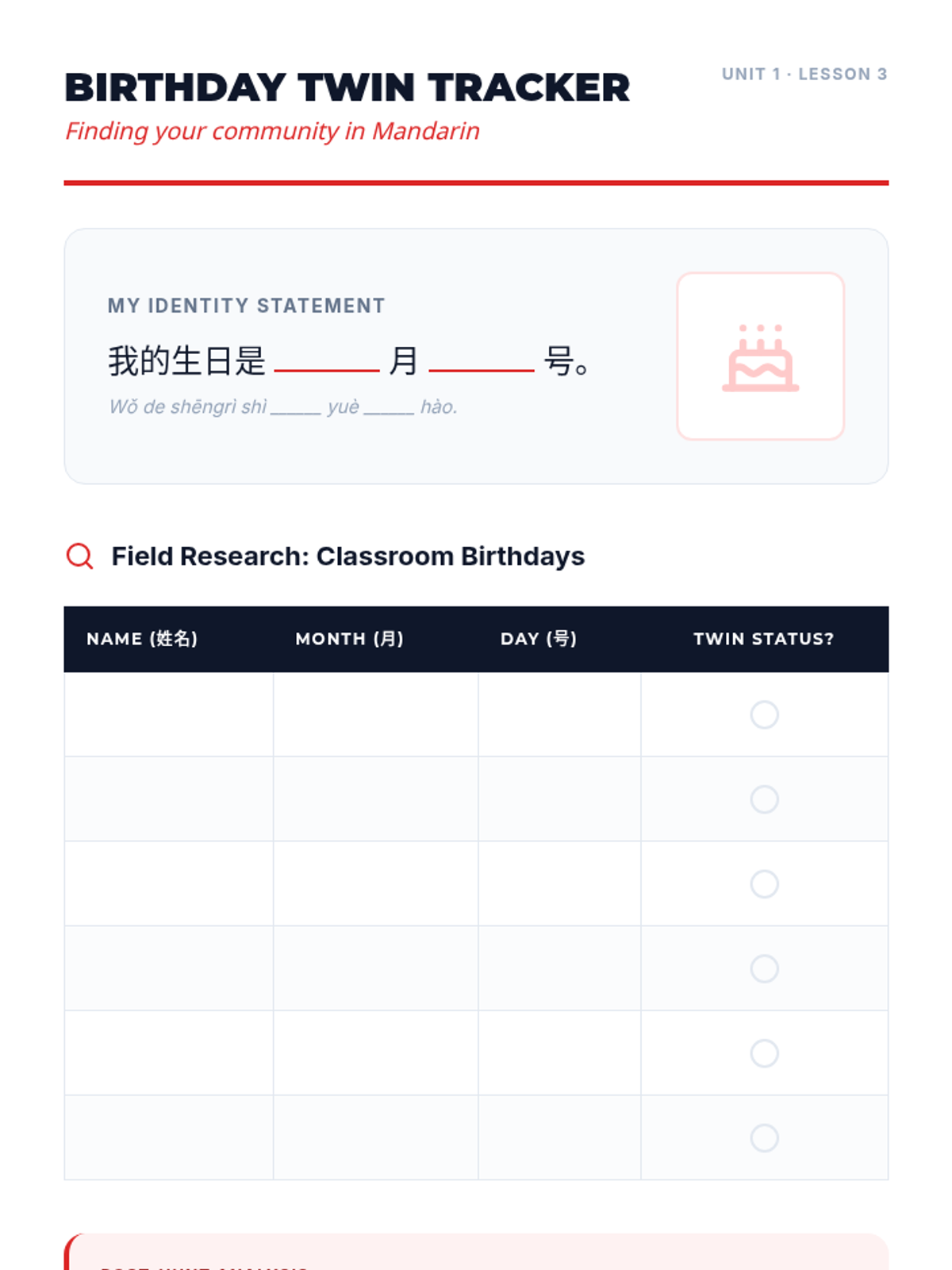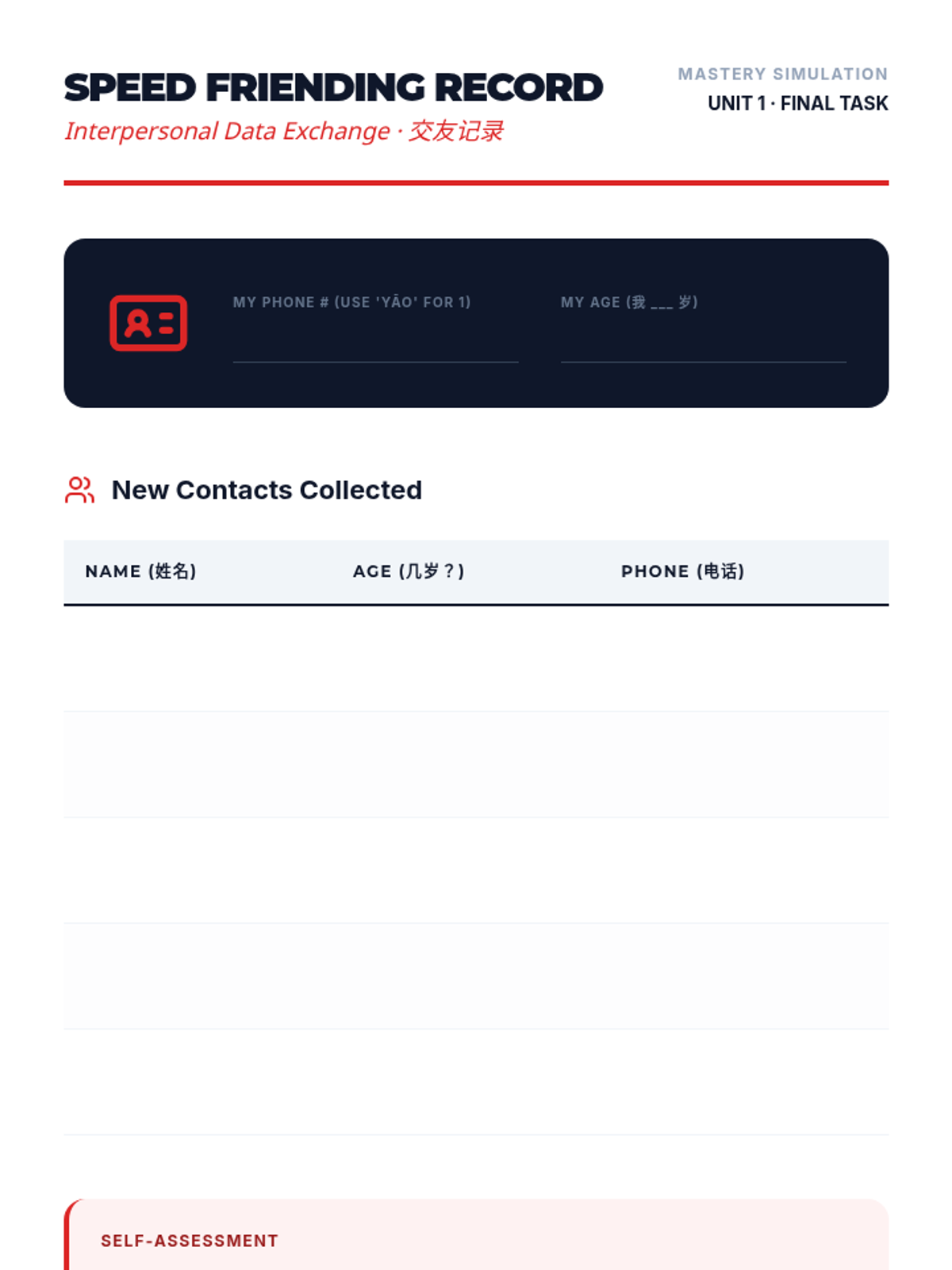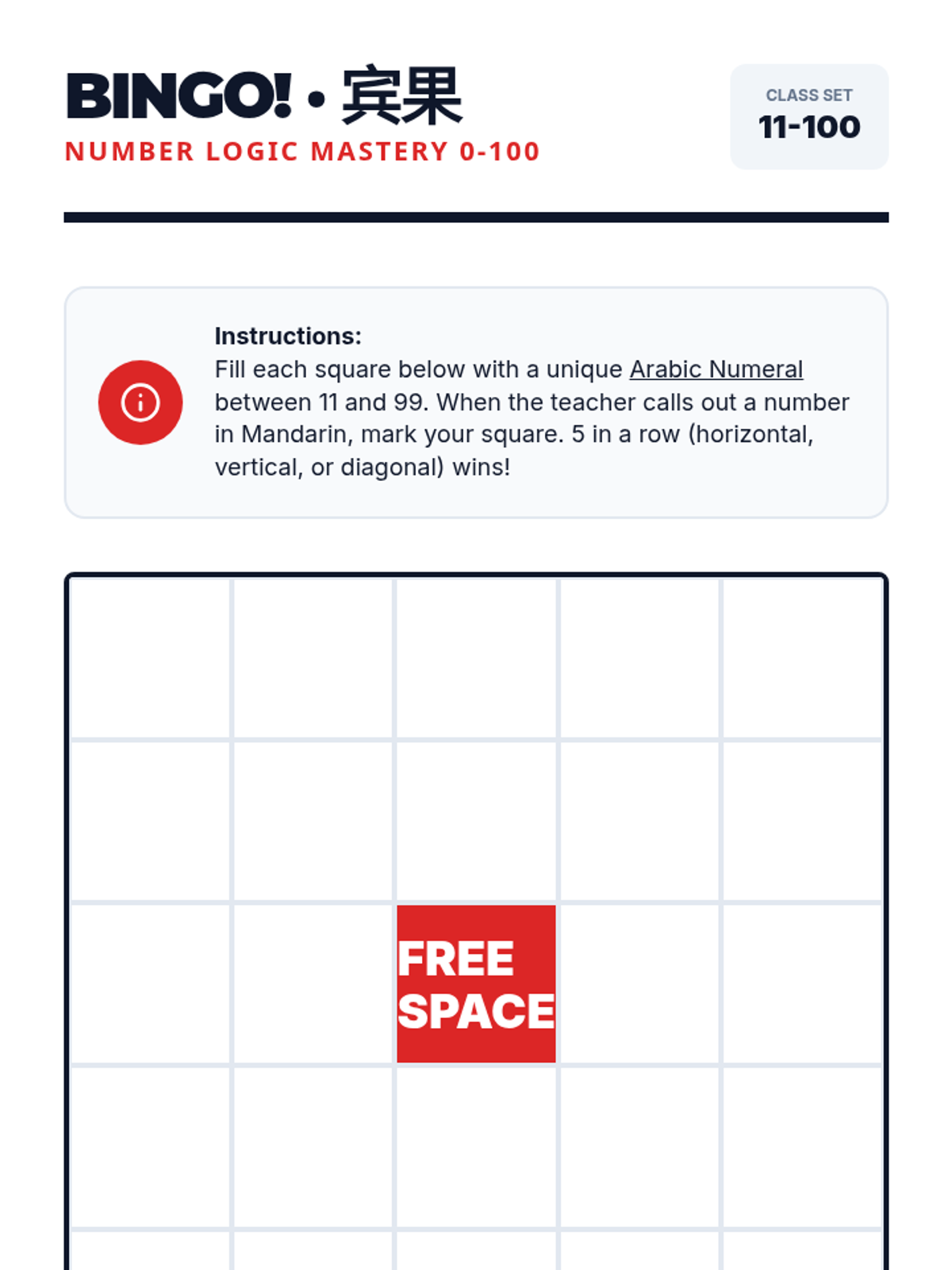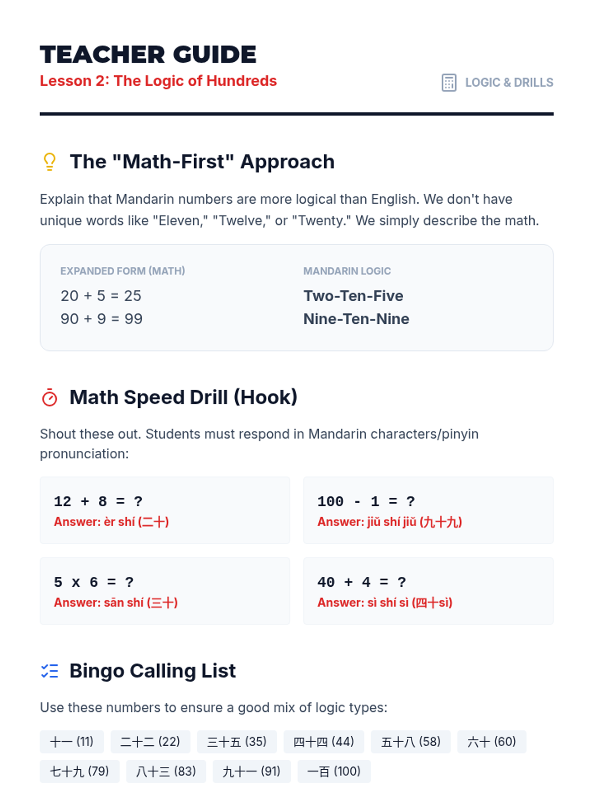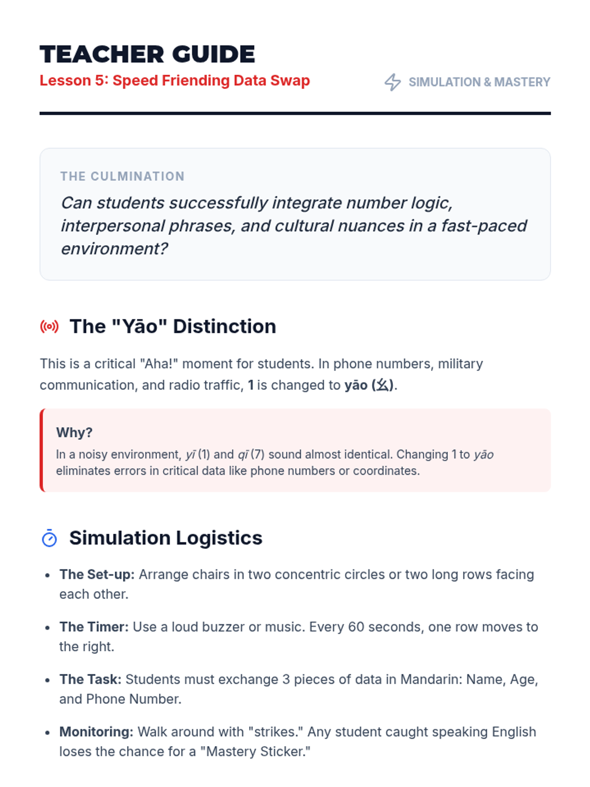 This sequence introduces 8th-grade students to the Mandarin Chinese number system, calendar dates, and social data exchange. Through game-based activities, students master counting 0-100, hand signals, dates, and contact information.