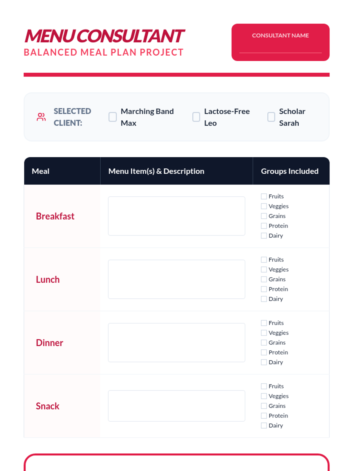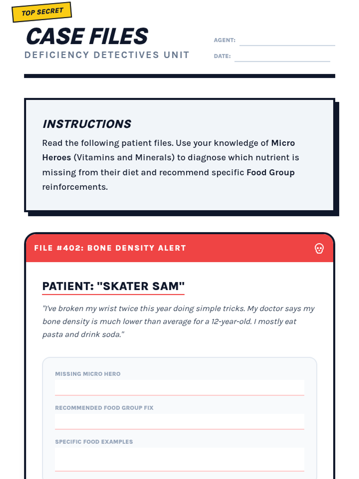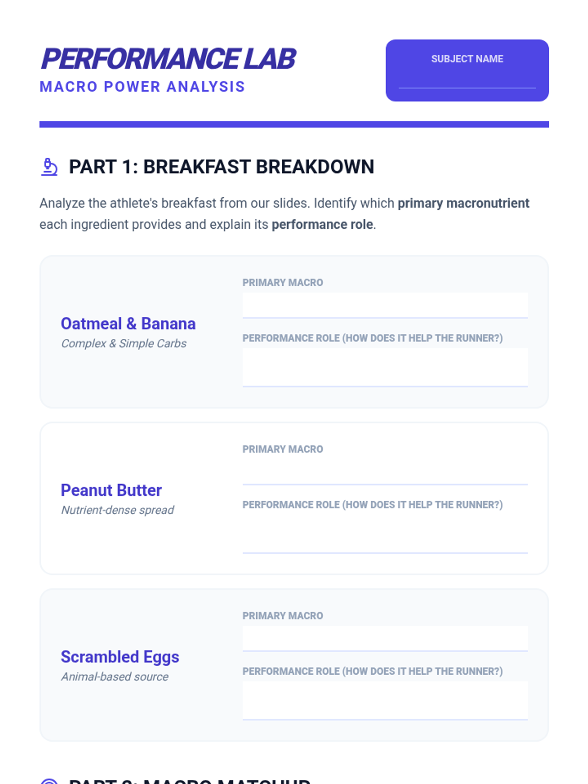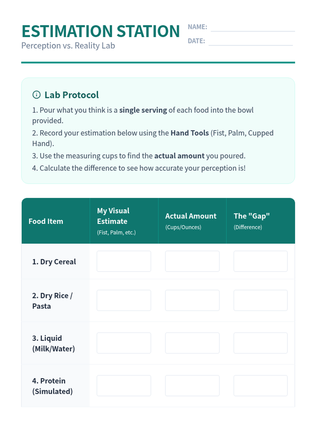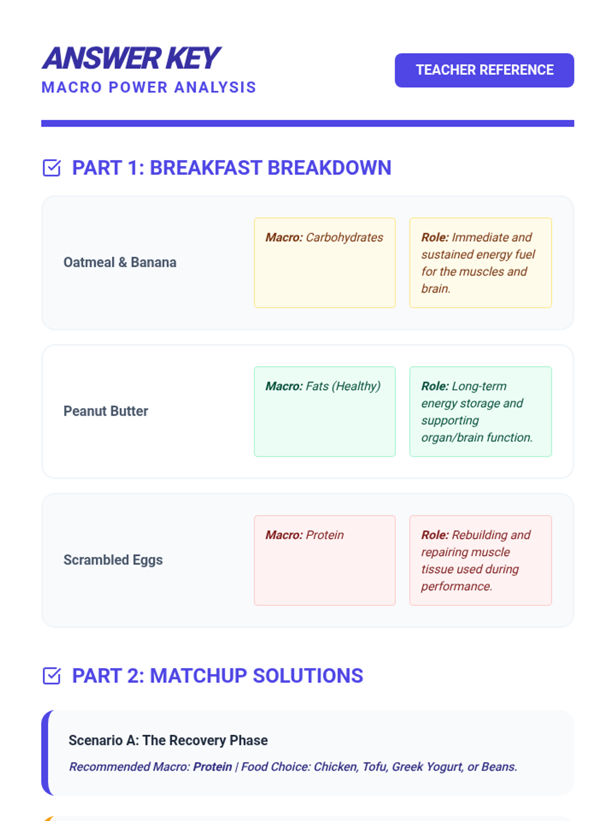 Students explore the five major food groups to understand how nutrients fuel the body. They move from basic classification to analyzing macronutrients and micronutrients, estimating portion sizes, and ultimately designing balanced meal plans.